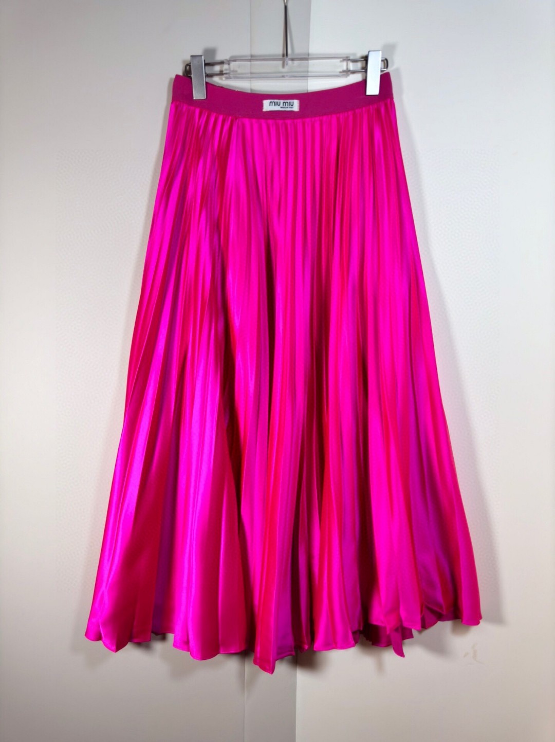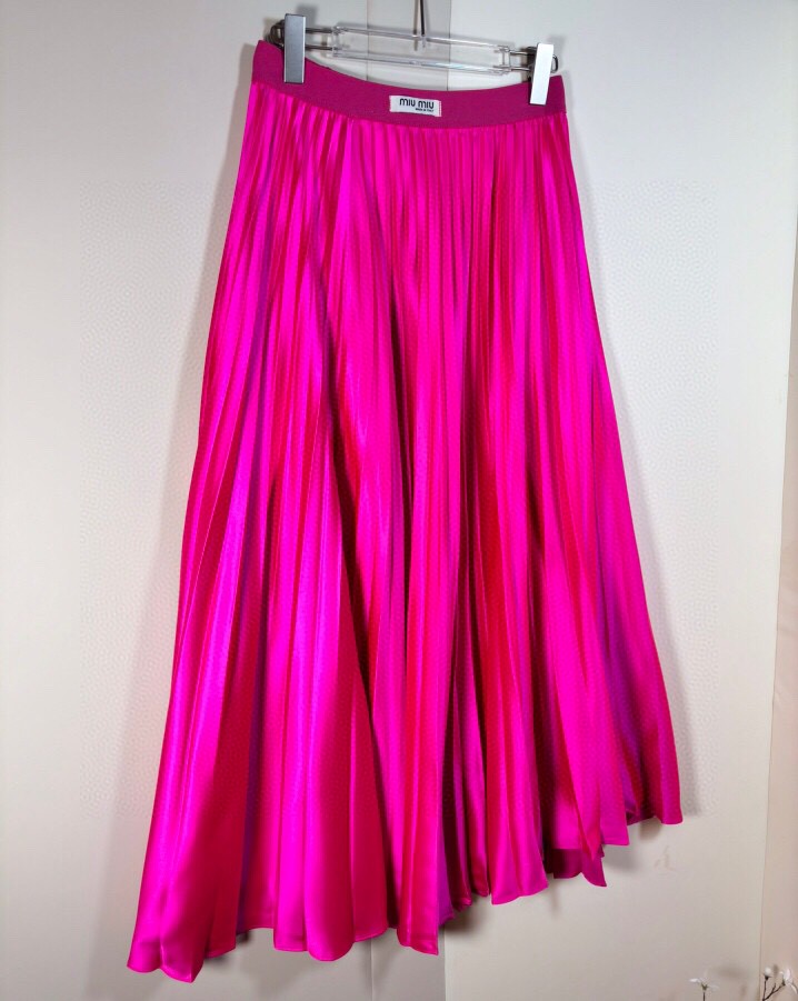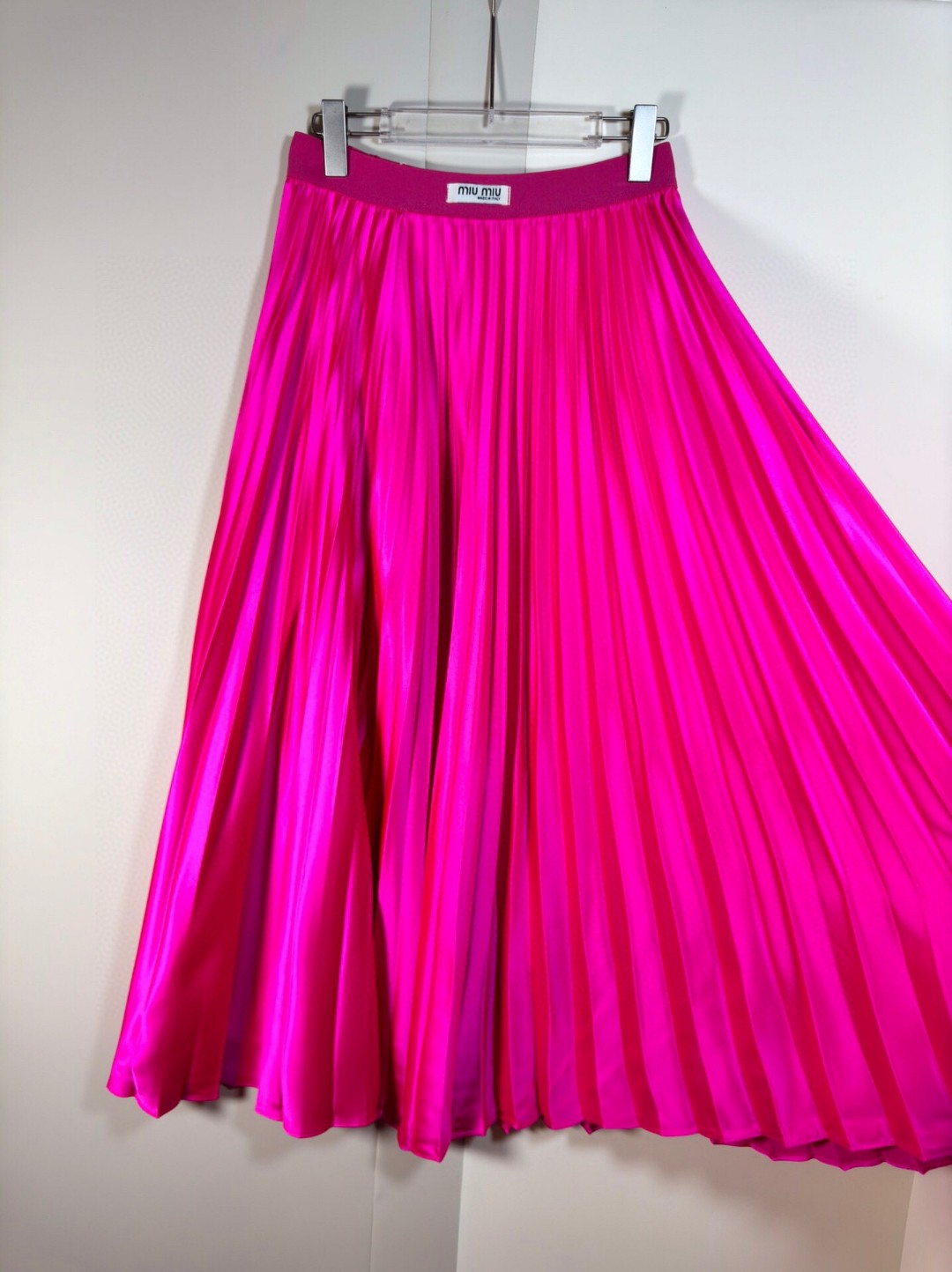 ????MIU* 24 Fall new pleated skirt/skirt design Satin pleated high waist crisp drape shiny pleated long skirt Popping Street skirt Gentle style medium long pleated skirt. Size: SMLXL