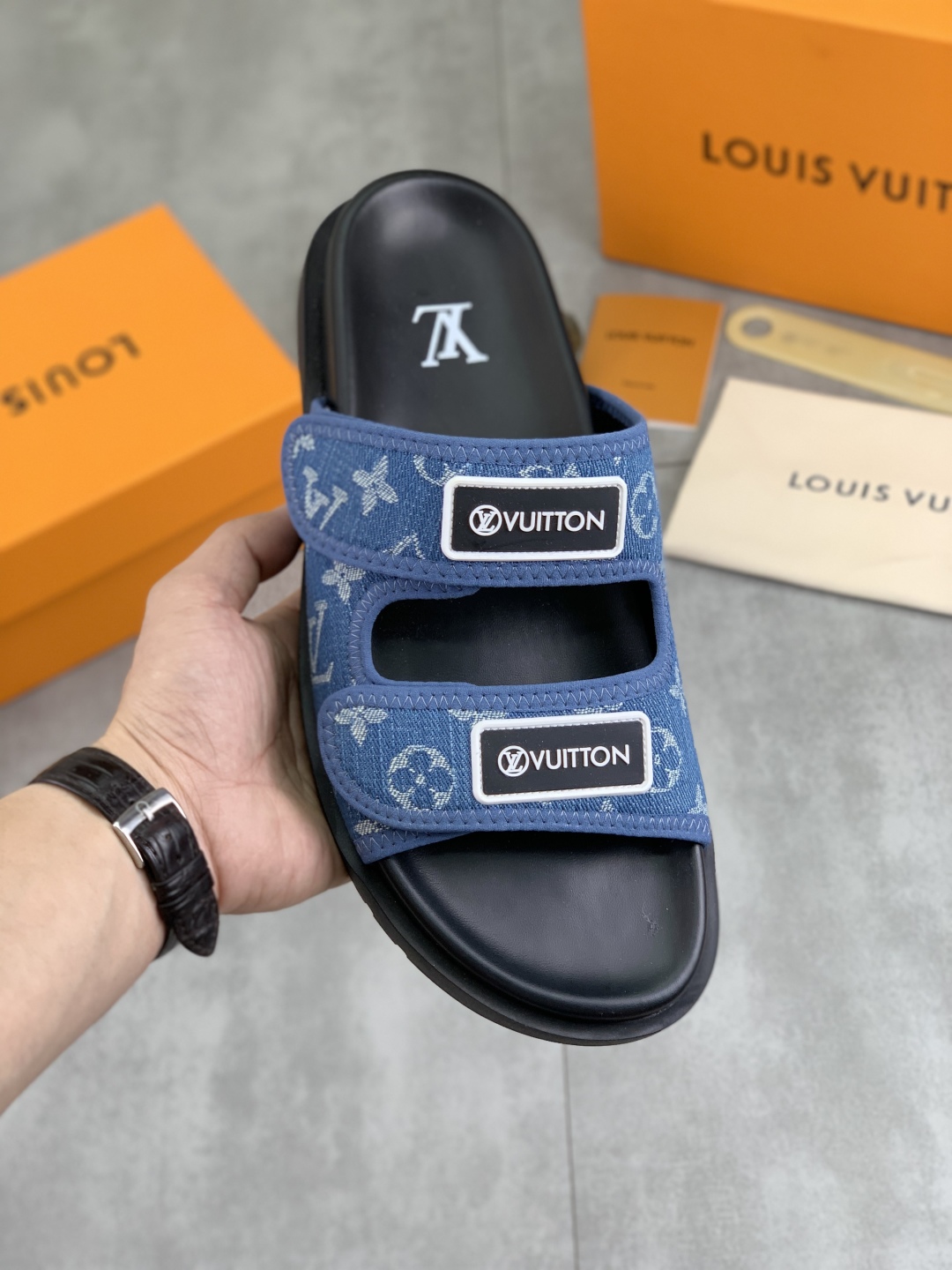 No. 2005???????? Top edition original single quality [LOUIS VUITTON] Official website bestseller Louis Vuitton LV men 's slippers on sale simultaneously! Italian imported original fabric, specially provided by the original factory. Original base size: 39-44 (38, 45, 46 customized). Multiple colors available. High-end packaging
