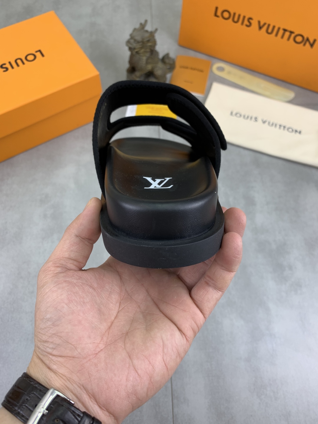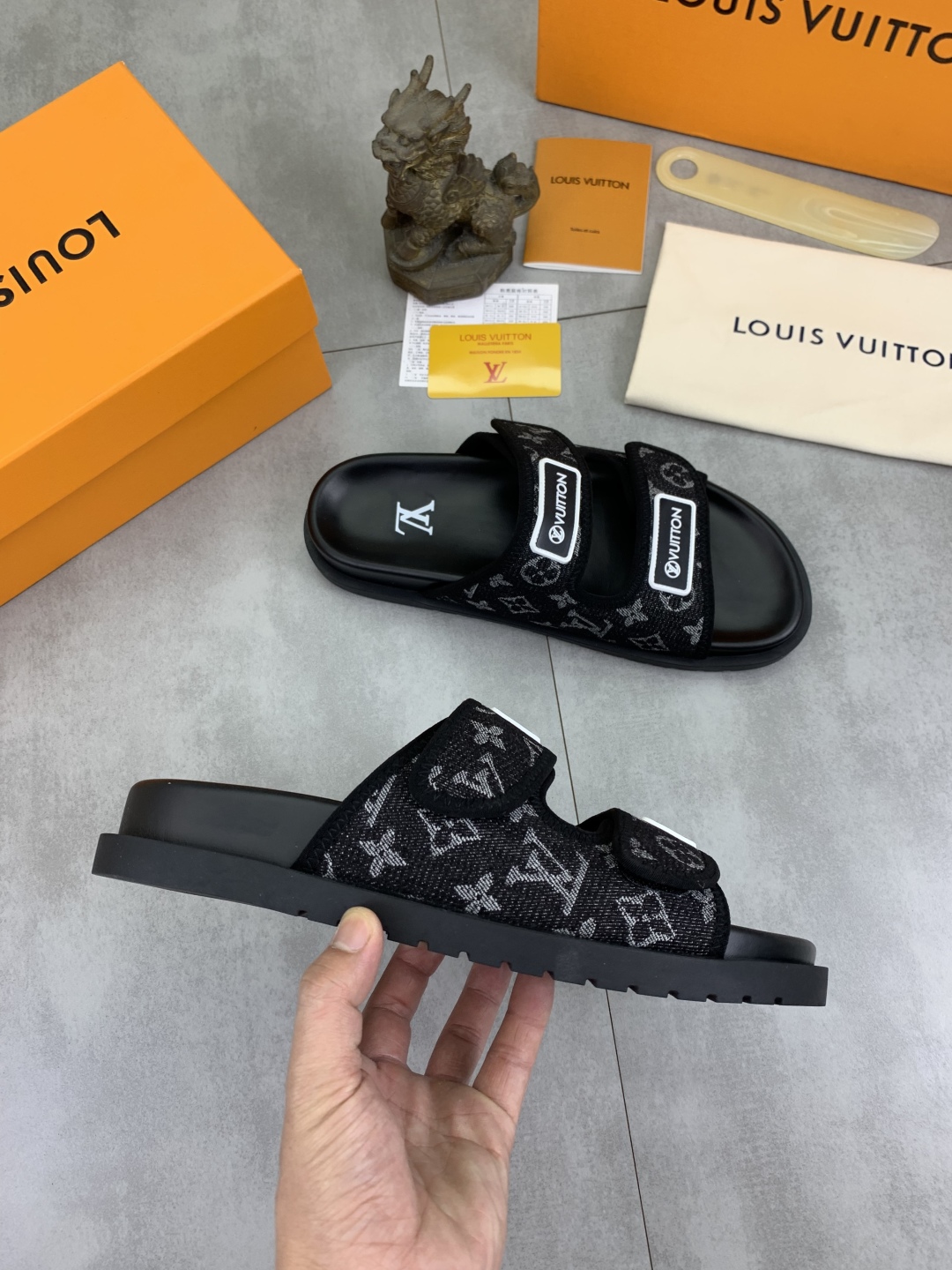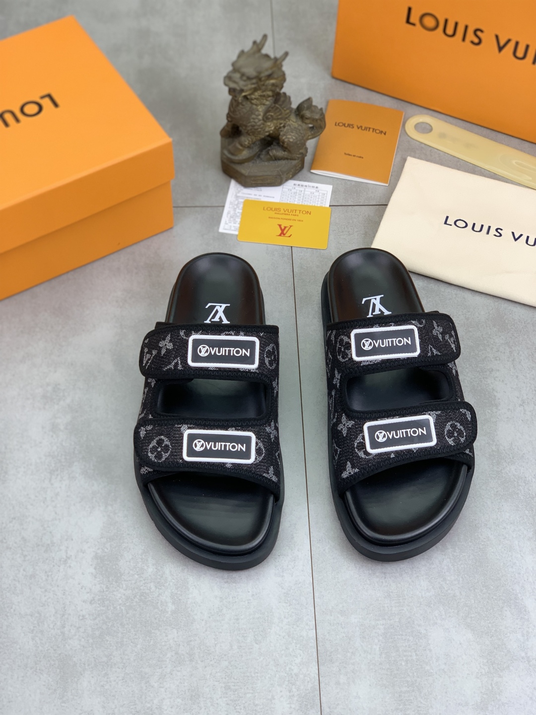 No. 2005???????? Top edition original single quality [LOUIS VUITTON] Official website bestseller Louis Vuitton LV men 's slippers on sale simultaneously! Italian imported original fabric, specially provided by the original factory. Original base size: 39-44 (38, 45, 46 customized). Multiple colors available. High-end packaging