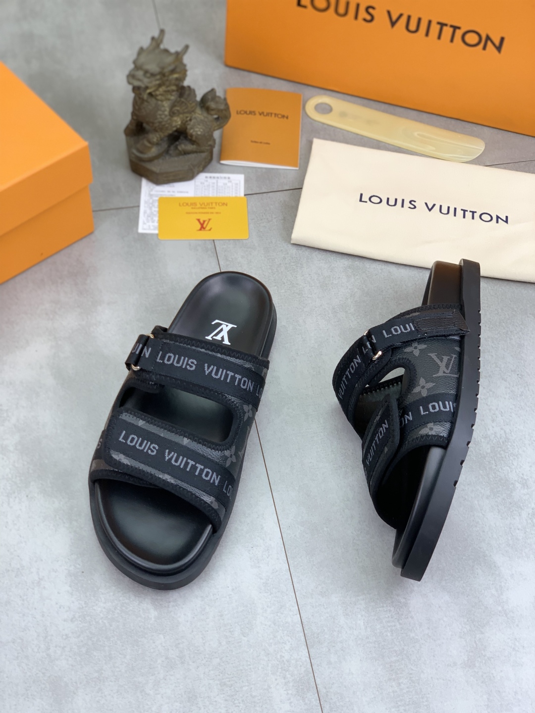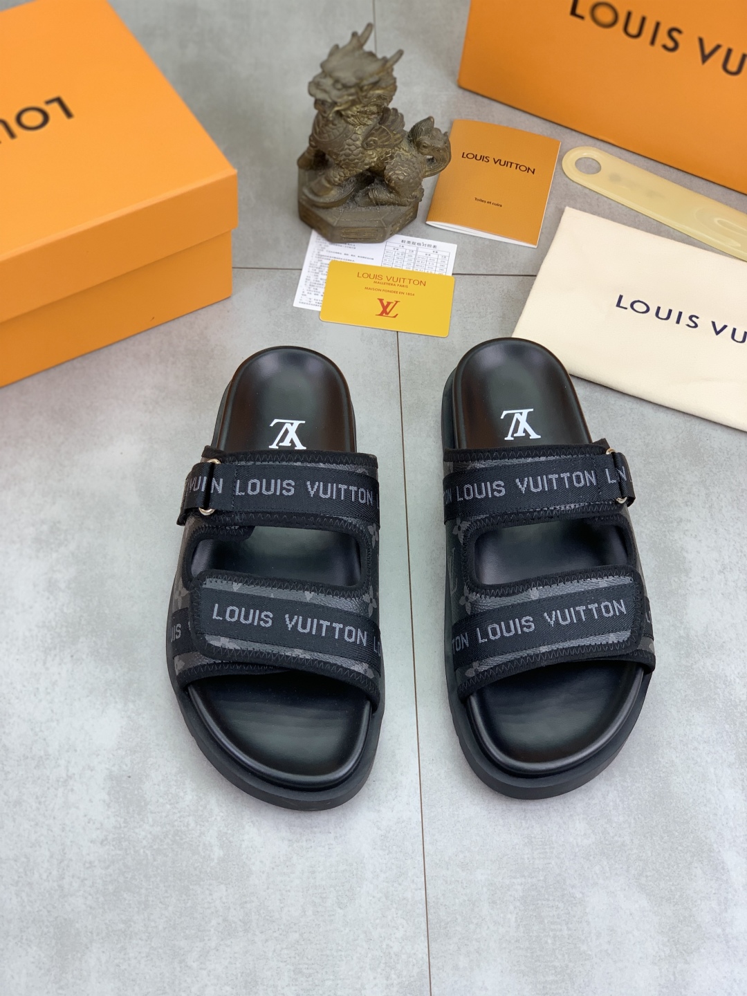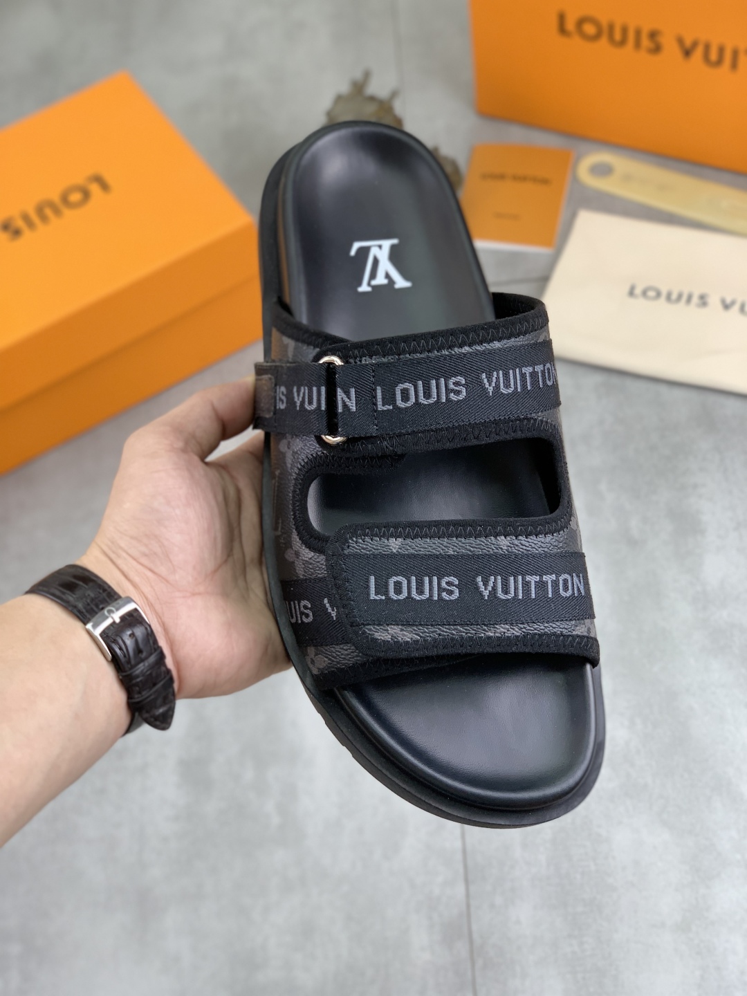 No. 2005???????? Top edition original single quality [LOUIS VUITTON] Official website bestseller Louis Vuitton LV men 's slippers on sale simultaneously! Italian imported original fabric, specially provided by the original factory. Original base size: 39-44 (38, 45, 46 customized). Multiple colors available. High-end packaging
