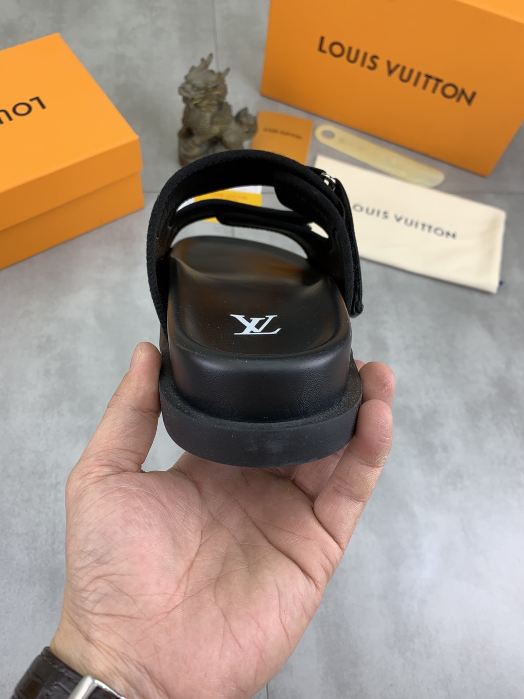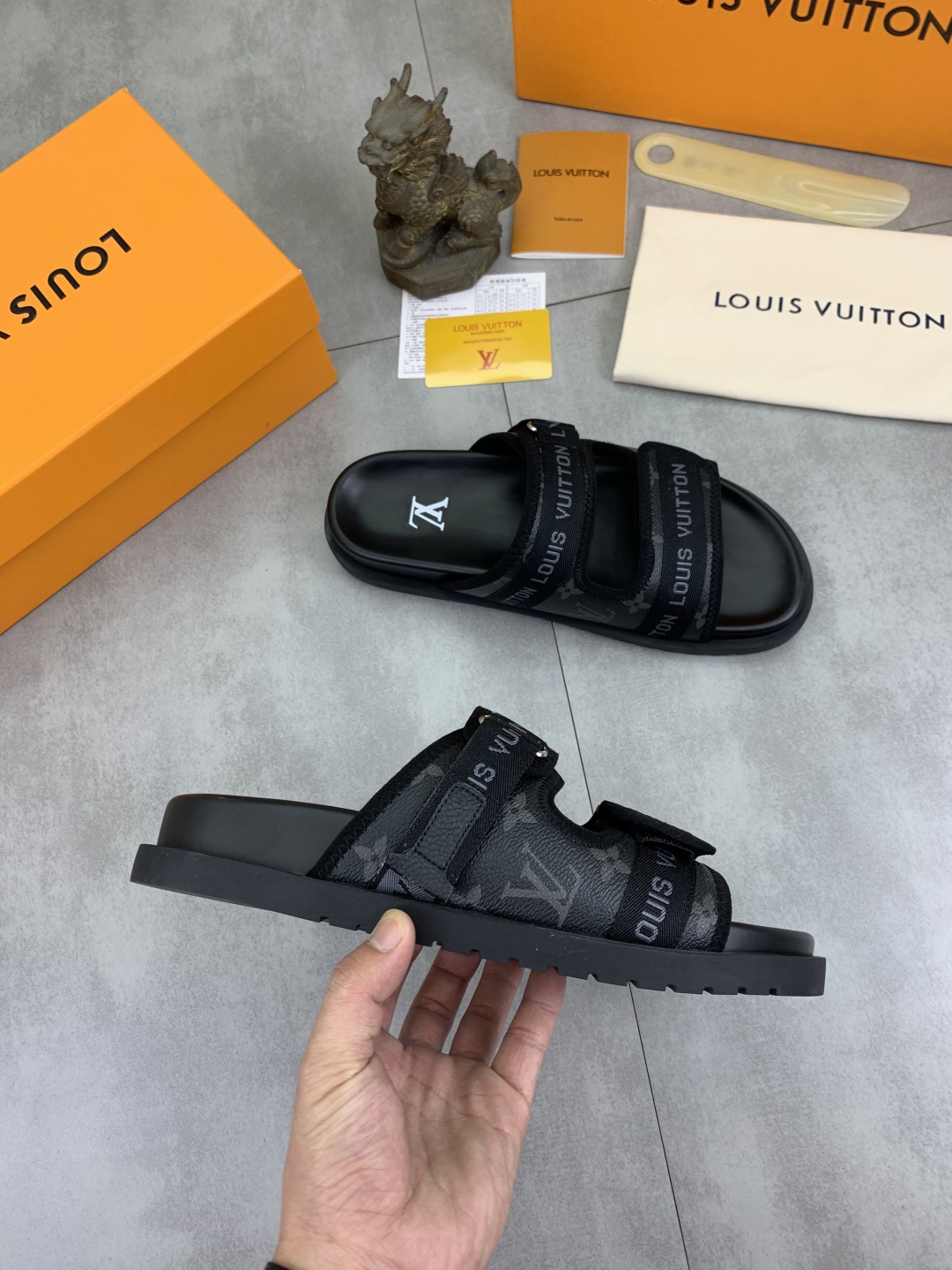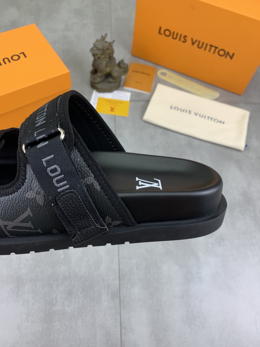 No. 2005???????? Top edition original single quality [LOUIS VUITTON] Official website bestseller Louis Vuitton LV men 's slippers on sale simultaneously! Italian imported original fabric, specially provided by the original factory. Original base size: 39-44 (38, 45, 46 customized). Multiple colors available. High-end packaging
