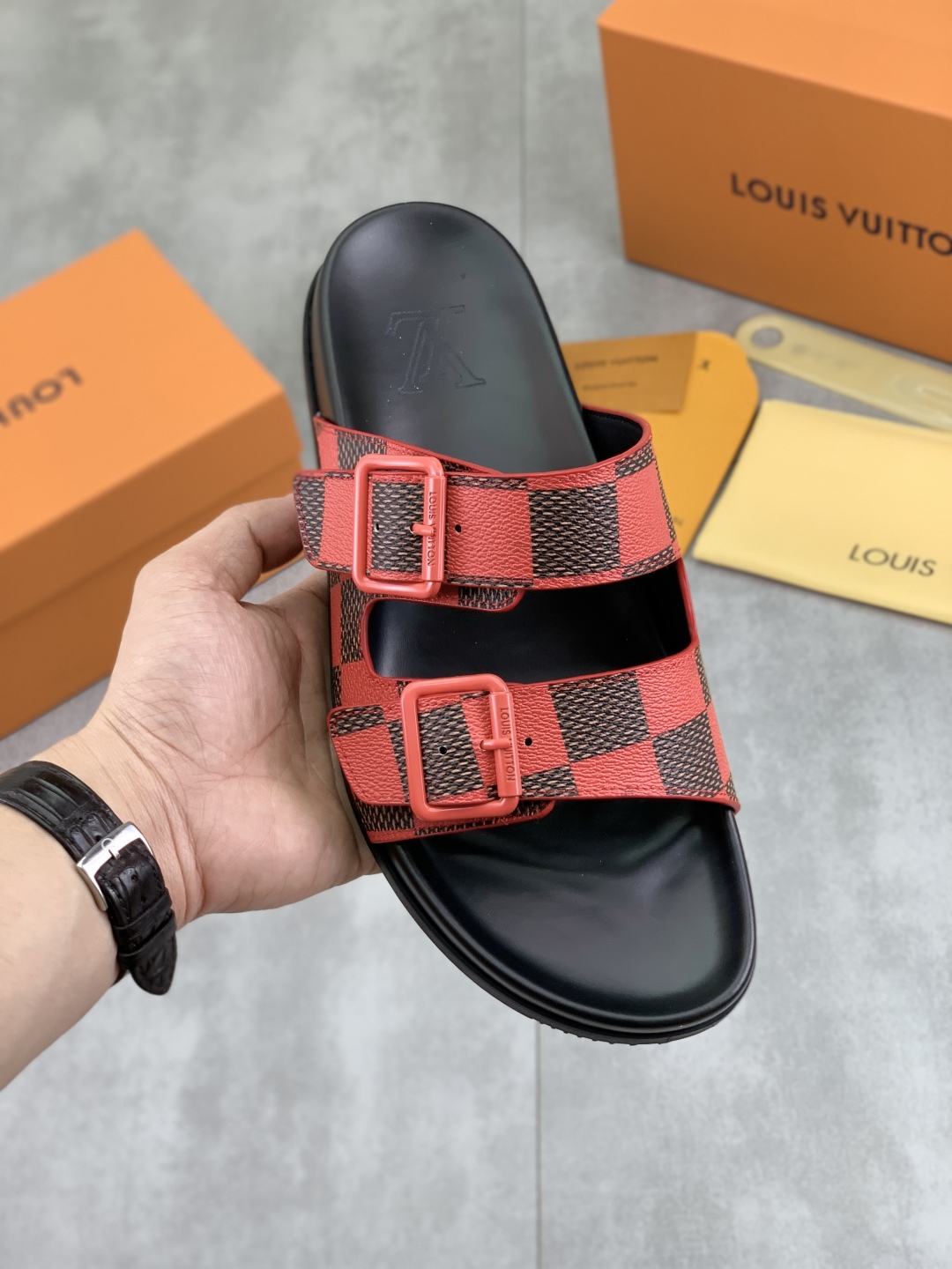 Model No. #2004???????? High quality [LOUIS VUITTON] official website bestseller Louis Vuitton LV men 's slippers on sale simultaneously! Italian imported original fabric, specially provided by the original factory. Original base size: 39-44 (custom-made for 38 and 45). A wide variety of colors to choose from