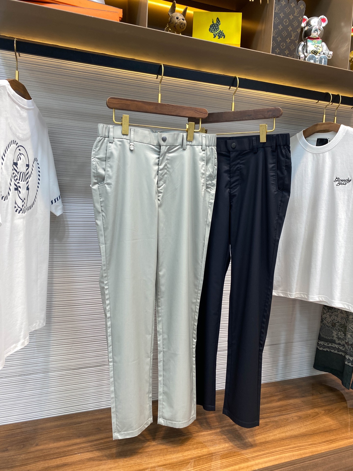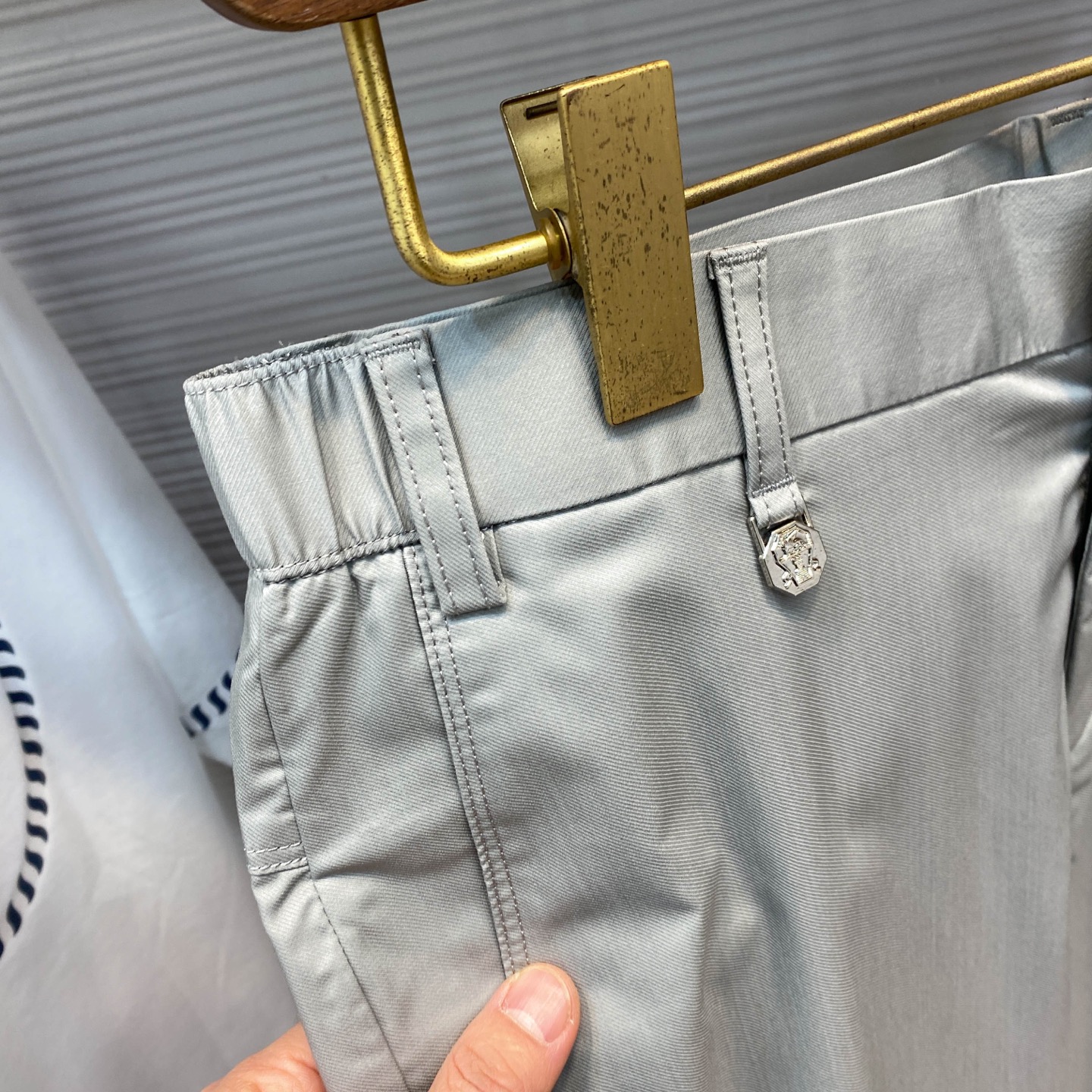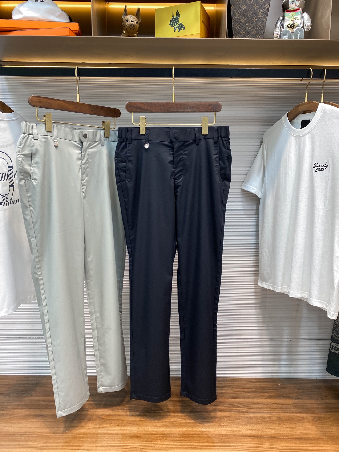 BC25SS Spring/Summer new lightweight twill cotton casual pants, men's metal badge pendant business casual versatile suit pants! Trading company channels are rarely available, and they are simultaneously released on the official website! BC's new casual trousers, with their outstanding fabric, unique design, classic cut and exquisite details, have become an excellent choice for urban elites to showcase their personal style and taste! Its fabric is carefully selected from specially customized twill cotton fabric by customers. Not only is it light and thin, like a gentle summer breeze caressing the skin, bringing endless freshness and comfort, but it also has a skin-friendly and silky touch. Every touch is like an intimate conversation with the fine silk, making it hard to put down! The front is ingeniously inlaid with a delicate metal badge pendant, which not only has a unique shape and shines brightly, but also embodies the brand's unique cultural heritage and historical inheritance, allowing people to recognize its extraordinary status symbol at a glance! In terms of cutting, it adopts the classic straight-leg design. This design not only perfectly conforms to ergonomics, outlining smooth and elegant leg lines, but also visually elongates the leg proportion, instantly giving the wearer a tall and straight posture! Whether paired with formal shirts and leather shoes or casual T-shirts and sports shoes, it can be easily handled, showcasing a unique business casual style. This allows the wearer to be at ease in any occasion and fully display extraordinary charm! Grey/navy blue, two colors in! Size: M-3XL Size M: Waist 82cm- Hip 102cm- front 25cm- Thigh 62cm- Pant length 103cm- pant hem 35cm Size L: Waist 85cm- Hip 106cm- front 26cm- Thigh 63cm- Pant length 104cm- pant hem 36cm XL size: Waist 88cm- Hip 110cm- front 27cm- Thigh 64cm- Pant length 105cm- pant hem 37cm Size XXL: Waist 92cm- Hip 114cm- front 28cm- Thigh 66cm- Pant length 106cm- pant hem 38cm Size 3XL: Waist 96cm- Hip 118cm- front 30cm- Thigh 68cm- Pant length 106cm- pant hem 39cm Size recommendation (Standard style) : If you are 174 to 140 pounds tall, size L is suitable for you to try on! For boys weighing under 135 pounds, choose size M; for those weighing 135 to 148 pounds, size L; for those weighing 148 to 162 pounds, size XL; for those weighing 162 to 176 pounds, size XXL; and for those weighing 176 to 190 pounds, size 3XL!