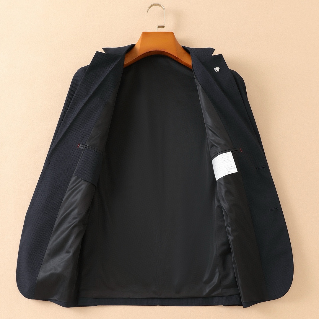 ?? VER Versace 25fw spring/summer new collection! This is a versatile, casual and fashionable men's light two-button suit. With a slim fit and smooth, clean lines, it is stylish and casual, making you look more upright and agile when worn, exuding a strong sense of style! This is the ultimate product for high-end men's business and casual wear. The exquisite and beautiful matching of the same series on the chest makes the overall look more refined and attractive. It is fashionable, casual and elegant. There is no fixed age range suitable for it, but its fashion expression is diversified. Whether it is to reflect the vitality and personality of young people or the stability and efficiency of middle-aged people, it can be handled with ease. It is light and comfortable to wear, and the unique cutting is slimming. Simple and easy to match, with a crisp shoulder shape. Produced by an old channel suit factory, it features first-class quality control, texture and details. Offer sufficient dignity and dignity. This lightweight and soft fabric suit is made of 45% rayon, 52% polyester, and 3% spandex. The fabric is carefully crafted, featuring excellent thermal tone and breathability. It is comfortable to wear without lining. The fabric is of a thin type, which doesn't affect its wearing experience at all. It is thin and light. It has a strong sense of verticality! Its bony texture is reflected in the cutting of the pattern, which depends on a good cutting machine, an experienced master making the pattern, and a professional suit factory. This one is of a slim fit and leans towards a fashionable and casual style, making it suitable for formal occasions. Suitable for all kinds of casual occasions, this classic and versatile black color features an exquisite, fashionable and stylish design, maintaining a delicate balance and showcasing a passionate and energetic attitude towards life. Essential items for leisure and business! Color: black, grey Size: 48-56 (m ~ 3Xl) 178 135 pounds wear L, maximum wear 185 pounds 48: Chest circumference 100- shoulder width 44- Sleeve length 60- garment length 69 50: Chest circumference 104- shoulder width 45- Sleeve length 61- Garment length 70 52: Chest circumference 108- shoulder width 46- Sleeve length 62- Garment length 71 54: Chest circumference 112- shoulder width 47- Sleeve length 63- garment length 72 56: Chest circumference 116- shoulder width 48- Sleeve length 64- Garment length 73