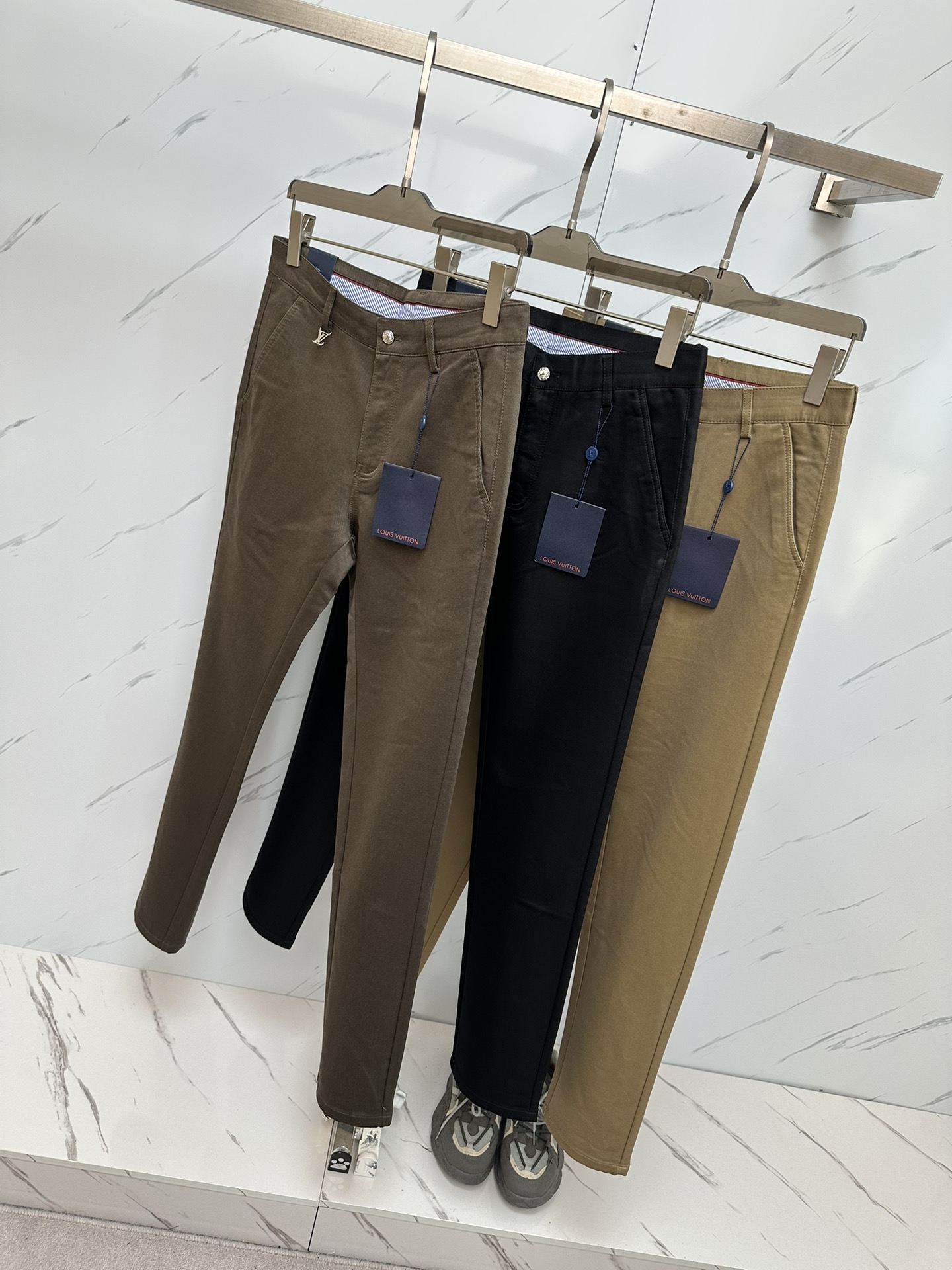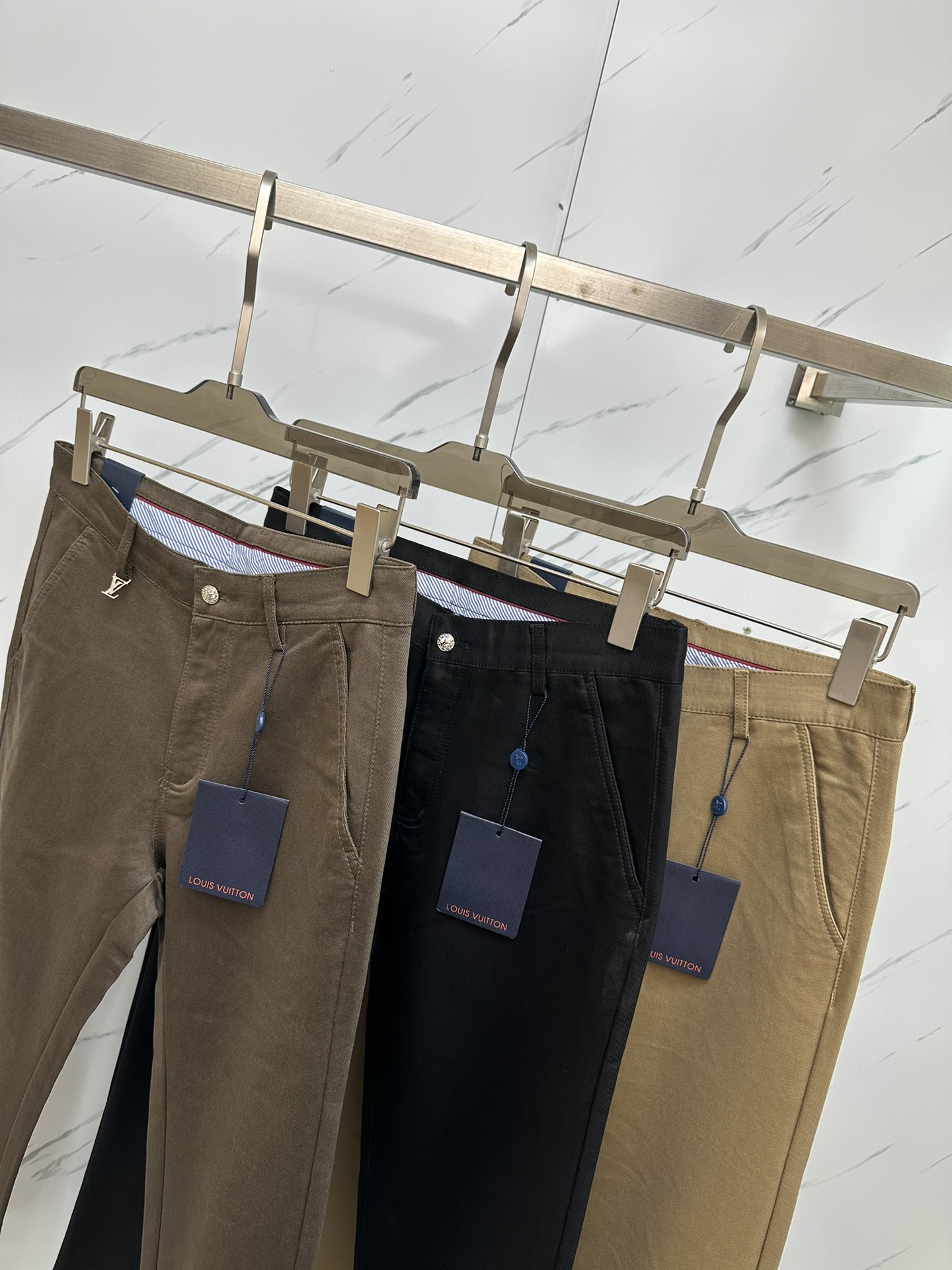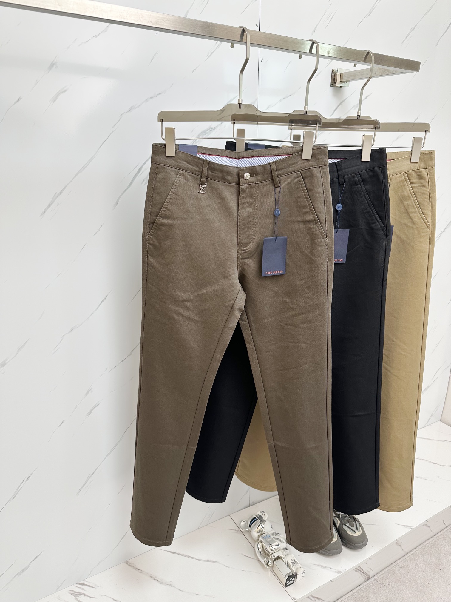 LV men's business casual fashion trousers # This style is undoubtedly the most exquisite and high-end existence! This is a very elegant pair of suit pants, and it is also a versatile choice for daily work and casual wear. With a fitted straight cut, it looks eye-catching, fashionable and youthful. It straddles the line between casual and business wear, making it a perfect item!! High-end quality is prominently displayed everywhere, with a sense of class in the details. It has a natural drape and a slightly luxurious luster, and its texture is simply unbeatable!! This casual pant is dominated by craftsmanship and fabric. The quality of the accessories and fabric throughout is beyond imagination. The properties and specifications of the fabric are unconventional. The materials used are extremely luxurious and exquisite. The key lies in its own texture and comfort. The fabric has excellent elasticity by itself, and there is no tight feeling when wearing it. The experience is excellent and wonderful. It is not easy to wrinkle and is a classic symbol of recognition. Customized hardware accessories for customers, custom-molded and engraved with brand letter buckles in metal style, not only enrich the visual experience but also greatly highlight the brand's sense of luxury. The details are handled very well, making it a highly valuable pair of "divine pants"! The cut and silhouette are top-notch, with an excellent effect of lifting the buttocks, slimming the body and making one look slimmer. It can be matched with any top in the wardrobe, has wide compatibility, and is suitable for business, commuting and casual wear. It meets the needs of various daily outfits, and the upper body style is full of charm. It is an unrivaled versatile choice! A must-have god-level pants king for quality enthusiasts! Size: 30-40