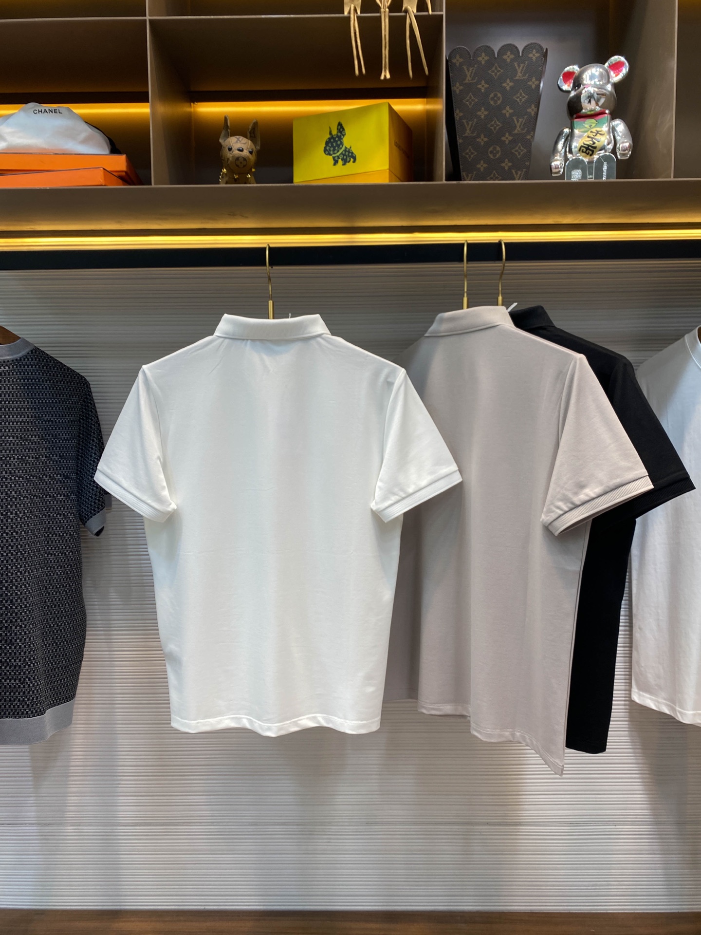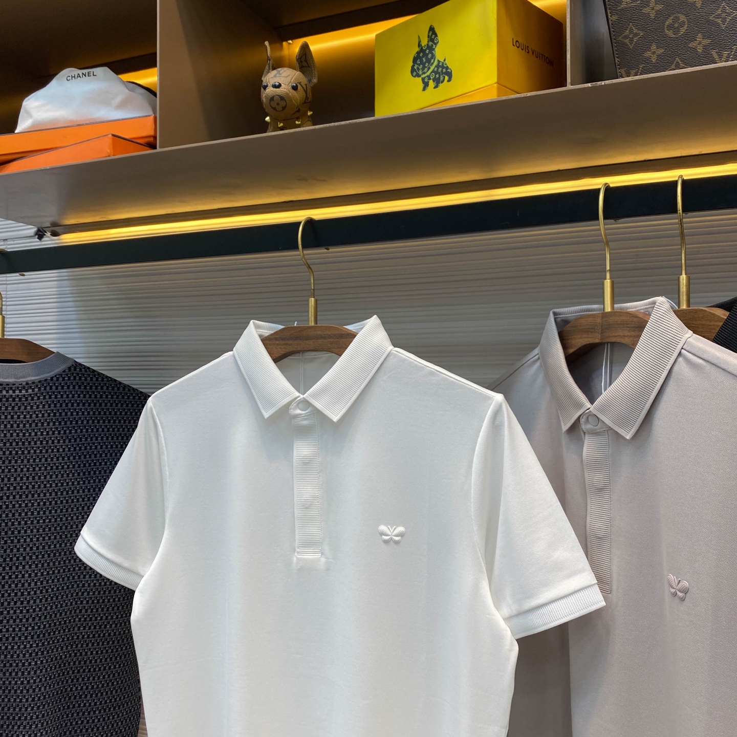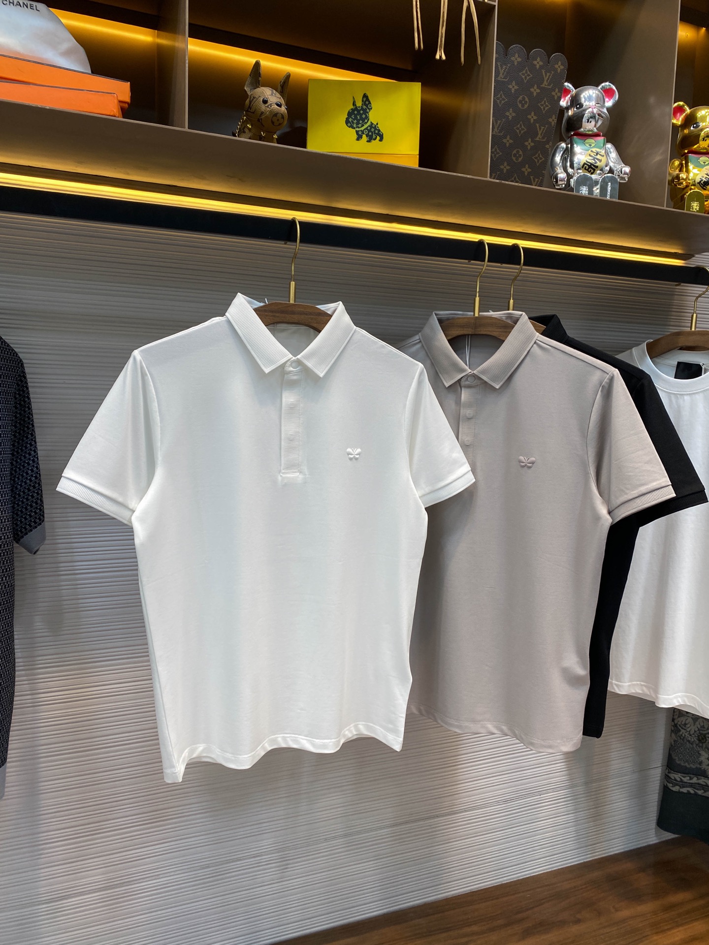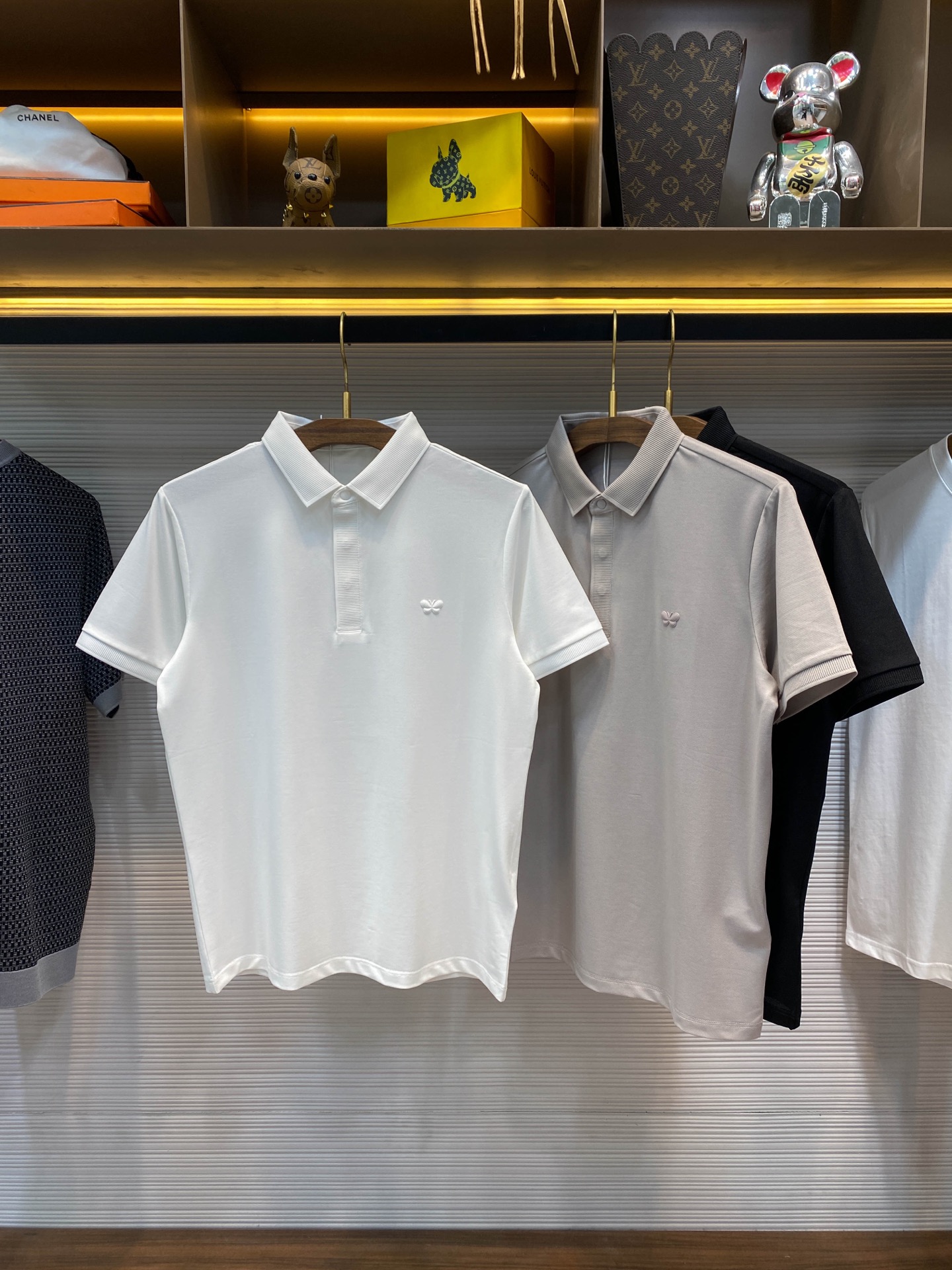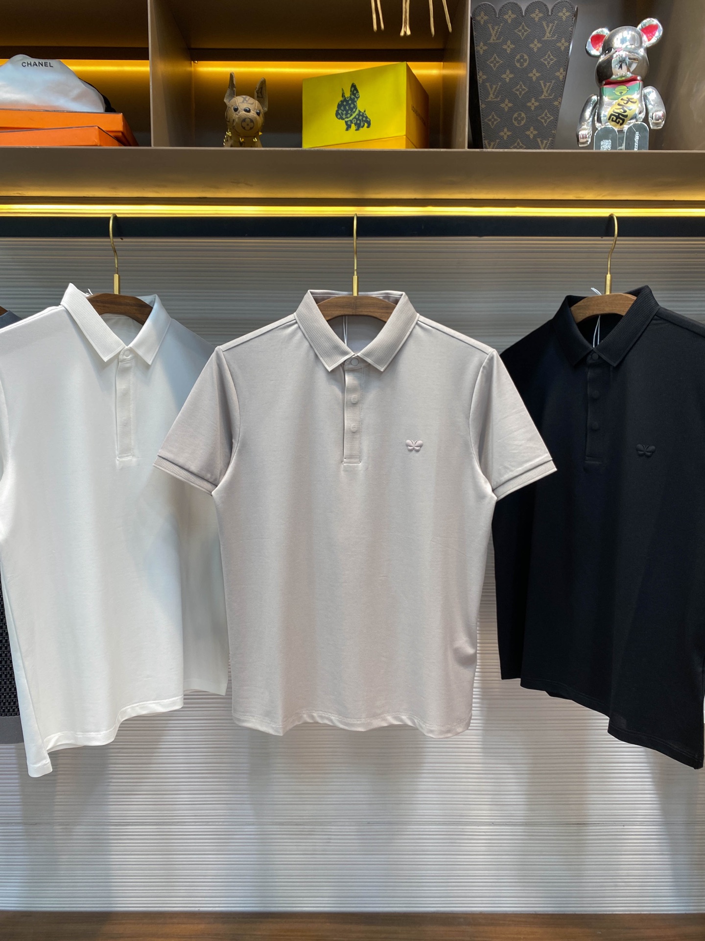 BV25SS Spring/Summer New silk pearl cotton lapel short T-shirt, men's three-dimensional offset printed butterfly badge business casual short-sleeved Polo shirt! Trading company channels are rarely available, leading the official website for sale! This Polo shirt has won the love and pursuit of countless people with its unique fabric, exquisite badge design and versatile cutting style! This Polo shirt is made of custom-made mercerized pearl cotton fabric provided by customers. It not only feels smooth and skin-friendly, making one feel the gentle breeze of spring, but also has excellent breathability and moisture absorption performance. Even in the scorching summer, it can keep the body dry and comfortable! The classic butterfly badge on the chest is the finishing touch of this Polo shirt! Adopting advanced hot-press offset printing technology, the agility and elegance of butterflies are captured on the lapel. No matter where you go, you will become the focus of everyone's attention! Great efforts have also been made in the design of the silhouette. It adopts a lapel and straight cut style, which not only retains the classic elements of Polo shirts but also incorporates modern fashion aesthetic concepts. Whether paired with suit pants for business occasions or with jeans for leisure time, it can be easily handled, showcasing different styles and charms! This versatile feature that is suitable for both business and casual wear makes this Polo shirt an indispensable and versatile item in your wardrobe! Black/White/light gray, all three colors in! Size: S-XXL Size S: Shoulder width 43cm- Chest circumference 102cm- garment length 66cm Size M: Shoulder width 44cm- Chest circumference 106cm- garment length 67cm Size L: Shoulder width 45cm- chest circumference 110cm- garment length 68cm Size XL: Shoulder width 46cm- Chest circumference 114cm- garment length 70cm Size XXL: Shoulder width 47cm- Chest circumference 118cm- garment length 72cm Size recommendation (Standard style) : I'm 174 to 140 pounds tall. Size M is suitable for me to try on! For boys weighing under 130 pounds, choose size S; for those weighing 130 to 142 pounds, size M; for those weighing 142 to 155 pounds, size L; for those weighing 155 to 168 pounds, size XL; and for those weighing 168 to 183 pounds, size XXL!