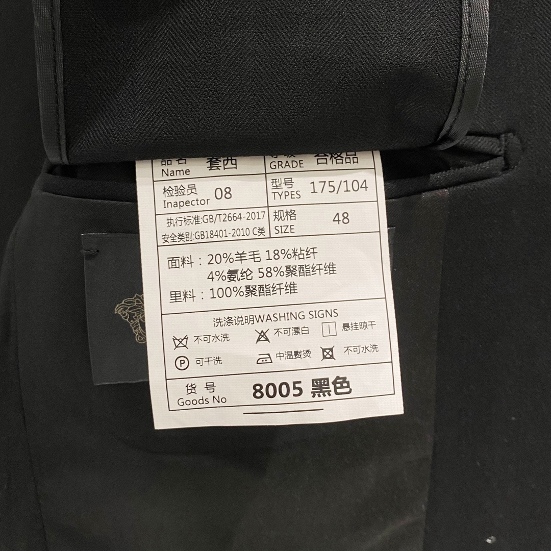 New style suit! VERSA*E Style * is a perennial favorite in the Western fashion world, an essential item in the wardrobes of business and travel elites. It is suitable for men's formal wear and a one-button suit. The brand's classic Logo is super elegant. The lapel collar and the neckline accessory are stylish and good-looking brooches. The solid color scheme is elegant and generous. The back and center slit design makes it a classic style that comes out every quarter! The fit is really great. Highly recommended! The neat and ergonomic cut makes the upper body look upright and handsome, comfortable and form-fitting, with a gentlemanly demeanor fully visible. The carefully selected suit fabric is 20% wool, 18% viscose, 58% polyester, and 4% spandex, which are soft and fine to the touch, with good luster and elasticity. The silhouette and the loose and tight waist-cinching cut add more comfort to the outfits of stylish men, making them look slimmer without losing their coolness! Fan * Zhe is renowned worldwide for its classic and solemn design style, which is used to produce high-end professional and business formal wear sets. The production process of suits is highly demanding and time-consuming. A high-end business casual suit set that can be worn all year round! The fabric is smooth and flat, with a smooth, full and sticky hand feel. The appearance is crisp and upright. It is made of high-quality wool raw materials, and the quality of the materials used is visible. Regarding details: The high-end suit features modern tailoring, integrating traditional tailoring art with modern production techniques. It uses fully imported automatic cutting pieces, with almost zero error in each piece of fabric. Then, it is hand-sewn by top tailors to ensure a snugly fit and aesthetic appearance at every point. The front has two cuts, and based on the principles of ergonomics, it is form-fitting but not tight. The tightness on both sides of the waistband of the trousers can be adjusted! The classic lapel design is classic yet not conservative, simple and elegant. We insist on hand-stitched handicrafts, all of which are made by experienced masters. We quote prices based on the working hours per meter, which is time-consuming and labor-intensive. Every stitch is meticulous and of high quality, with no burrs or stitches on either side. Handcrafted sleeves, handcrafted buttons, handcrafted calibration, and handcrafted stitching can be seen everywhere. The smooth and delicate texture effectively reduces static electricity in autumn and winter, giving a consistent high-end feel both inside and out. It's worth getting for any man and can boost your dignity in all kinds of formal occasions! ?????? note: suits are not sold separately and are not adjusted in size individually Each suit comes with a dust-proof bag. Color: grey, black Size: 46-56 Upper garment Size 46: Chest circumference 100- shoulder width 44- Sleeve length 62- garment length 69 Size 48: Chest circumference 104- shoulder width 45- Sleeve length 63- garment length 70 Size 50: Chest circumference 108- shoulder width 46- Sleeve length 64- garment length 71 Size 52: Chest circumference 112- shoulder width 47- sleeve length 65- garment length 72 Size 54: Chest circumference 116- shoulder width 48- Sleeve length 66- garment length 73 Size 56: Chest circumference 120- shoulder width 49- Sleeve length 67- garment length 74 Bottom wear Size 46: Waist 80- Hip 104- trouser length 111 Size 48: Waist 82- Hip 108- trouser length 111 Size 50: Waist 84- Hip 112- trouser length 112 Size 52: Waist 86- hip 116- trouser length 112 Size 54: Waist 88- Hip 120- Pant length 113 Size 56: Waist 90- Hip 124- trouser length 113