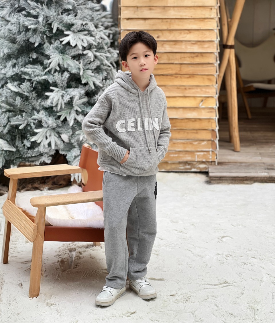 Celine, high-end children's clothing, sweaters for boys and girls, letter patchwork embroidery, simple, fashionable, laid-back and casual atmosphere, beautiful when worn alone, as an inner layer or layered. Made of Arctic fleece and wool blended yarn - soft and sticky, high-temperature and environmentally friendly dyeing - good density and flatness, with a small amount of nylon added - resilient and pilling for better durability. The washing process of the finished garment makes the hand feel softer, more comfortable and sticky. Sweater thickness: 550 gram, autumn and winter essential mix build sheet is tasted, upper body comfortable, good-looking, only connect a code number: 100/110/120/130/140/150/160/165 cm