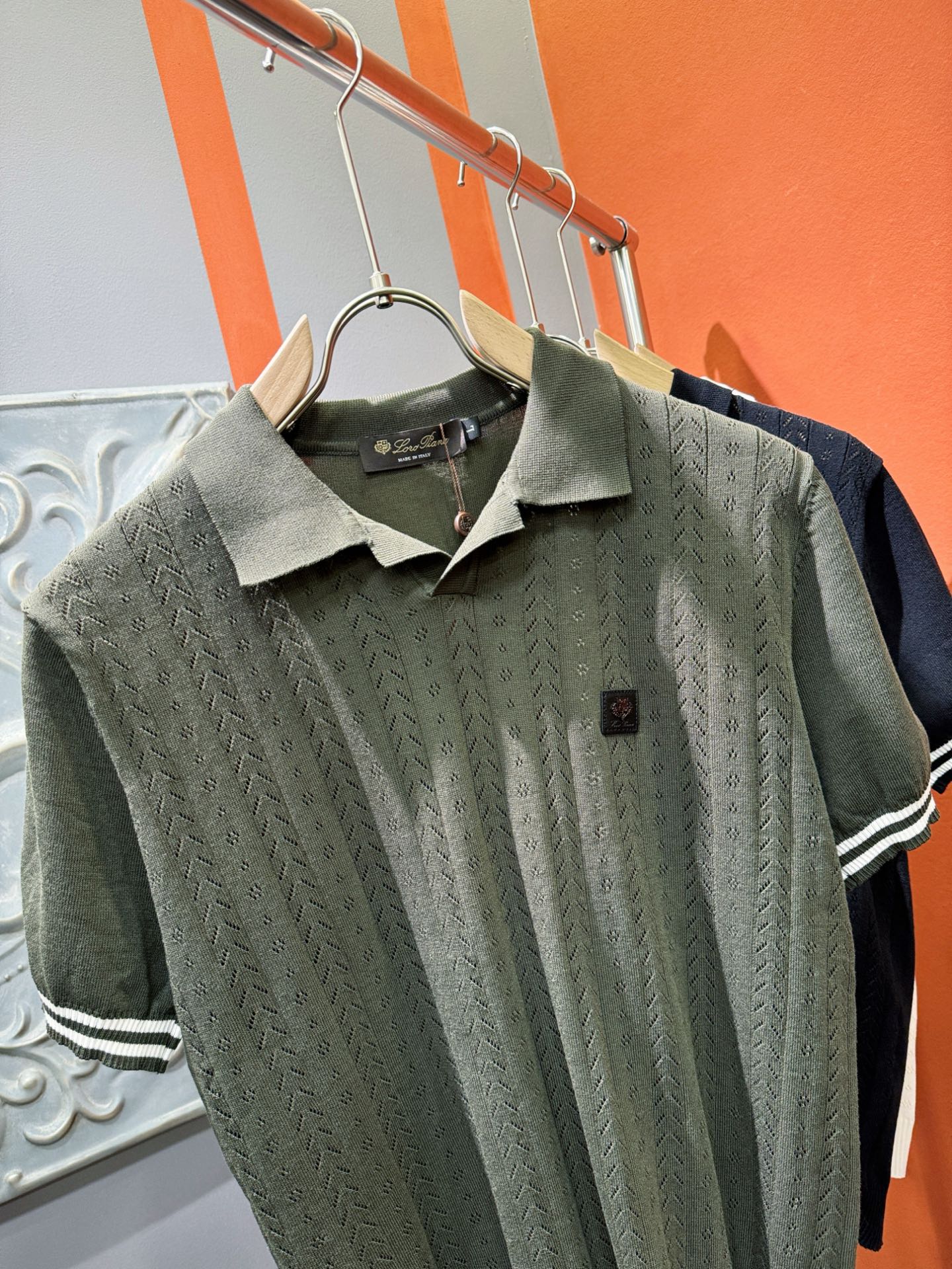 Loro Piana's new Spring/Summer 2025 knitted short-sleeved shirt is made of imported knitted fabric and has a soft touch. Top-quality imported private goods, fashionable design and trendy short-sleeved knitted sweater, without doubt luxurious quality. The wearing effect is excellent. The same style as the official website of luxury! Size: M-4XL
