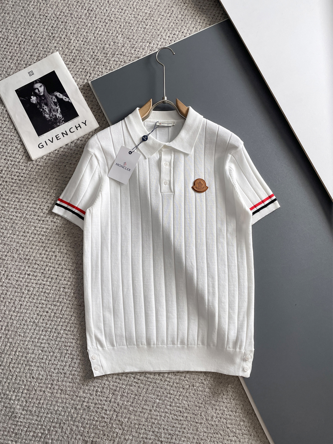 Mengkou's new Spring/Summer 2025 collection features a simple and versatile design with letter embroidery, top-quality imported private knitted polo short-sleeved shirt. It is a high-end heavy industry jacquard short-sleeved knitted sweater. The counter style is fashionable yet luxurious, and the quality is beyond doubt. The wearing effect is excellent. The same size as the official website's counter is M-xxxl