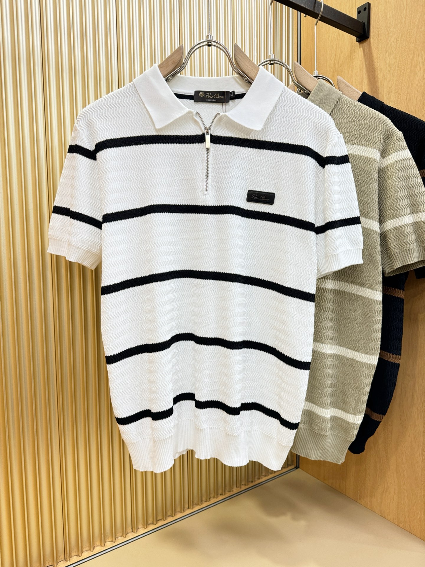Loro Piana's new Spring/Summer 2025 knitted short-sleeved shirt is made of imported knitted fabric and has a soft touch. Top-quality imported private goods, fashionable design and trendy short-sleeved knitted sweater, without doubt luxurious quality. The wearing effect is excellent. The same style as the official website of luxury! Size: M-4XL