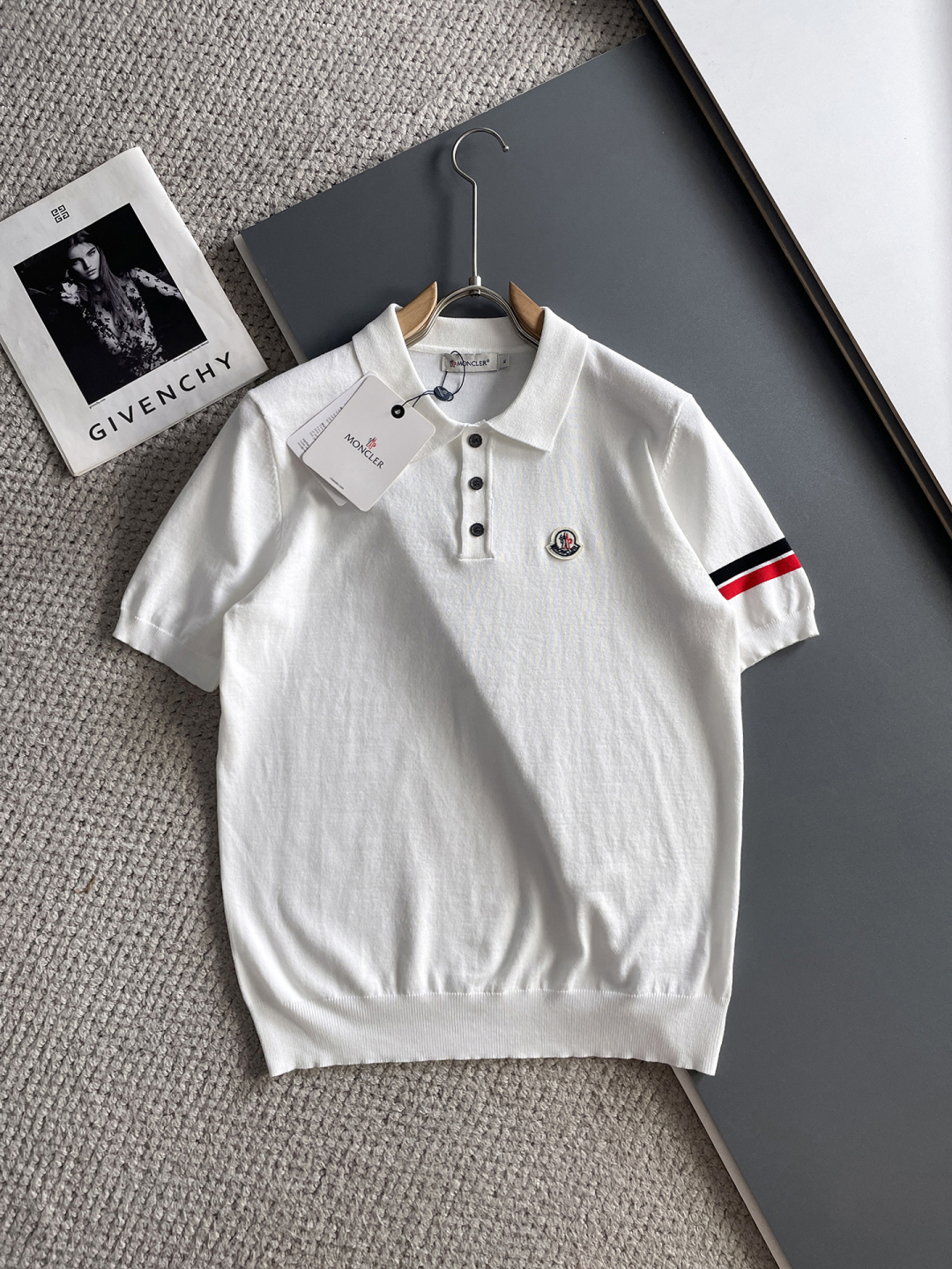 Mengkou's new Spring/Summer 2025 collection features a simple and versatile design with letter embroidery, top-quality imported private knitted polo short-sleeved shirt. It is a high-end heavy industry jacquard short-sleeved knitted sweater. The counter style is fashionable yet luxurious, and the quality is beyond doubt. The wearing effect is excellent. The same size as the official website's counter is M-xxxl