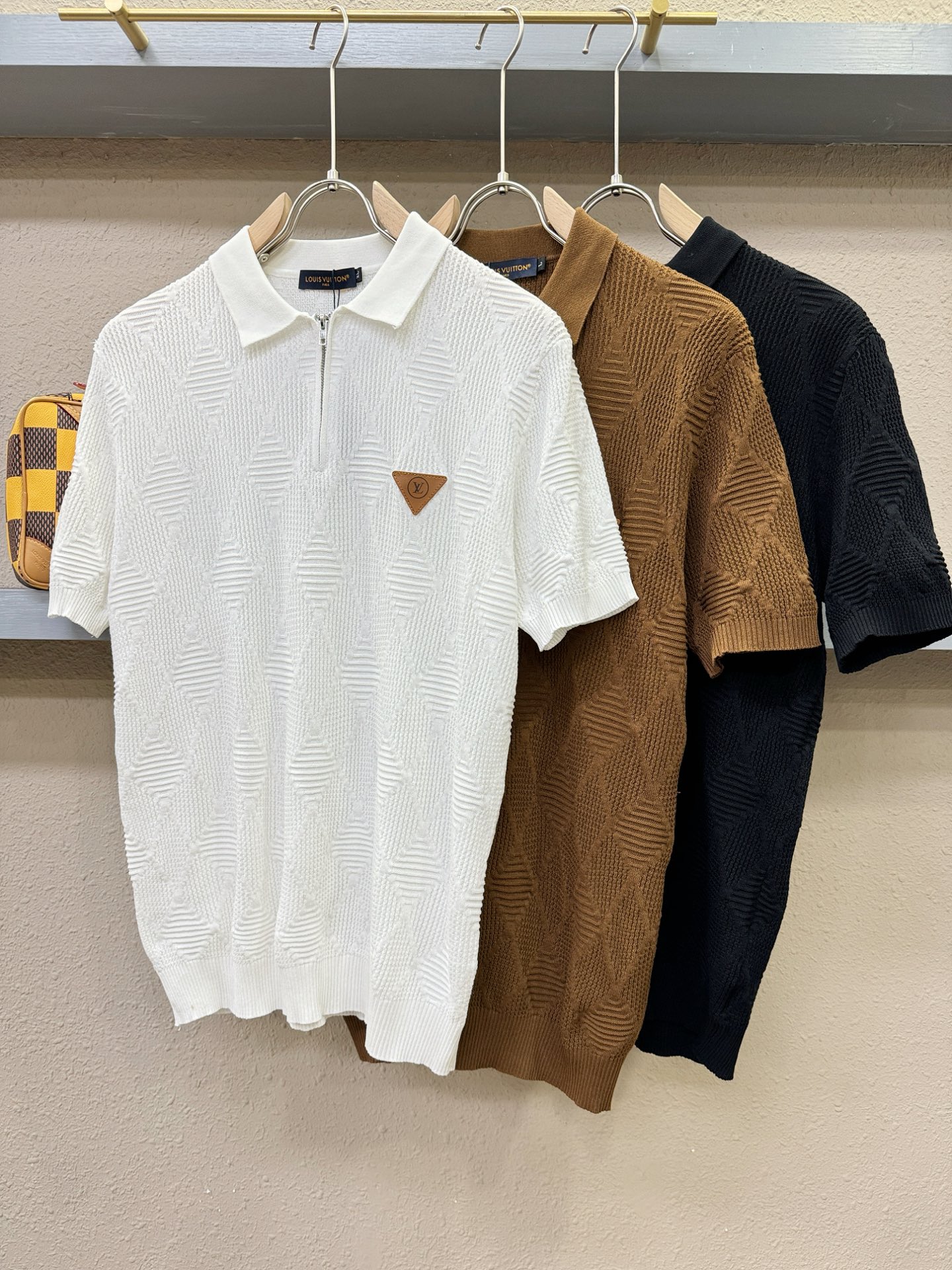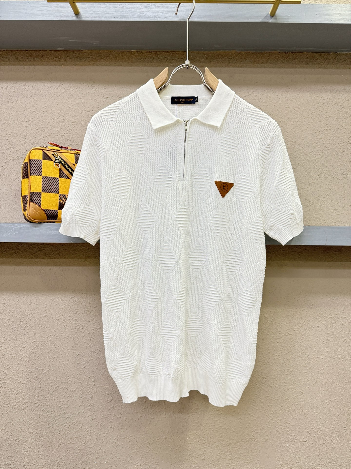 LV's Spring/Summer 2025 new knitted short-sleeved shirt, made of imported knitted fabric, has a soft touch. Top-quality imported private goods, fashionable design and trendy short-sleeved knitted sweater, without doubt luxurious quality. The wearing effect is excellent. The same style as the official website of luxury! Size: M-4XL