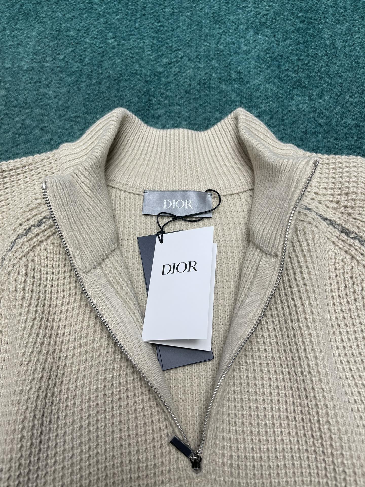 Dior's new zippered collar knitted sweater ingeniously blends sporty spirit with classic items. Exquisitely crafted from white wool knitted fabric, the front is adorned with Dior logo embroidery. It features a stand-up collar design, paired with a ribbed base and cuffs. It can create a comfortable and elegant casual look. Size: S.M.L.XL.