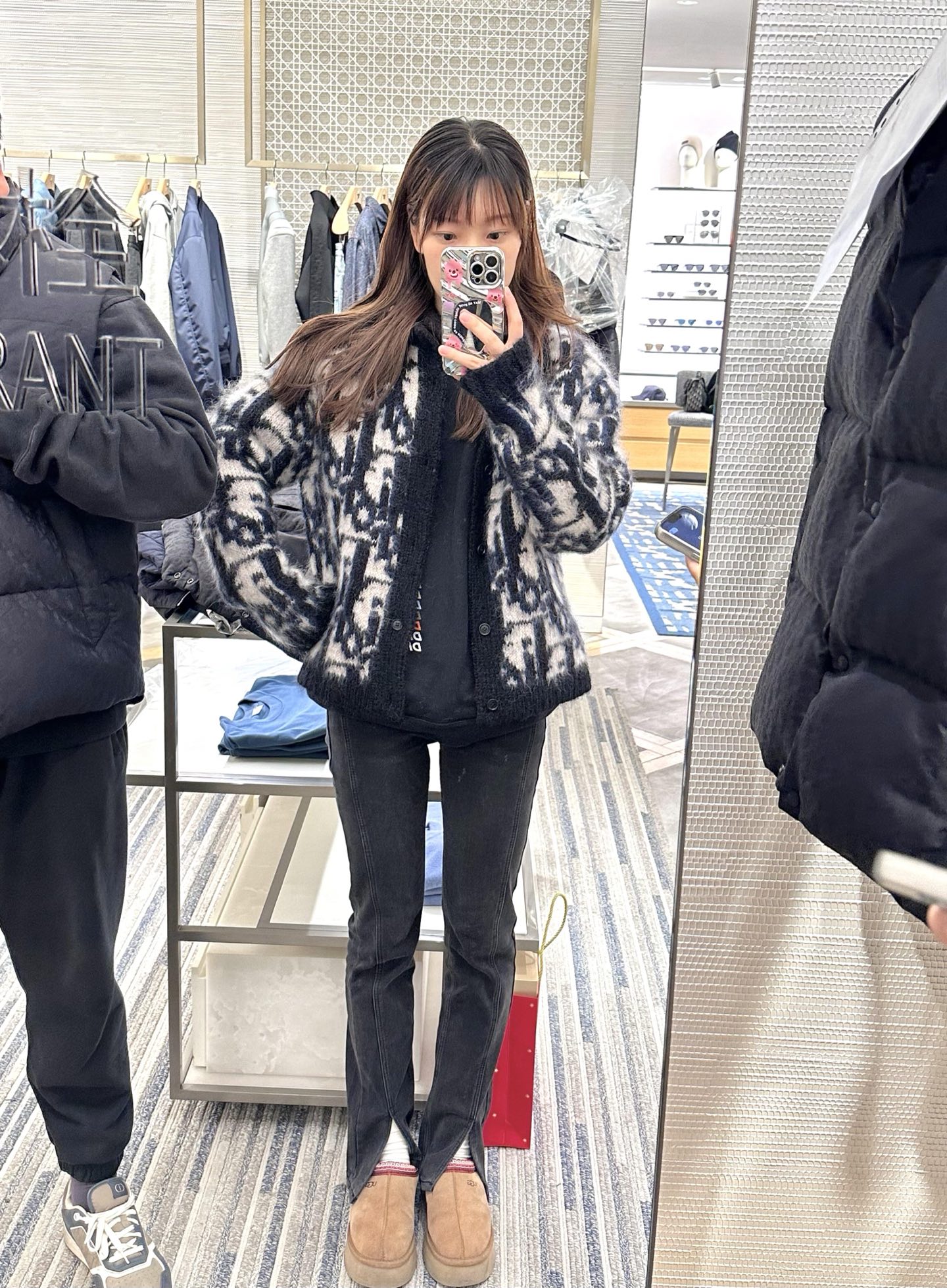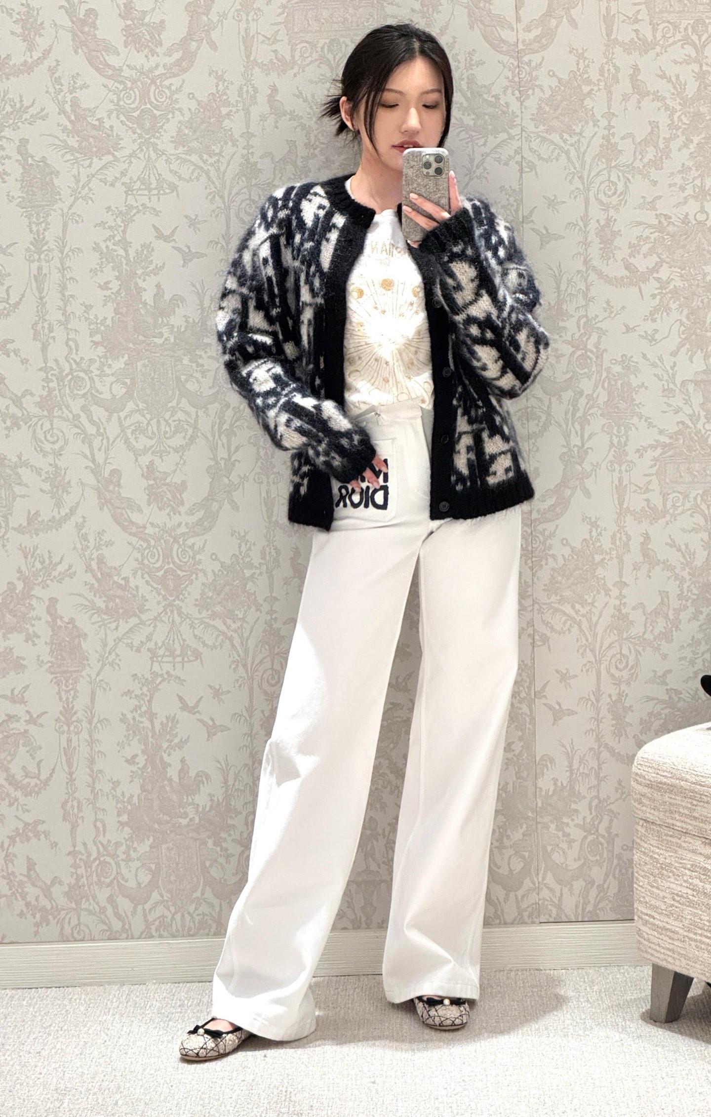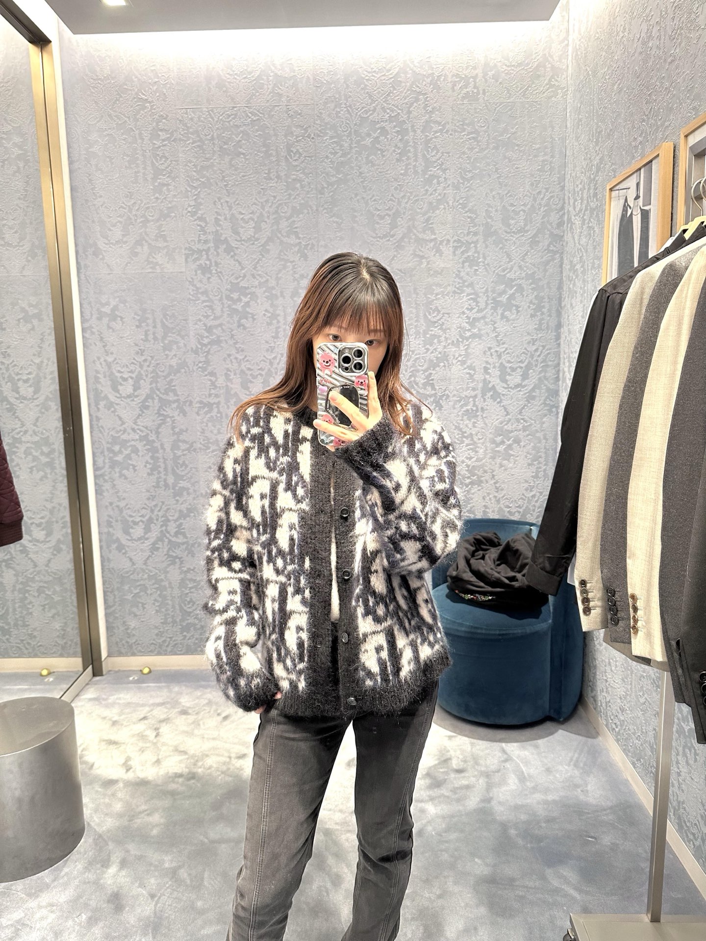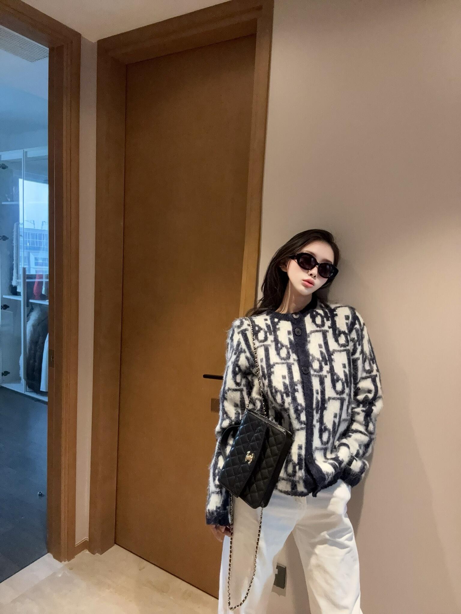 . DIOR mohair jacquard knitted cardigan Fabric: Made of 70 mohair, 20 cotton, and 10 nylon. This fabric is custom-made, with a mohair content as high as 70%, making the visual effect of the entire garment extremely perfect. 20% cotton yarn can make the clothes more three-dimensional, while adding 10% nylon can give the clothes a slight elastic effect. Craftsmanship: Woven by imported 9-needle machines, with 10 nozzles of fixed weaving of Dior's signature jacquard. Every detail position is perfectly restored. Accessories: The entire garment is equipped with 6 resin buttons, and each button is engraved with the iconic DIOR logo. This knitted sweater reinterprets Dior's classic Oblique print pattern. Crafted from mohair jacquard fabric, it creates a classic silhouette. It can be matched with all kinds of outfits to show your personality. Auxiliary materials: Customized 1:1 washing water label Accessories: Customized 1:1 resin buttons Process: Customized 1:1 jacquard ICONS Size: S-M-L-X Colour: Black Exclusive supply