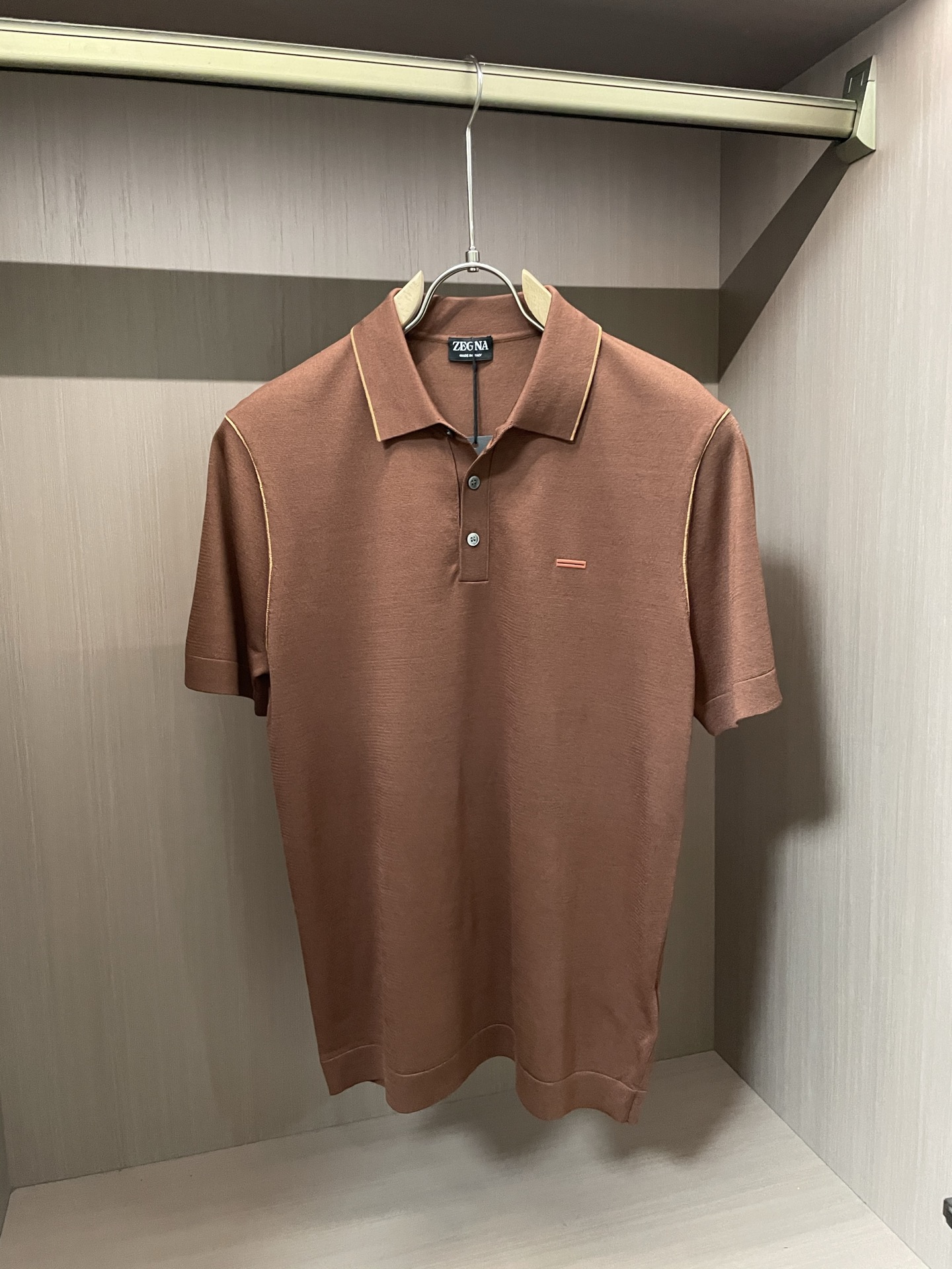 Zegna's latest men's lapel short-sleeved knitted sweater for Spring/Summer 2025 is made of carefully selected knitted cotton fabric. It features 60-count ultra-soft long-staple cotton and 16-stitch fine stitching, with clear texture, fully demonstrating high-end luxury quality. The comfort of wearing it close to the skin is definitely incomparable to that of ordinary T-shirts. Moreover, it is more breathable and cool than ordinary cotton T-shirts, and there will be no feeling of heat when worn until July or August. The traditional POLO collar design is simple and elegant, with a light business style and a strong sense of quality. It looks tasteful and stylish when worn, and is super versatile and never goes out of style. It can be worn alone in summer, simple and elegant, and can be easily handled for both business and casual occasions. It can also be worn as an inner layer in spring and autumn. Wearing a jacket or trench coat over it is a great choice, exuding a trendy and gentlemanly style. This knitted Polo shirt meets the export order standards and the details are handled very well. Once you put it on, you don't want to take it off. ?? fabric: 90% wool, cotton, 10% silk size: M - 3 xl