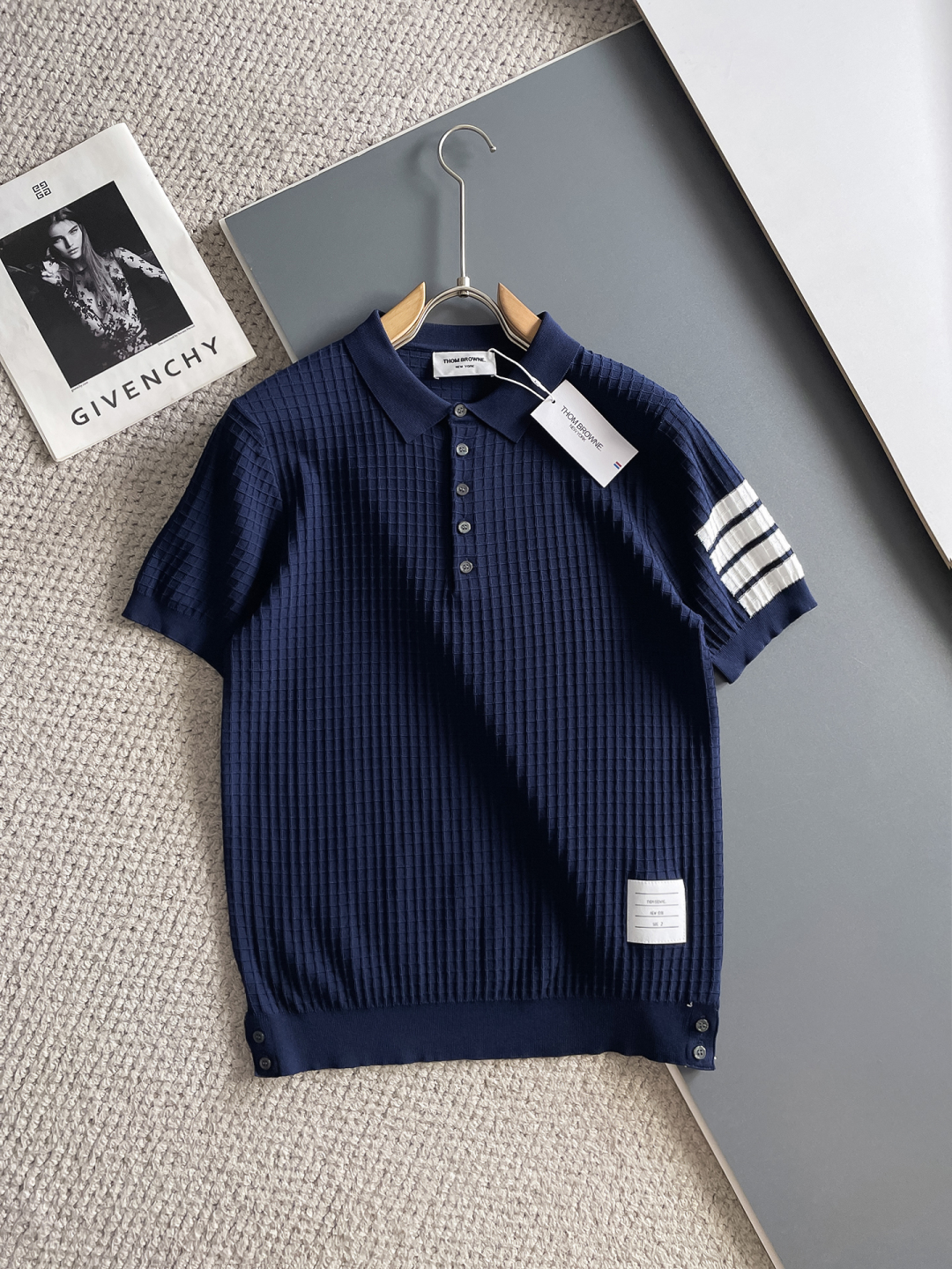 TB Spring/Summer 2025 new simple and versatile letter embroidered top-quality imported private knitwear polo short-sleeved shirt, high-end heavy industry jacquard short-sleeved knitwear. The counter style is fashionable yet luxurious, and the quality is beyond doubt. The wearing effect is excellent. The same size as the official website of luxury is M-xxxl