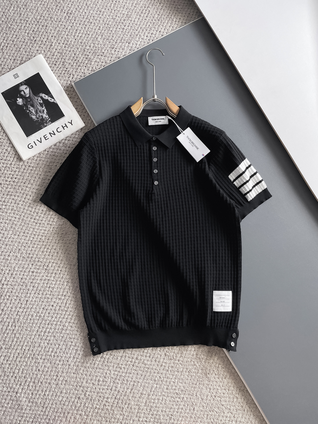 TB Spring/Summer 2025 new simple and versatile letter embroidered top-quality imported private knitwear polo short-sleeved shirt, high-end heavy industry jacquard short-sleeved knitwear. The counter style is fashionable yet luxurious, and the quality is beyond doubt. The wearing effect is excellent. The same size as the official website of luxury is M-xxxl