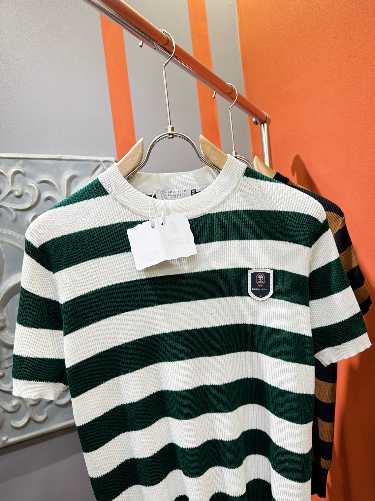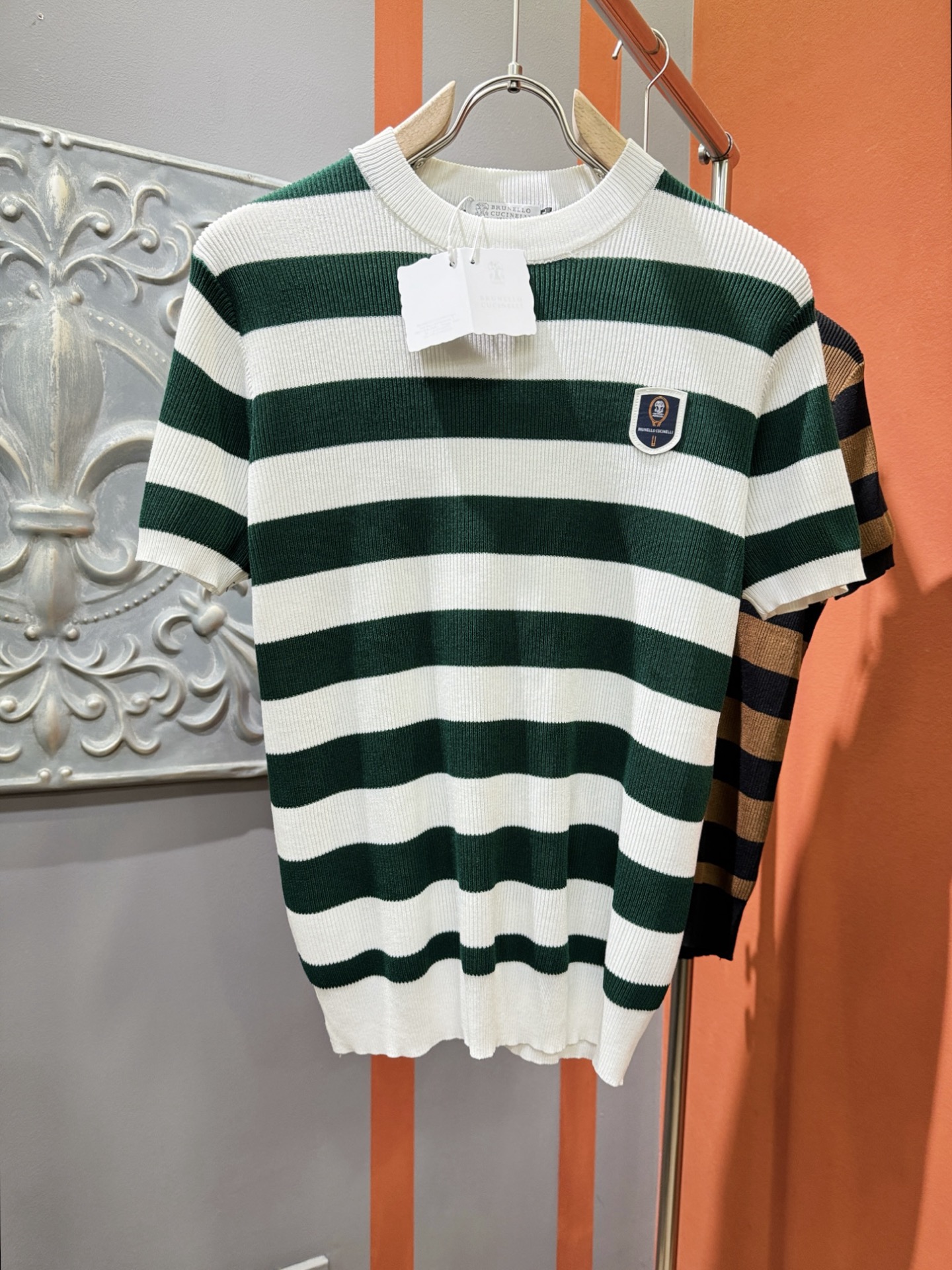 BC Bruti's new Spring/Summer 2025 knitted short-sleeved shirt, made of imported knitted fabric, has a soft touch. Top-quality imported private goods, fashionable design and trendy short-sleeved knitted sweater, without doubt luxurious quality. The wearing effect is excellent. The same style as the official website of luxury! Size: M-4XL