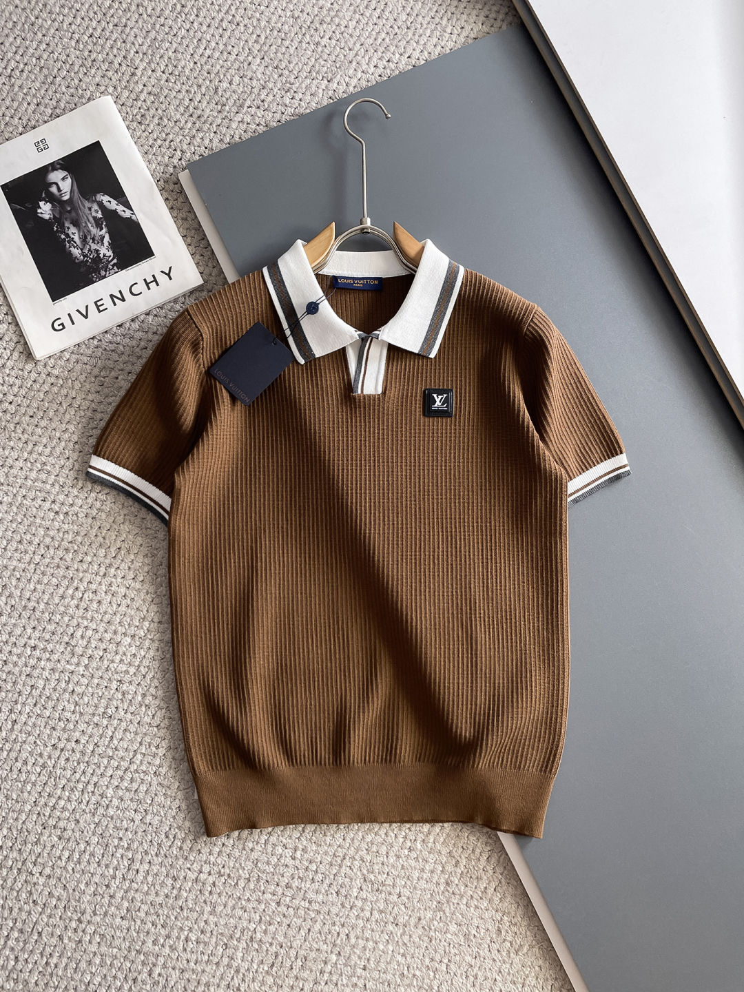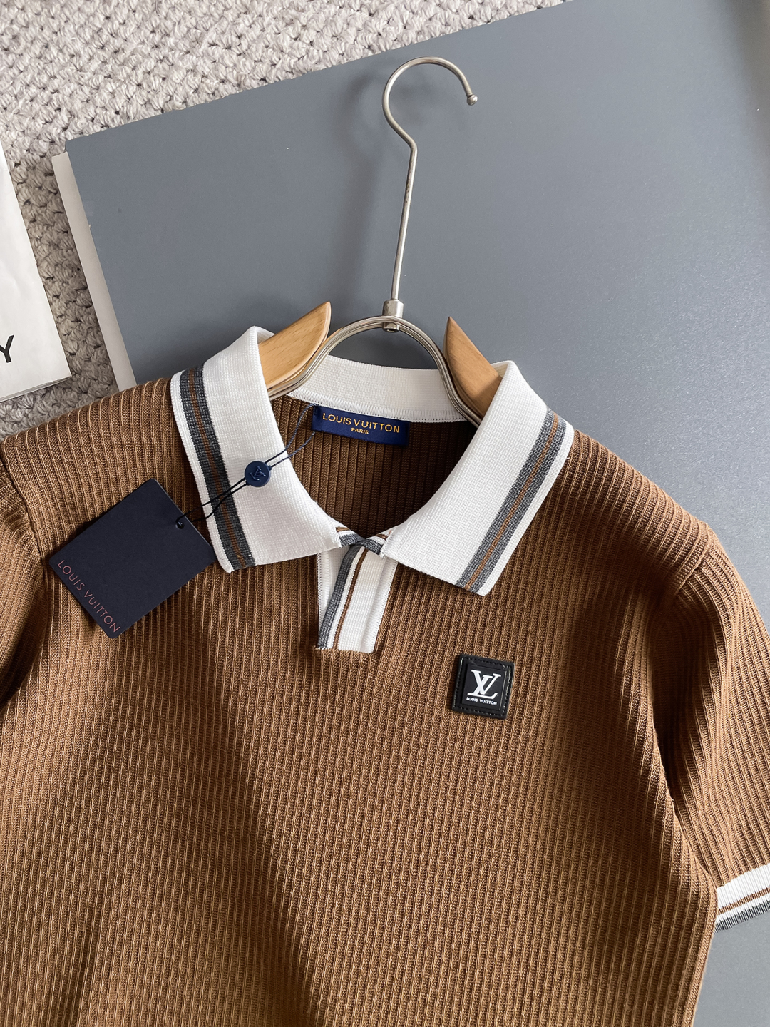 LV's new Spring/Summer 2025 collection features a simple and versatile design with lettered, top-quality imported private knitwear polo short-sleeved shirt. This high-end heavy jacquard short-sleeved knitted sweater is fashionable yet luxurious in the counter style. The quality is beyond doubt and the wearing effect is excellent. The same size as the official website's counter is M-xxxl