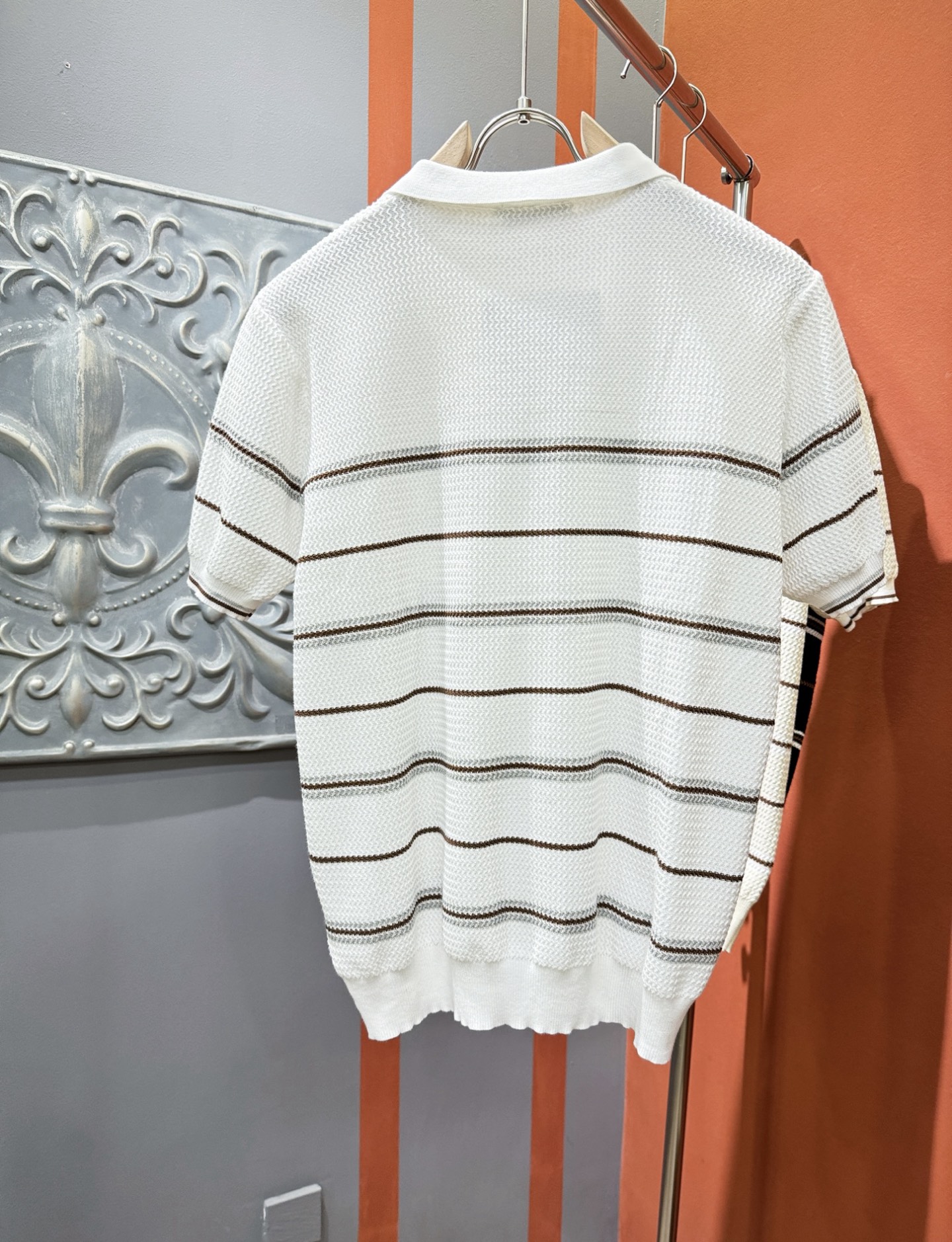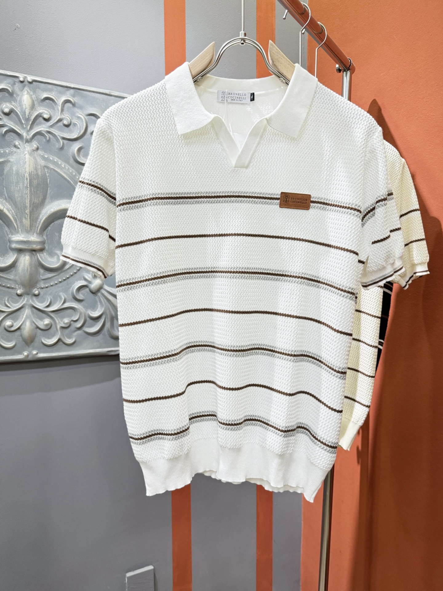 BC Bruti's new Spring/Summer 2025 knitted short-sleeved shirt, made of imported knitted fabric, has a soft touch. Top-quality imported private goods, fashionable design and trendy short-sleeved knitted sweater, without doubt luxurious quality. The wearing effect is excellent. The same style as the official website of luxury! Size: M-4XL