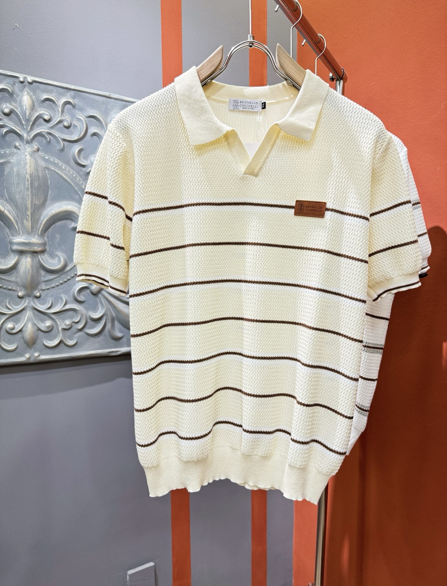 BC Bruti's new Spring/Summer 2025 knitted short-sleeved shirt, made of imported knitted fabric, has a soft touch. Top-quality imported private goods, fashionable design and trendy short-sleeved knitted sweater, without doubt luxurious quality. The wearing effect is excellent. The same style as the official website of luxury! Size: M-4XL