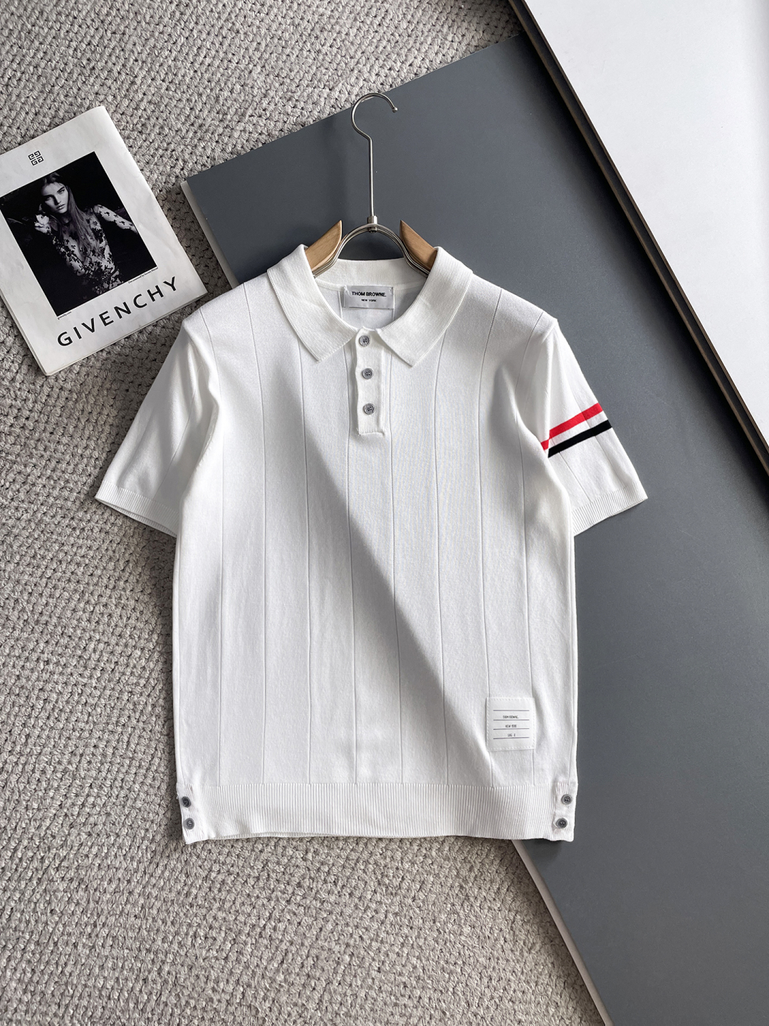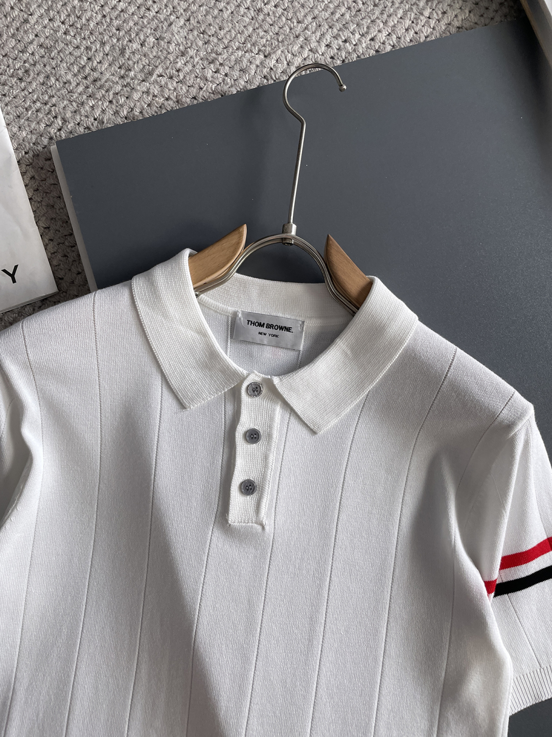 TB Spring/Summer 2025 new simple and versatile letter embroidered top-quality imported private knitwear polo short-sleeved shirt, high-end heavy industry jacquard short-sleeved knitwear. The counter style is fashionable yet luxurious, and the quality is beyond doubt. The wearing effect is excellent. The same size as the official website of luxury is M-xxxl