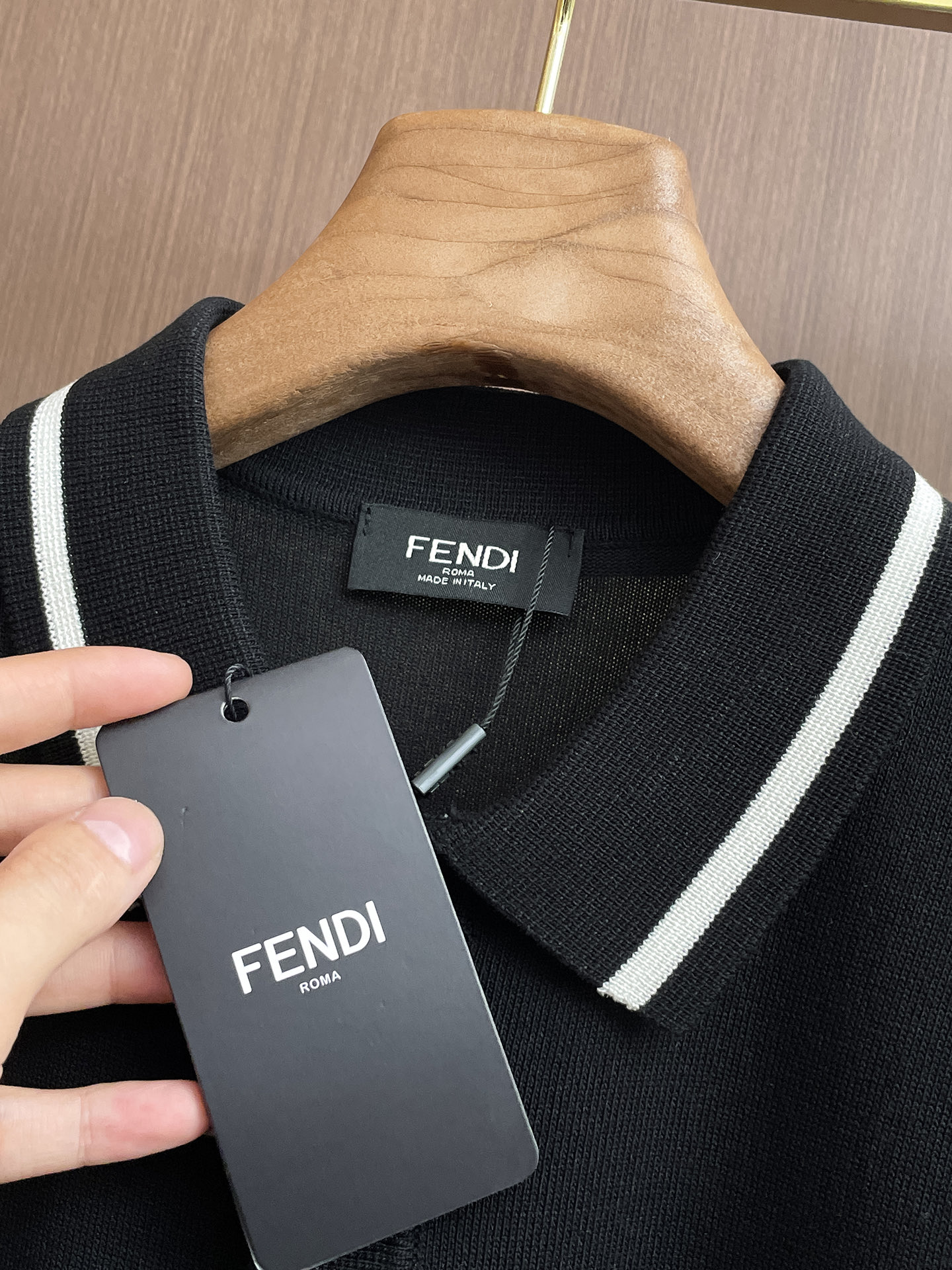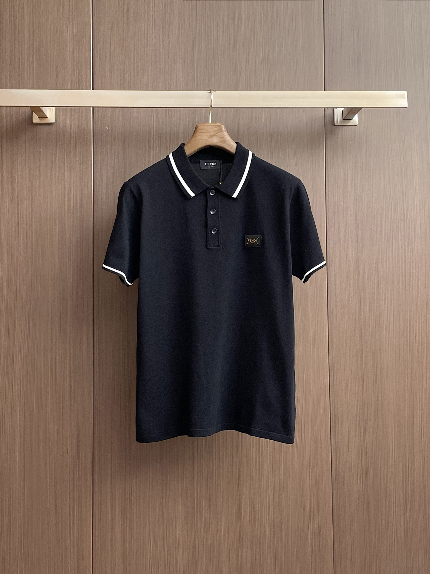 Fen ' '2025 Spring/Summer new knitted short-sleeved shirt, made of imported knitted fabric, soft to the touch. Top-quality imported private goods, a trendy short-sleeved knitted sweater with luxurious quality that is beyond doubt. The wearing effect is excellent. The same style as the official website of luxury! Size: M-3XL