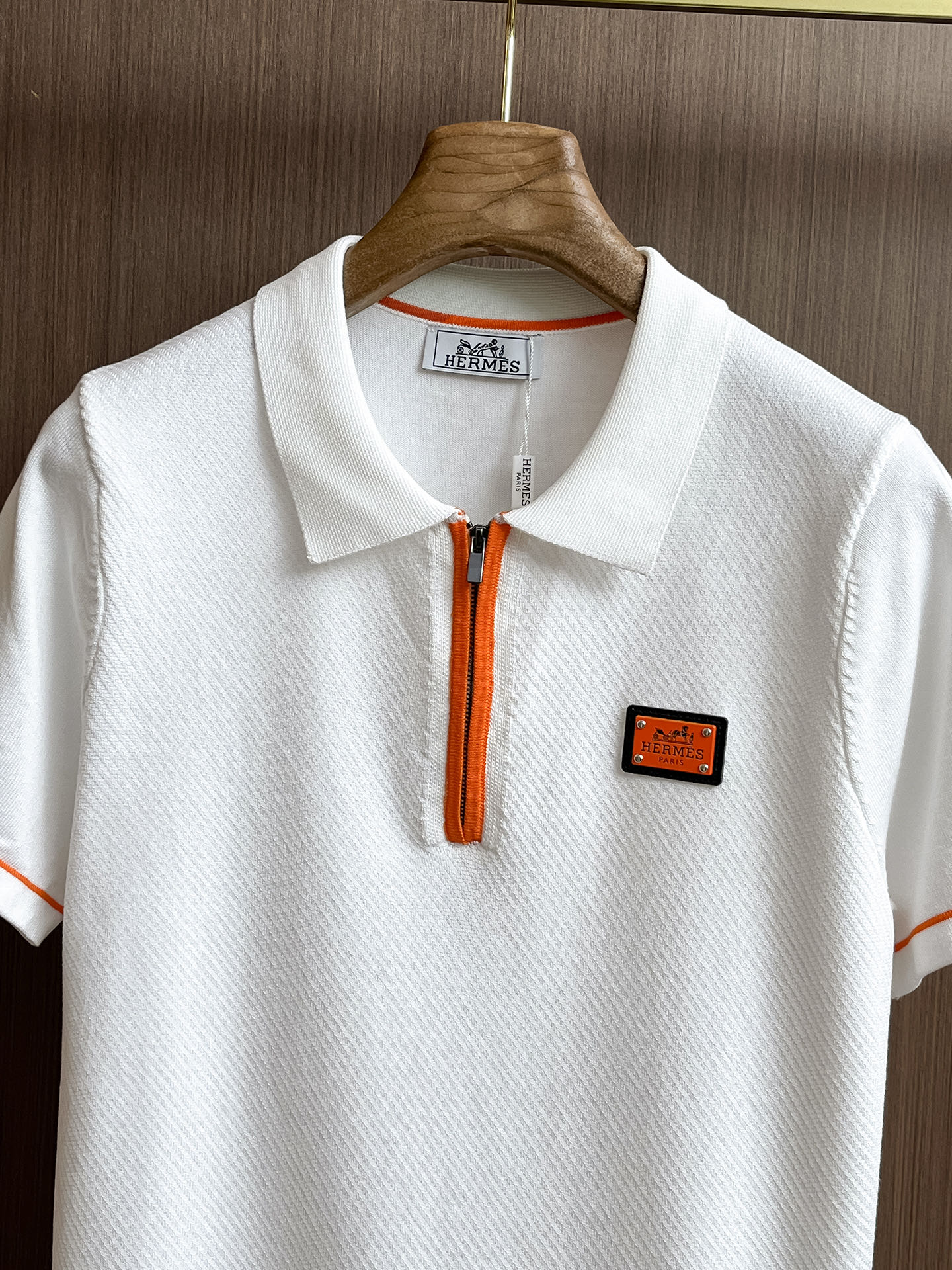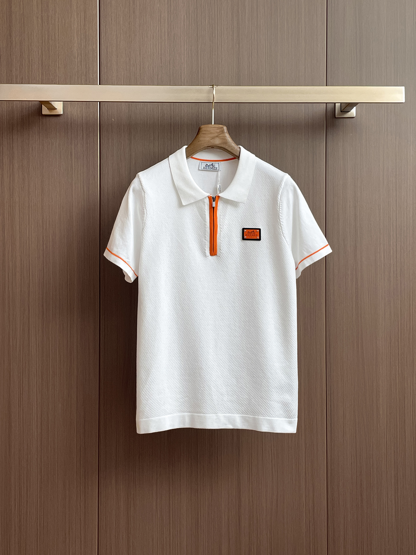 Hermes' Spring/Summer 2025 new knitted short-sleeved shirt, made of imported knitted fabric, has a soft touch. Top-quality imported private goods, a trendy short-sleeved knitted sweater with luxurious quality that is beyond doubt. The wearing effect is excellent. The same style as the official website of luxury! Size: M-3XL