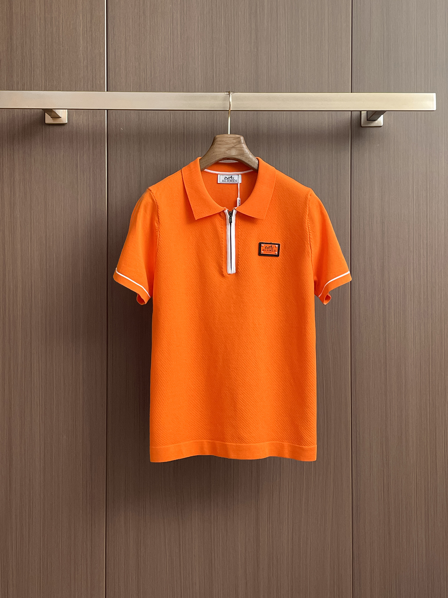 Hermes' Spring/Summer 2025 new knitted short-sleeved shirt, made of imported knitted fabric, has a soft touch. Top-quality imported private goods, a trendy short-sleeved knitted sweater with luxurious quality that is beyond doubt. The wearing effect is excellent. The same style as the official website of luxury! Size: M-3XL