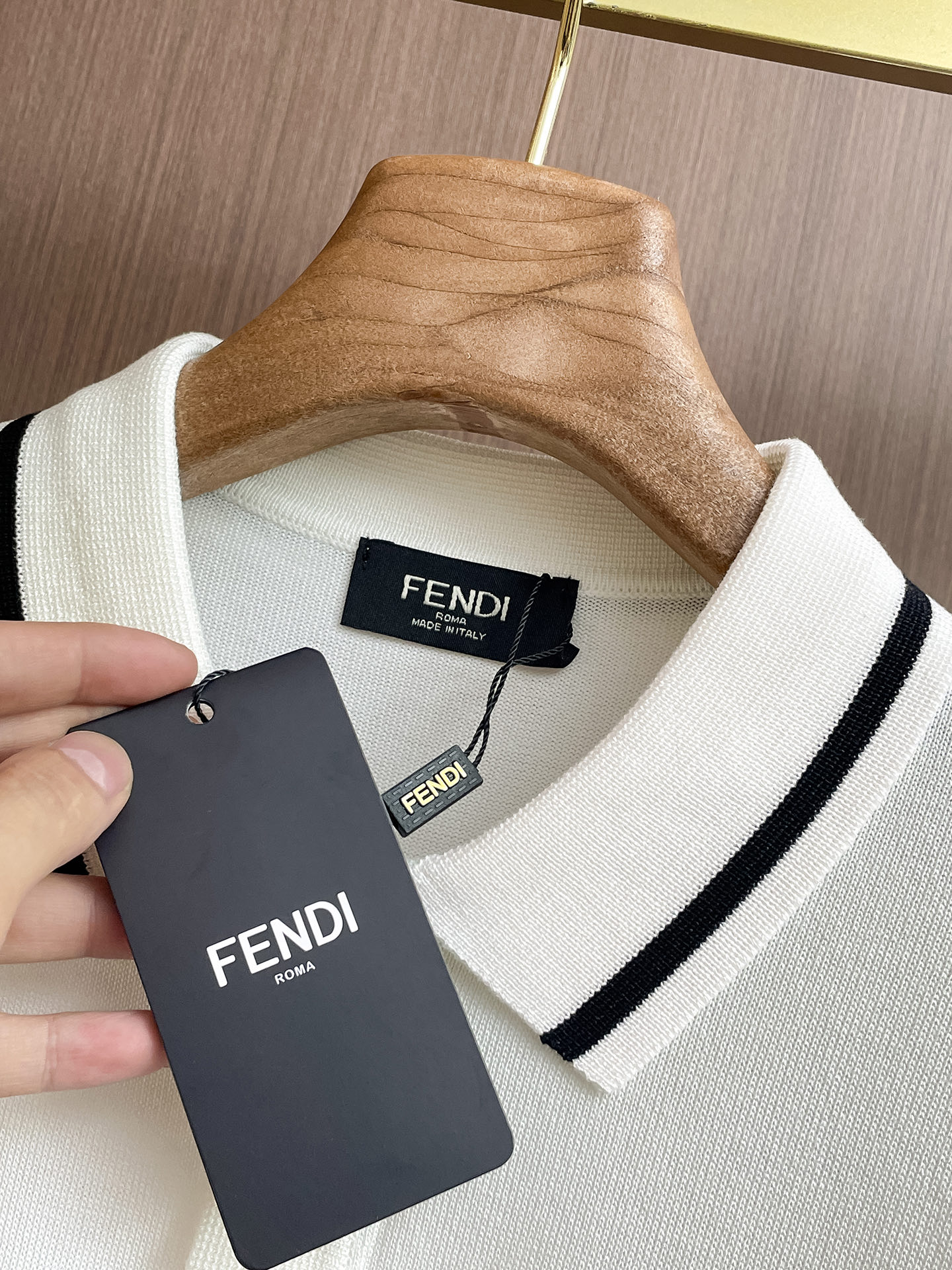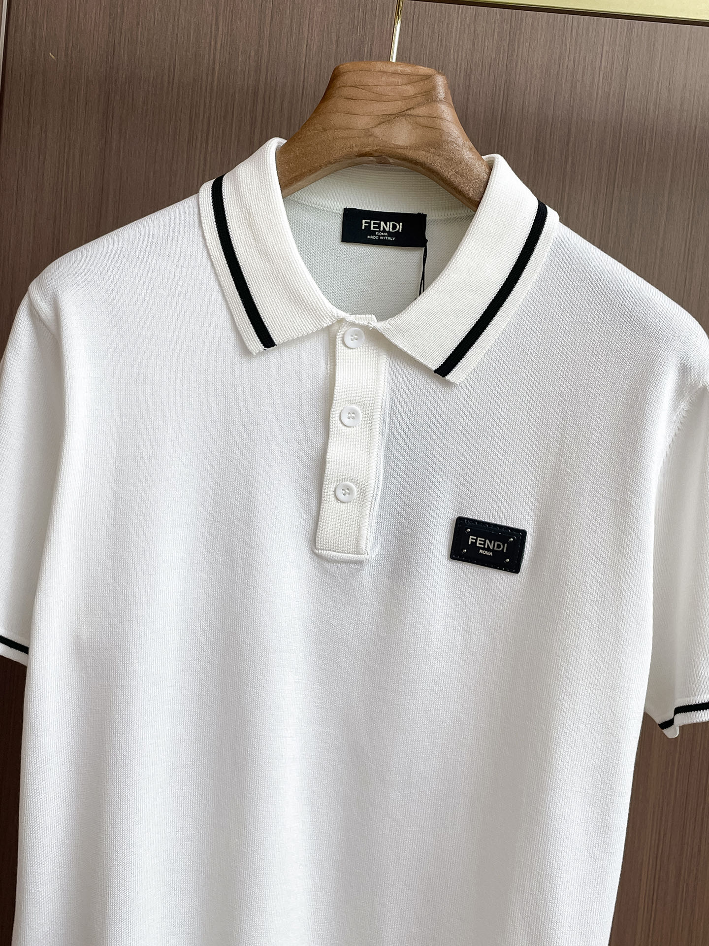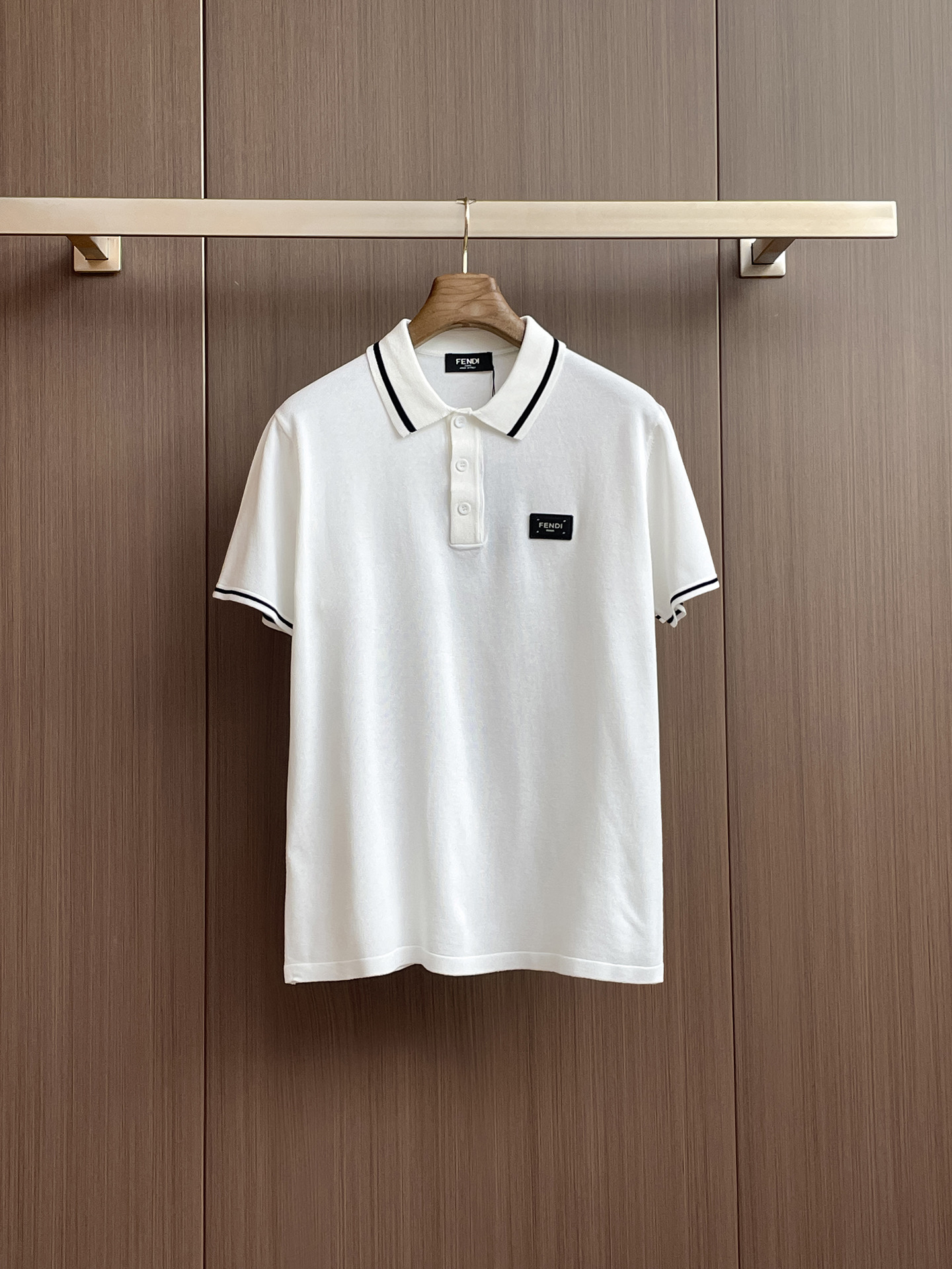 Fen ' '2025 Spring/Summer new knitted short-sleeved shirt, made of imported knitted fabric, soft to the touch. Top-quality imported private goods, a trendy short-sleeved knitted sweater with luxurious quality that is beyond doubt. The wearing effect is excellent. The same style as the official website of luxury! Size: M-3XL