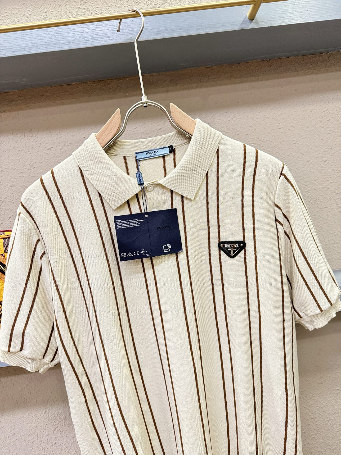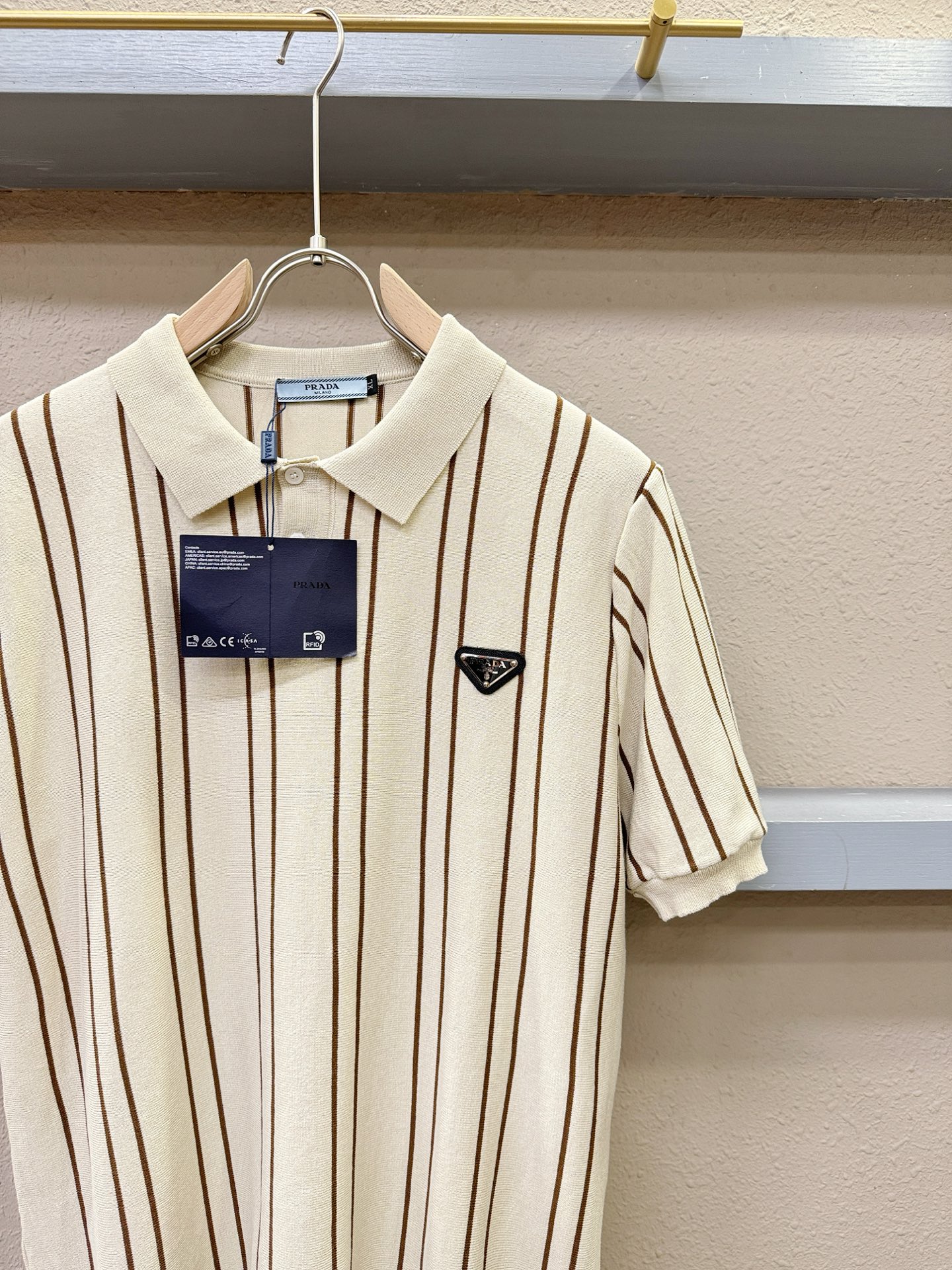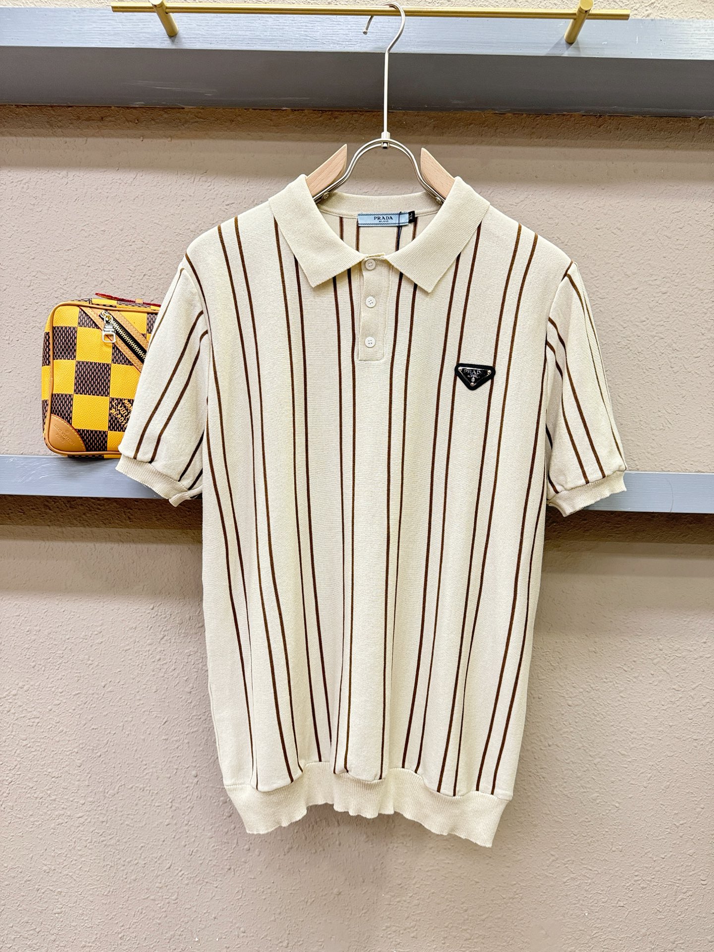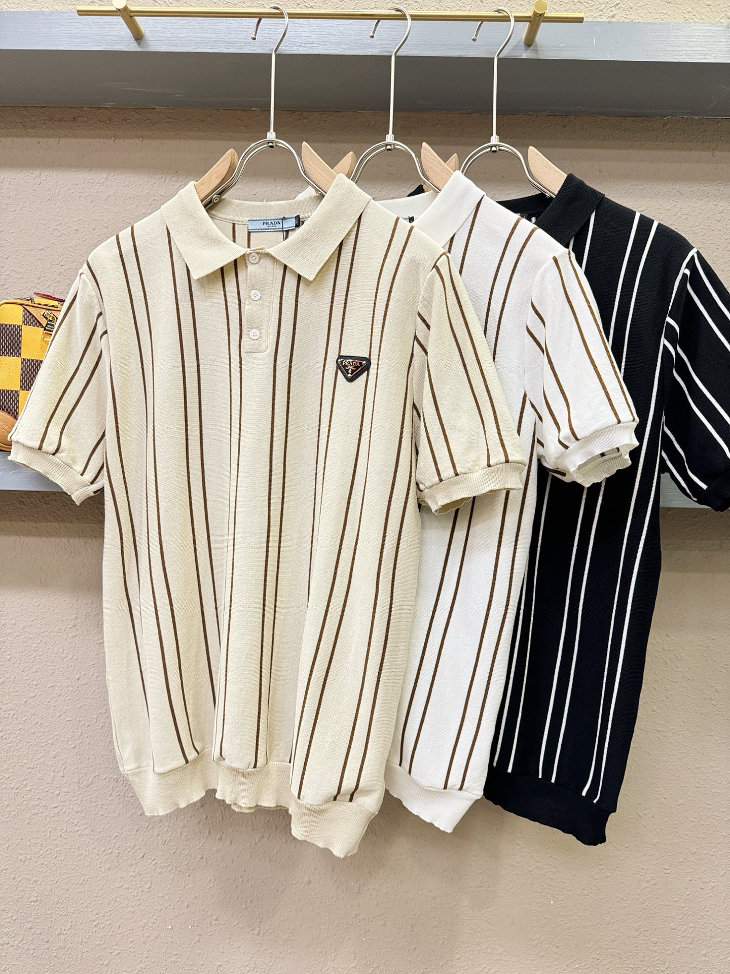PRADA's Spring/Summer 2025 new knitted short-sleeved shirt, made of imported knitted fabric, has a soft touch. Top-quality imported private goods, fashionable design and trendy short-sleeved knitted sweater, without doubt luxurious quality. The wearing effect is excellent. The same style as the official website of luxury! Size: M-4XL
