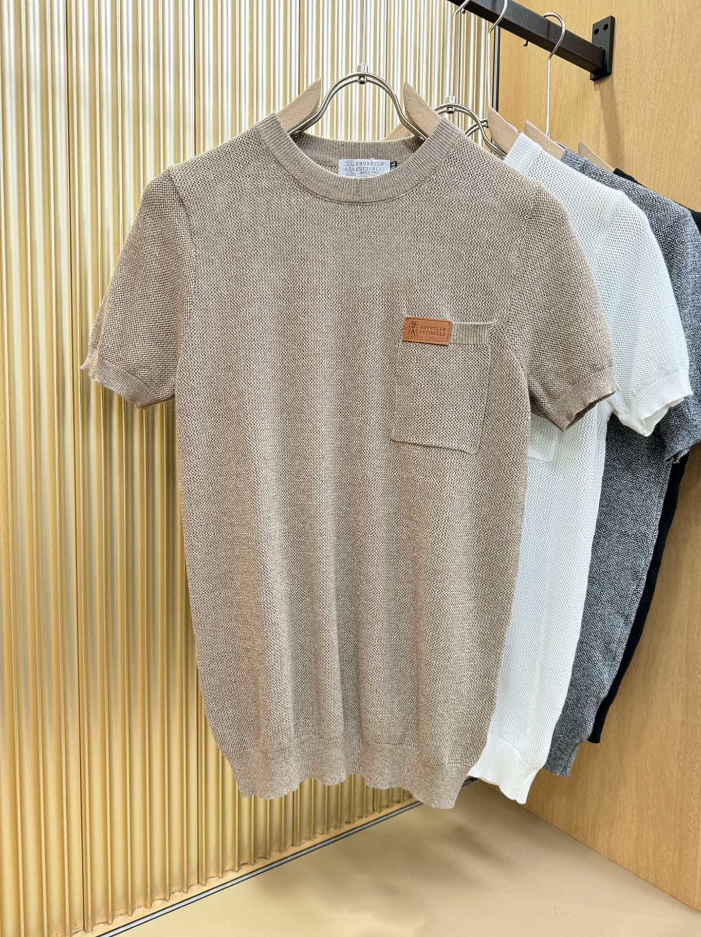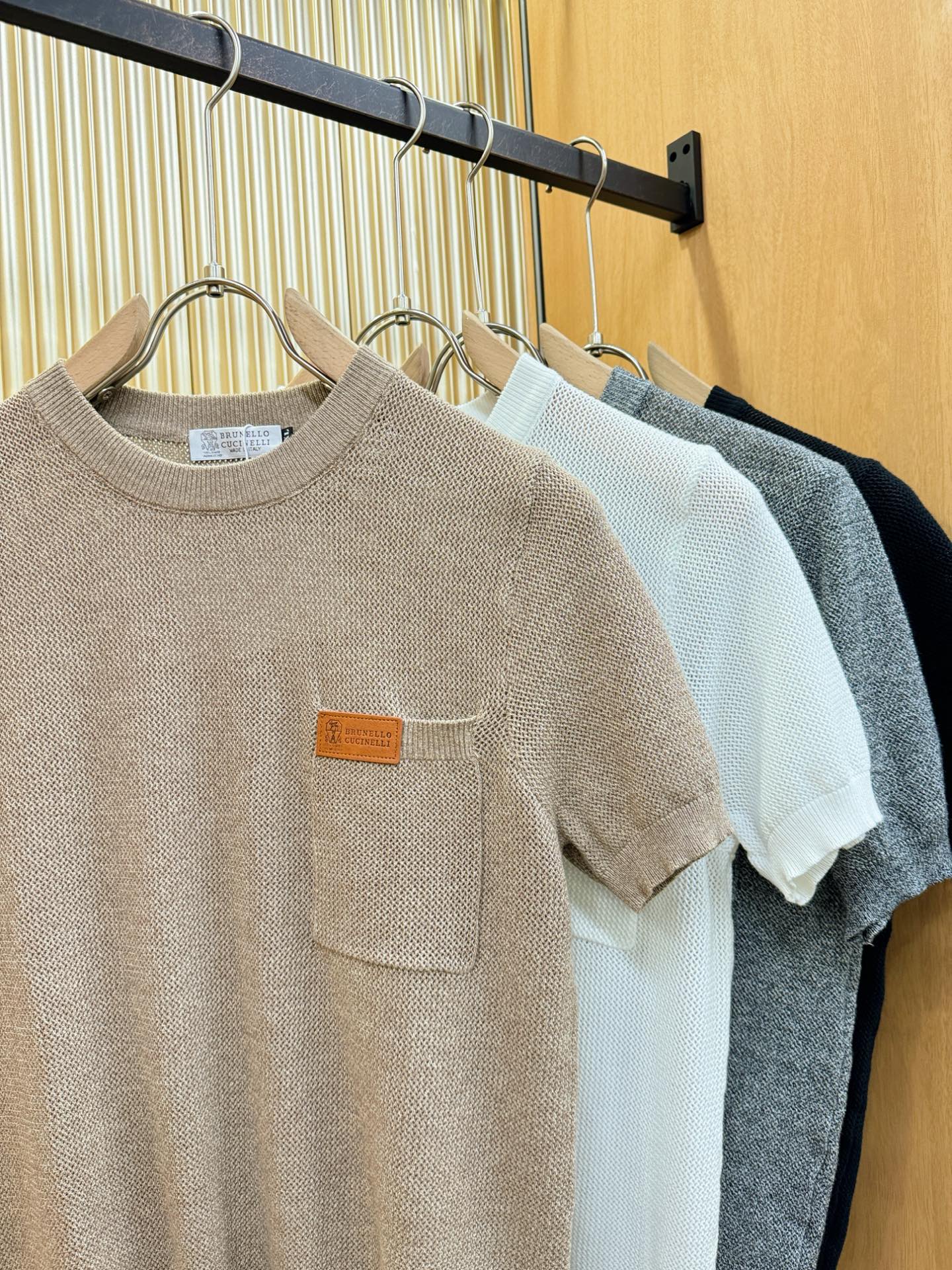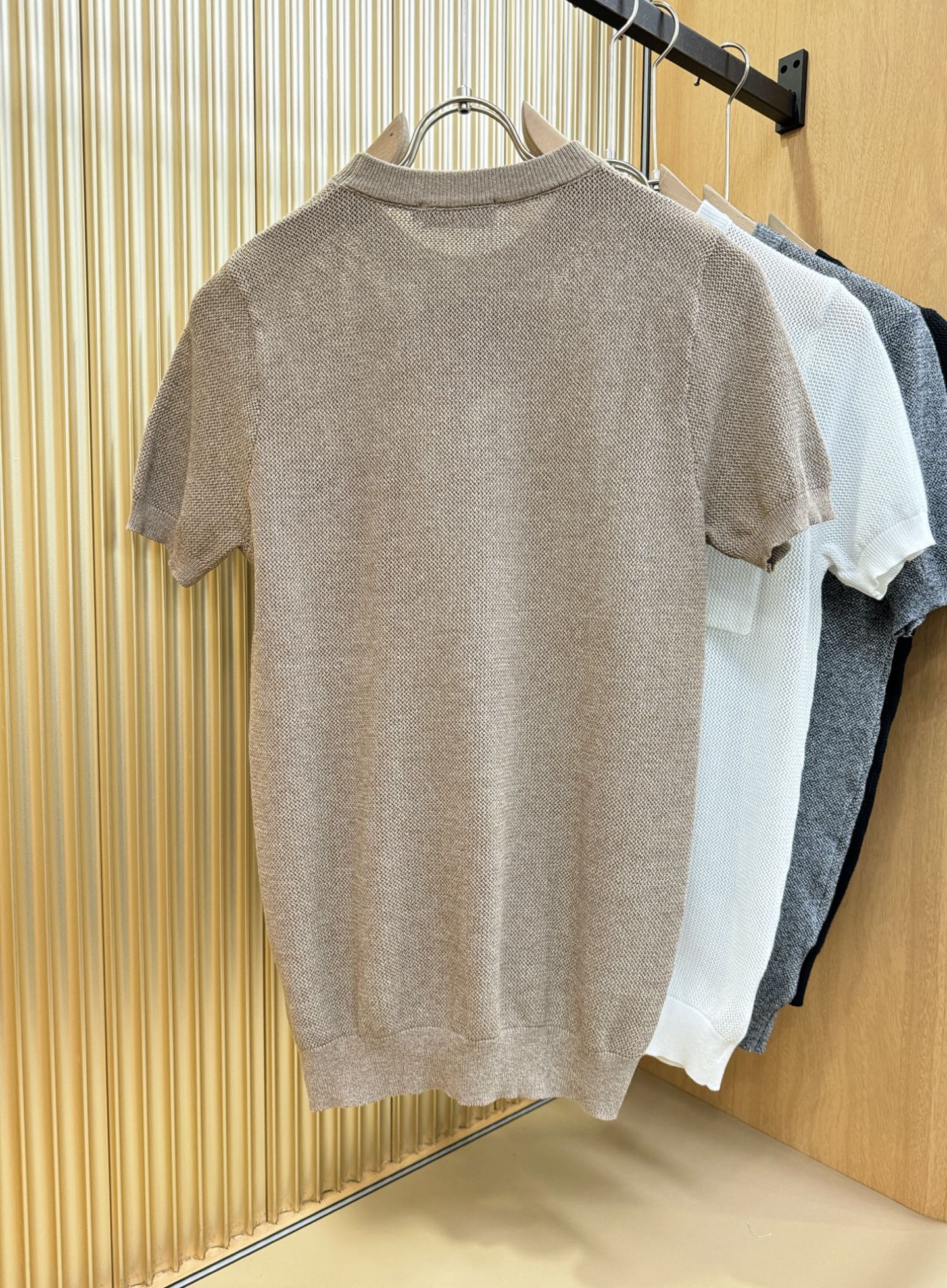 BC Bruti's new Spring/Summer 2025 knitted short-sleeved shirt, made of imported knitted fabric, has a soft touch. Top-quality imported private goods, fashionable design and trendy short-sleeved knitted sweater, without doubt luxurious quality. The wearing effect is excellent. The same style as the official website of luxury! Size: M-4XL