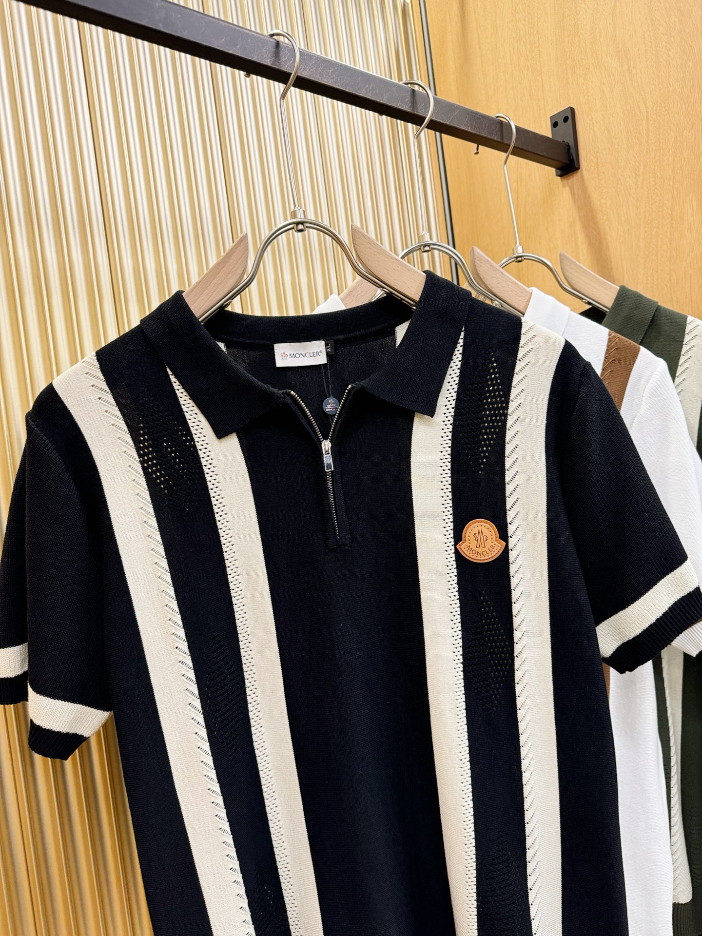Moncler's new Spring/Summer 2025 knitted short-sleeved shirt is made of imported knitted fabric and has a soft touch. Top-quality imported private goods, fashionable design and trendy short-sleeved knitted sweater, without doubt luxurious quality. The wearing effect is excellent. The same style as the official website of luxury! Size: M-4XL