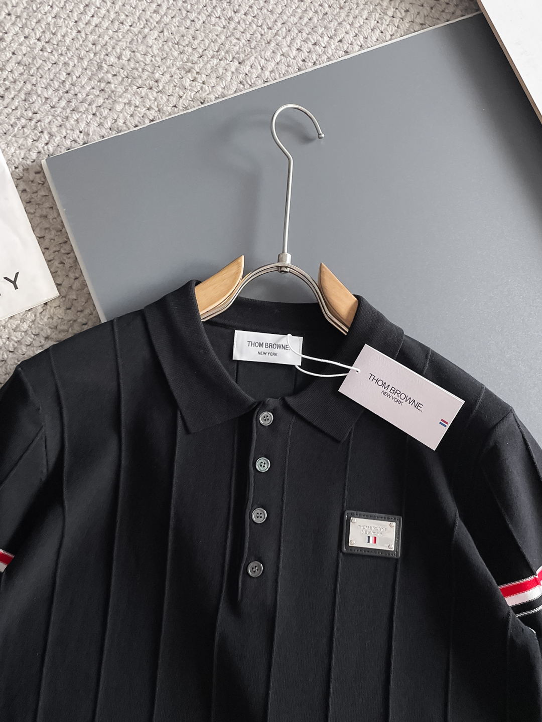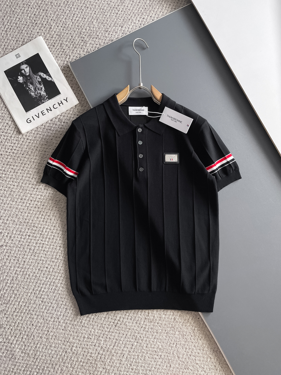 TB Spring/Summer 2025 new simple and versatile letter embroidered top-quality imported private knitwear polo short-sleeved shirt, high-end heavy industry jacquard short-sleeved knitwear. The counter style is fashionable yet luxurious, and the quality is beyond doubt. The wearing effect is excellent. The same size as the official website of luxury is M-xxxl