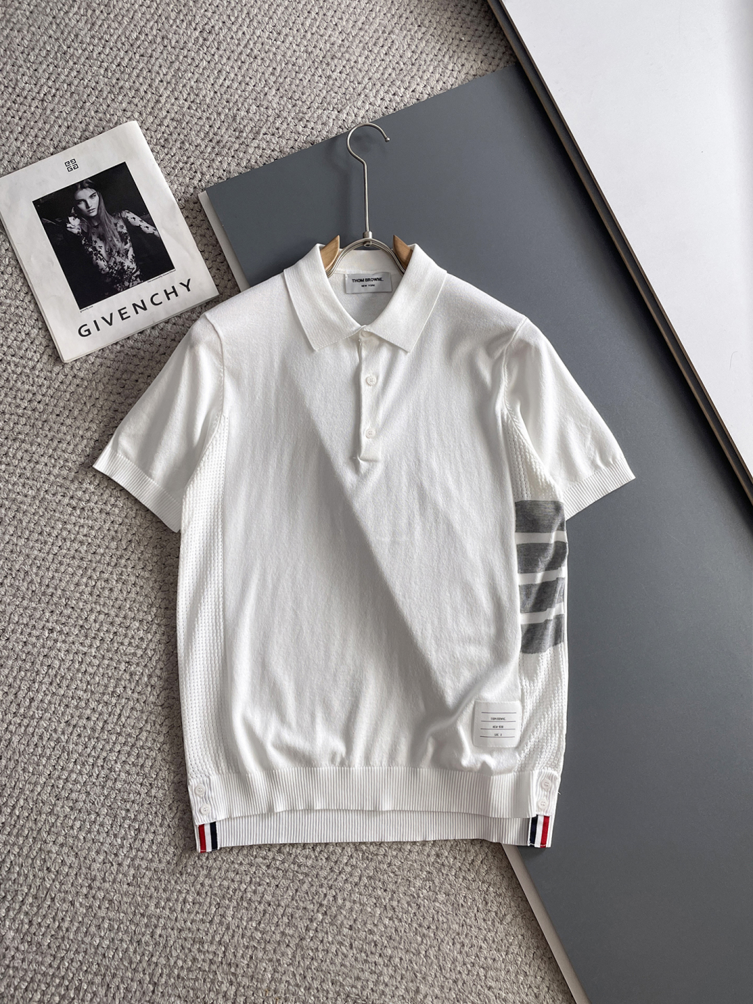 TB Spring/Summer 2025 new simple and versatile letter embroidered top-quality imported private knitwear polo short-sleeved shirt, high-end heavy industry jacquard short-sleeved knitwear. The counter style is fashionable yet luxurious, and the quality is beyond doubt. The wearing effect is excellent. The same size as the official website of luxury is M-xxxl