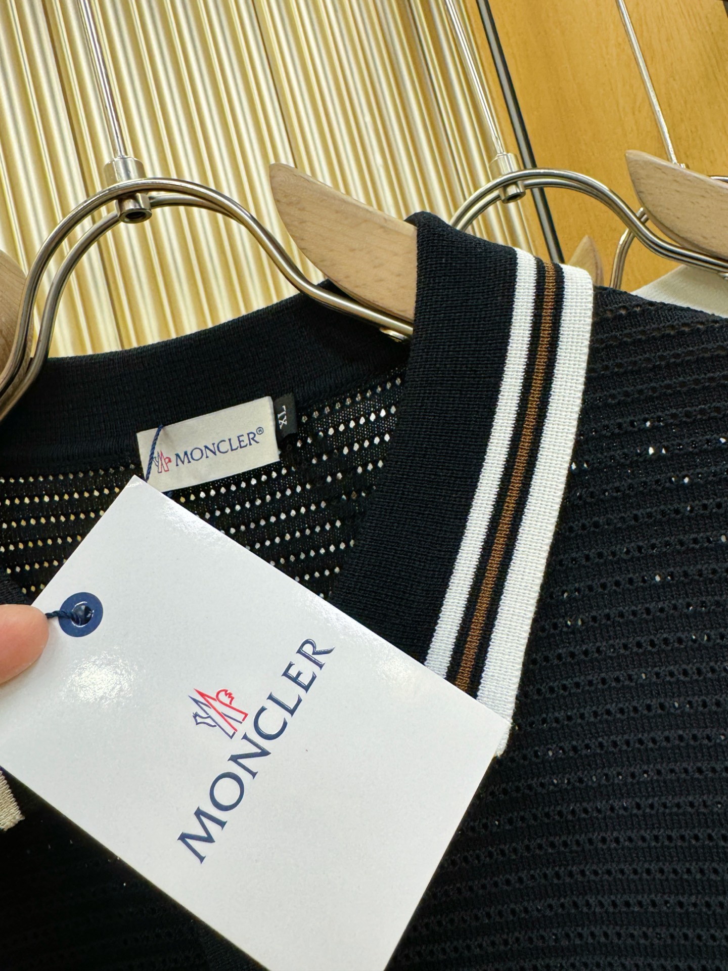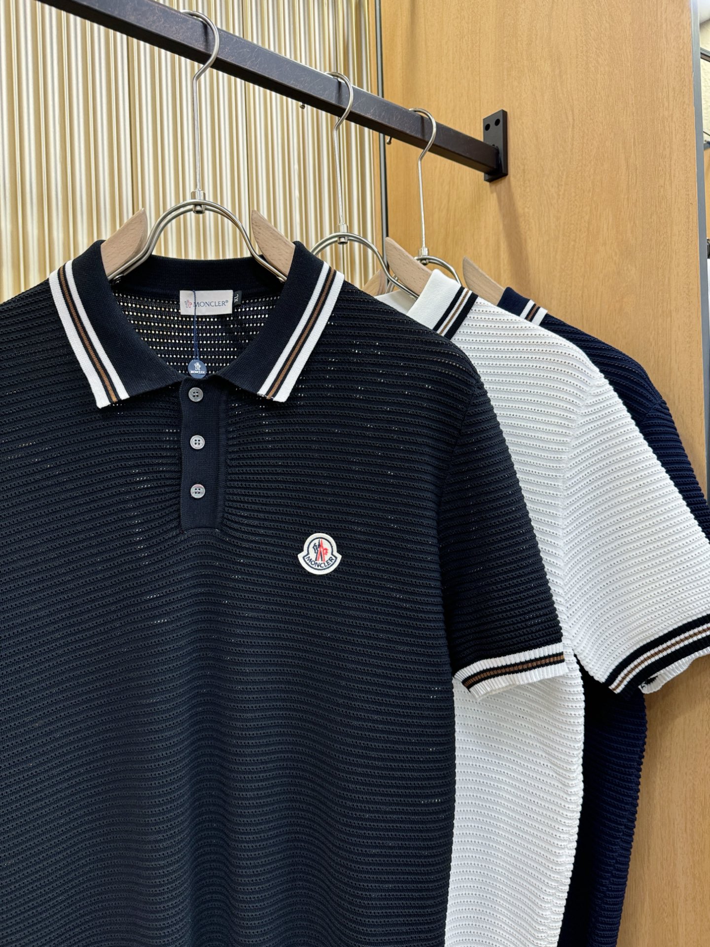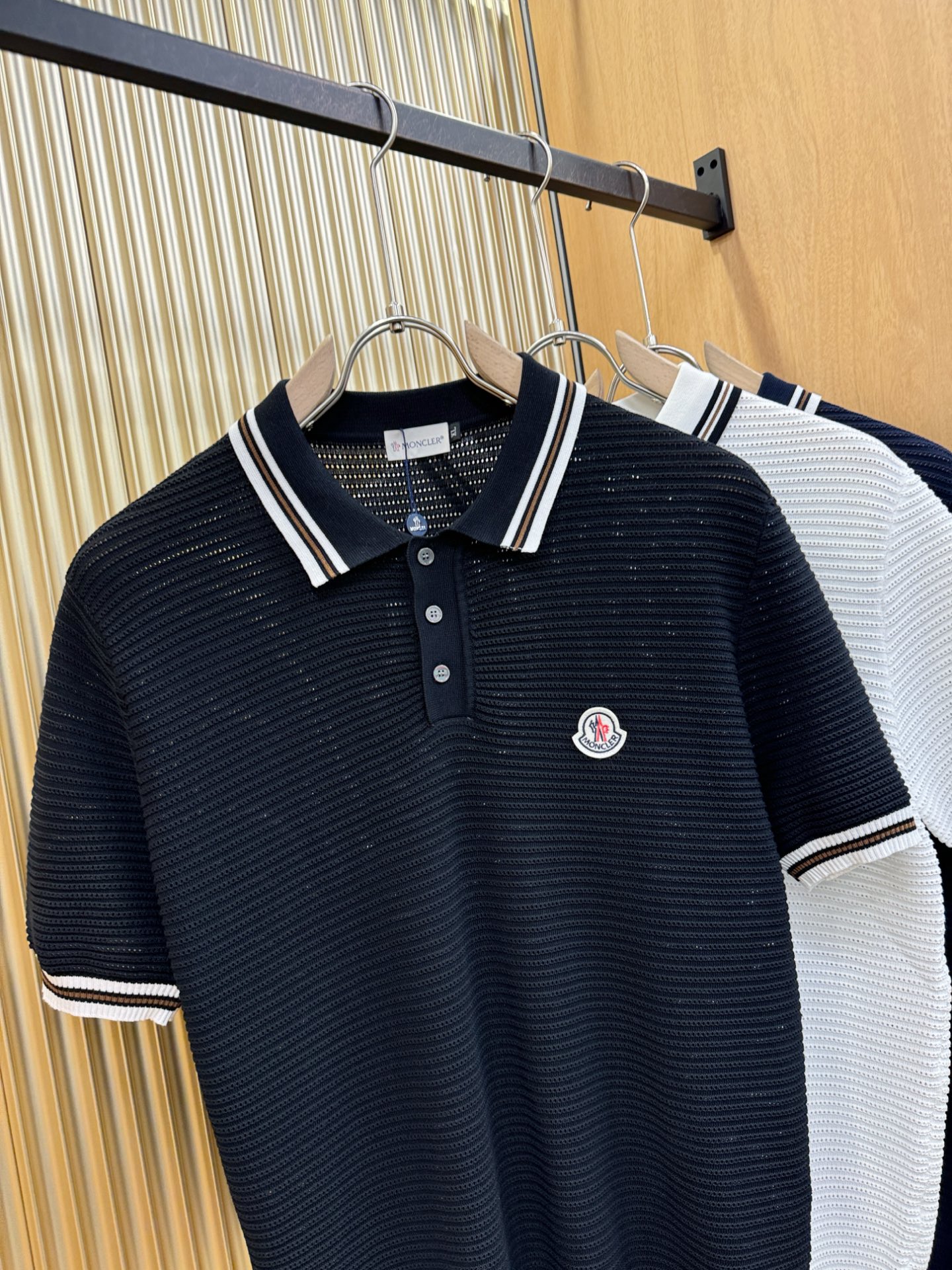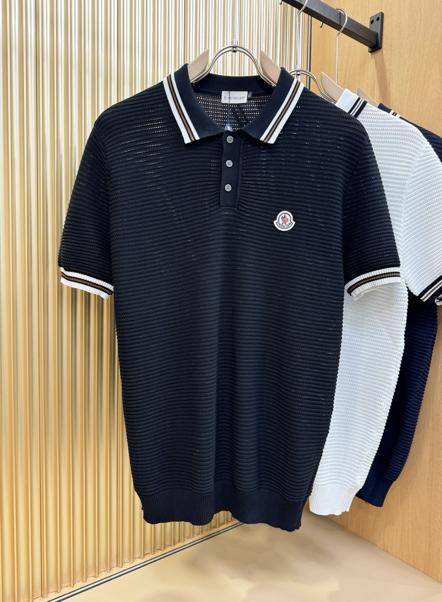 Moncler's new Spring/Summer 2025 knitted short-sleeved shirt is made of imported knitted fabric and has a soft touch. Top-quality imported private goods, fashionable design and trendy short-sleeved knitted sweater, without doubt luxurious quality. The wearing effect is excellent. The same style as the official website of luxury! Size: M-4XL