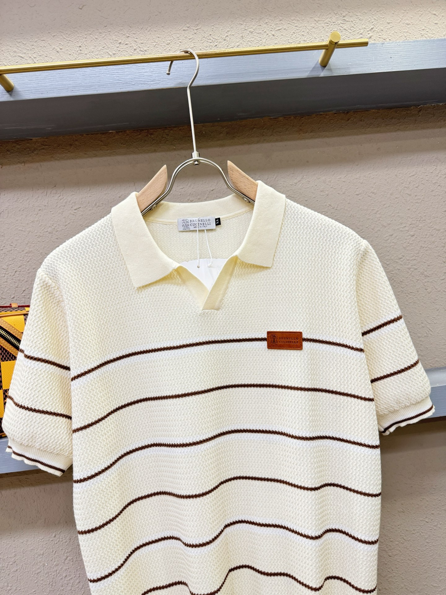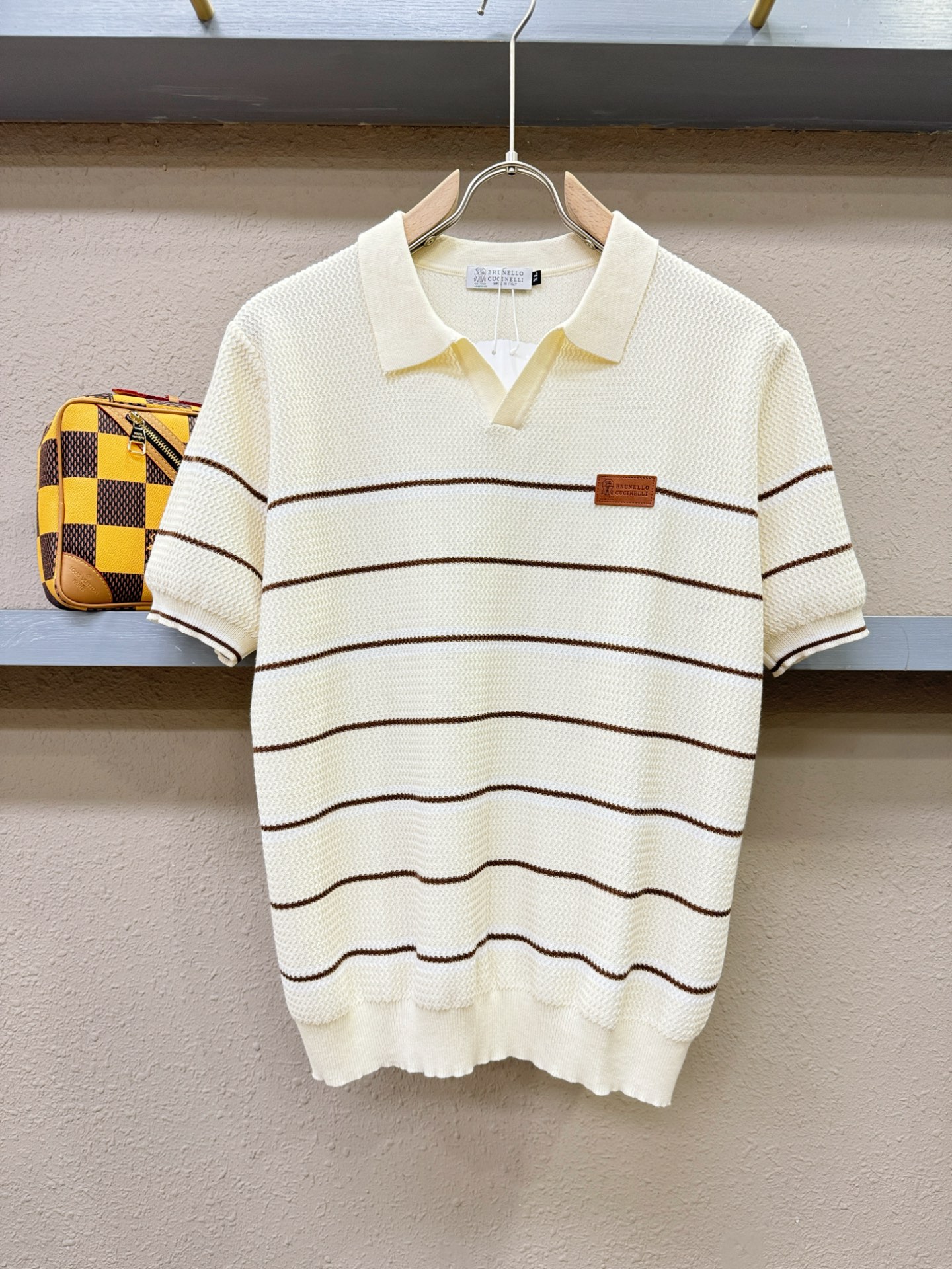BC Bruti's new Spring/Summer 2025 knitted short-sleeved shirt, made of imported knitted fabric, has a soft touch. Top-quality imported private goods, fashionable design and trendy short-sleeved knitted sweater, without doubt luxurious quality. The wearing effect is excellent. The same style as the official website of luxury! Size: M-4XL