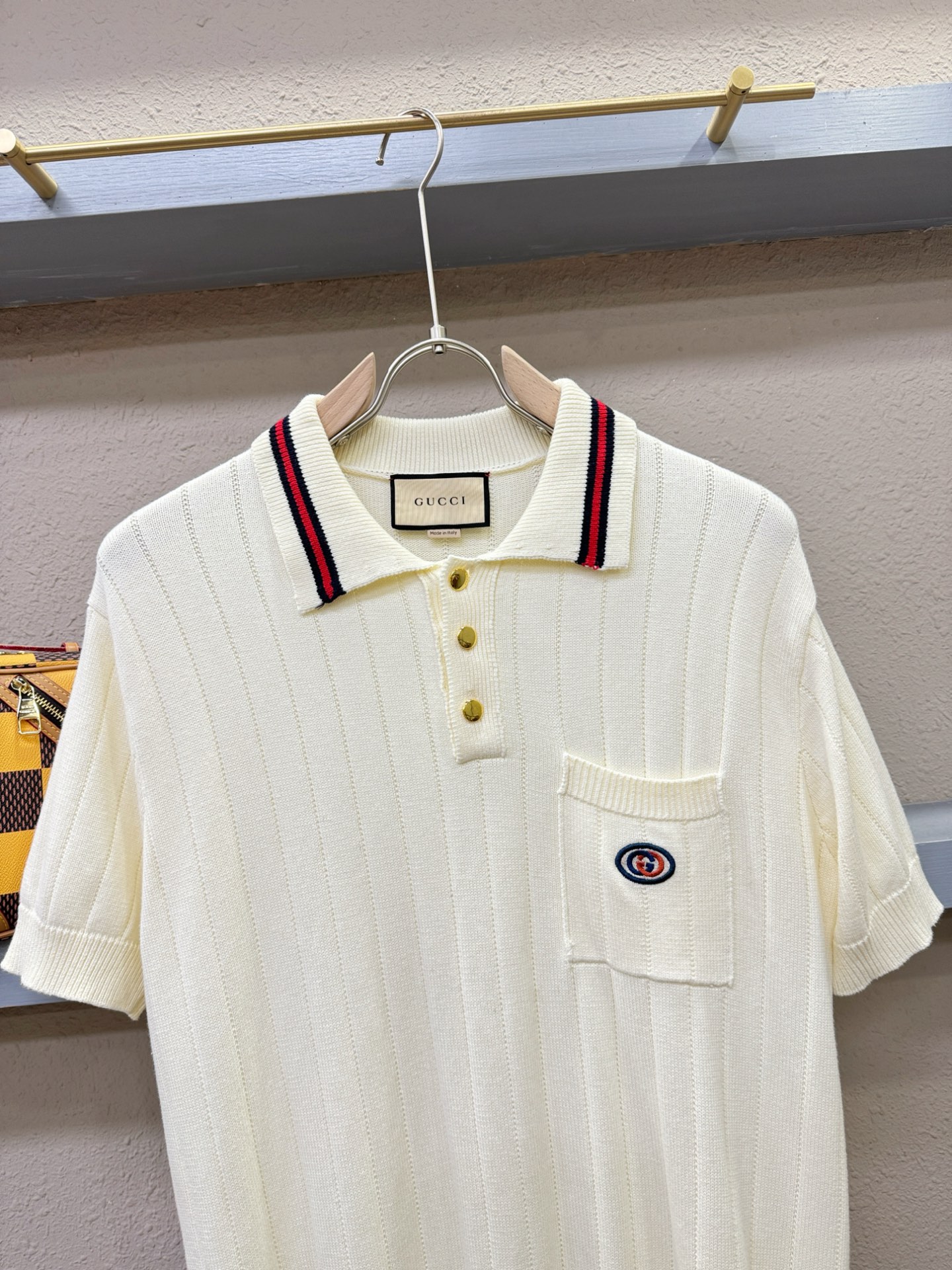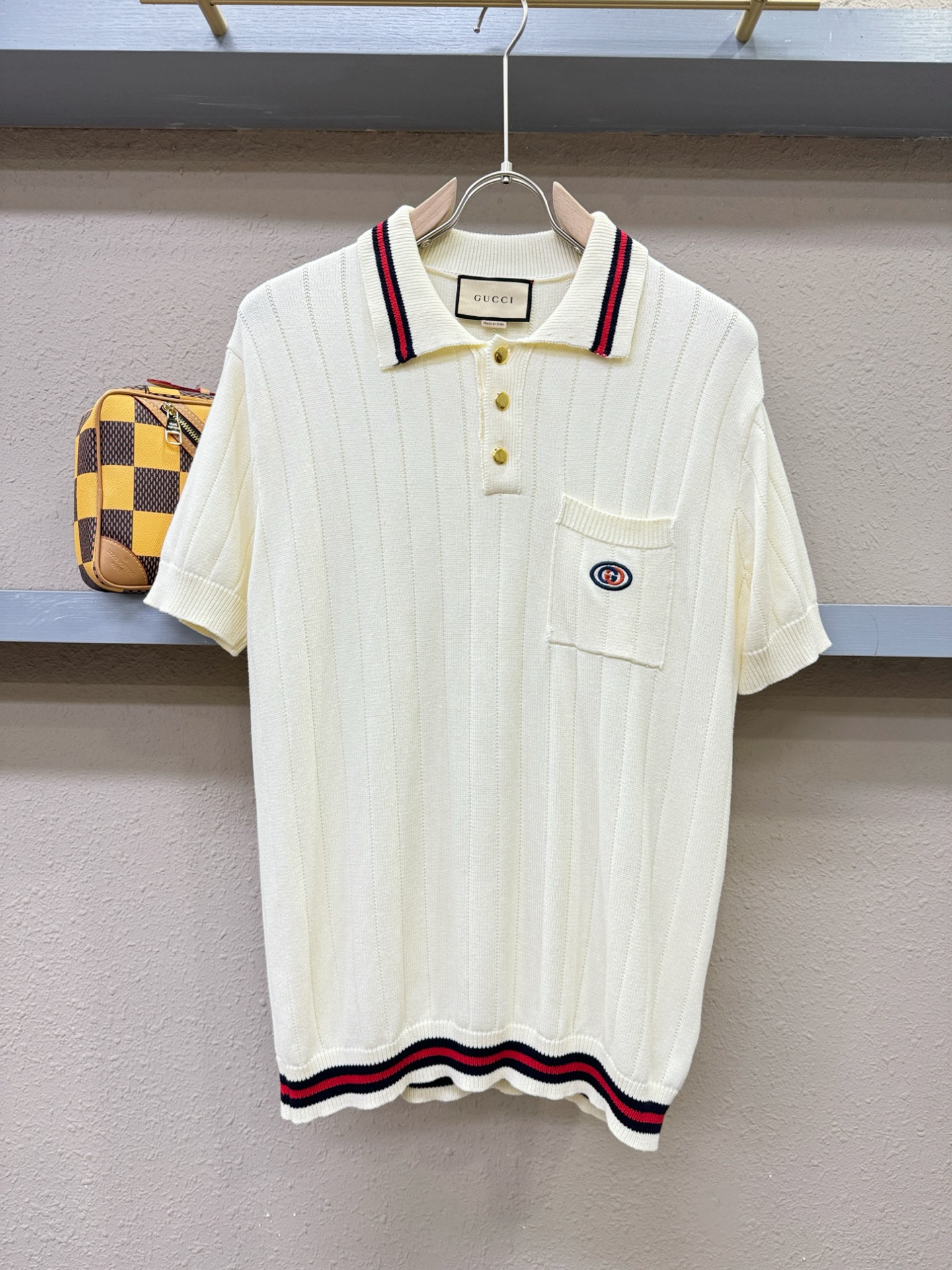 Gucci's Spring/Summer 2025 new knitted short-sleeved shirt, made of imported knitted fabric, has a soft touch. Top-quality imported private goods, fashionable design and trendy short-sleeved knitted sweater, without doubt luxurious quality. The wearing effect is excellent. The same style as the official website of luxury! Size: S-XL(European size is larger)