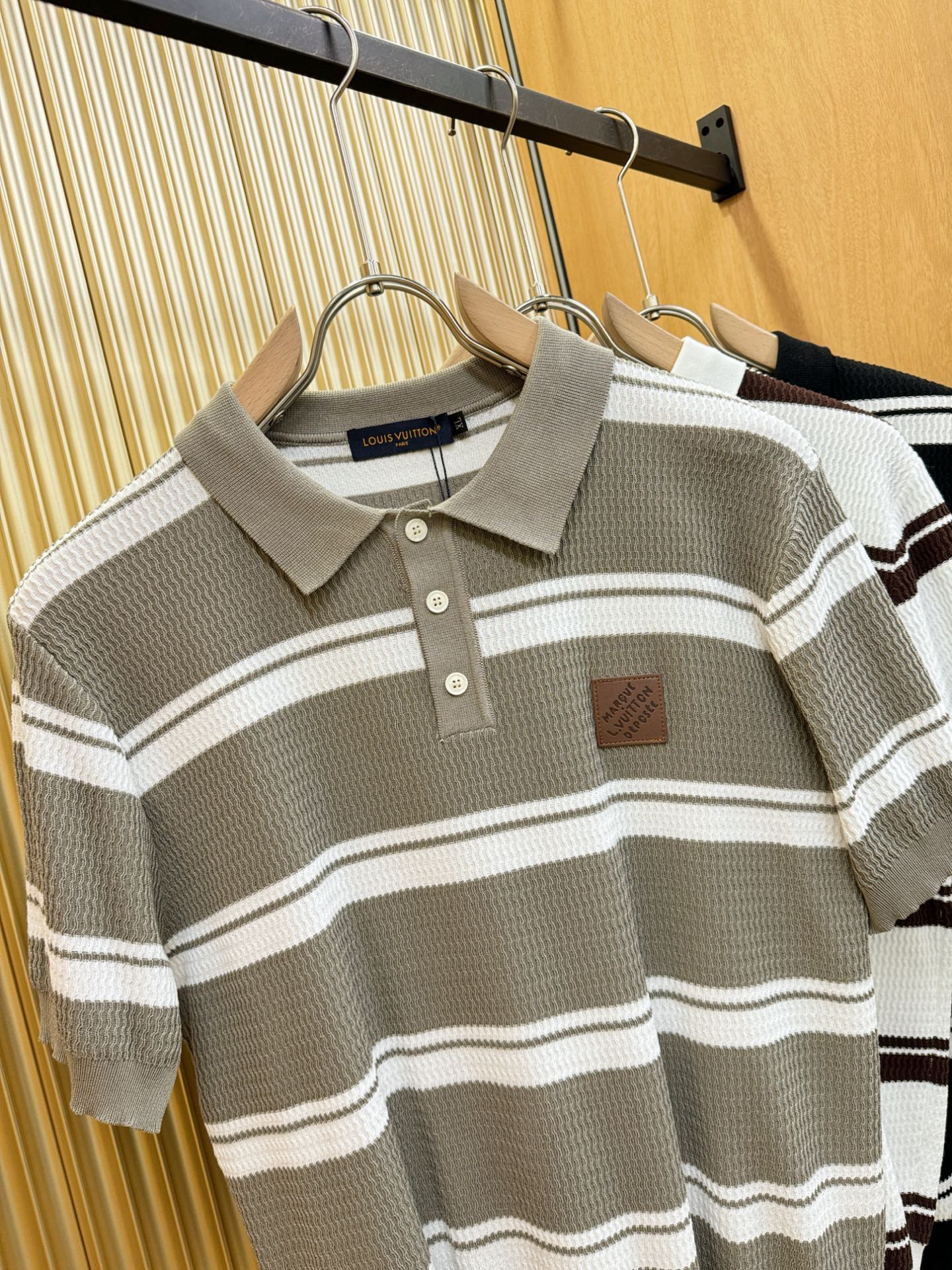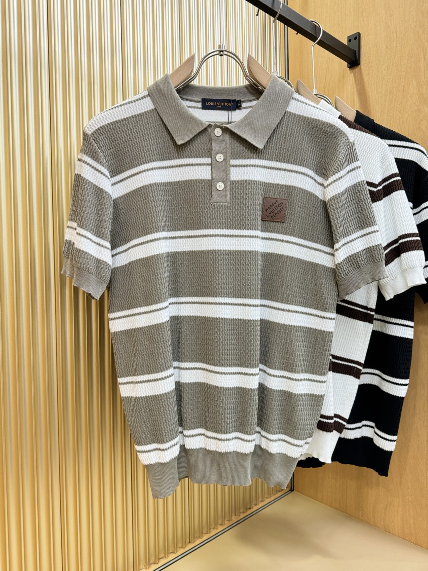 LV's Spring/Summer 2025 new knitted short-sleeved shirt, made of imported knitted fabric, has a soft touch. Top-quality imported private goods, fashionable design and trendy short-sleeved knitted sweater, without doubt luxurious quality. The wearing effect is excellent. The same style as the official website of luxury! Size: M-4XL