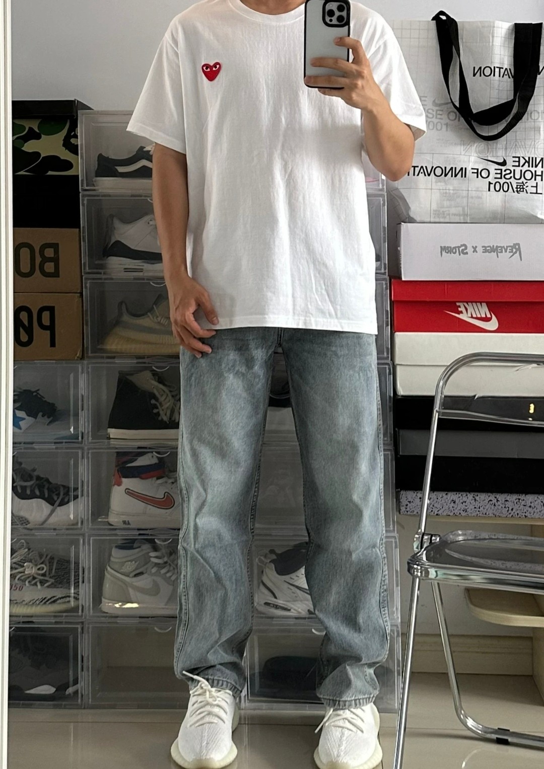 PLAY CDG Rei Kawakubo Classic Evergreen Little Red heart-shaped Embroidered Couple's pure white short-sleeved T-shirt White upper body assembly