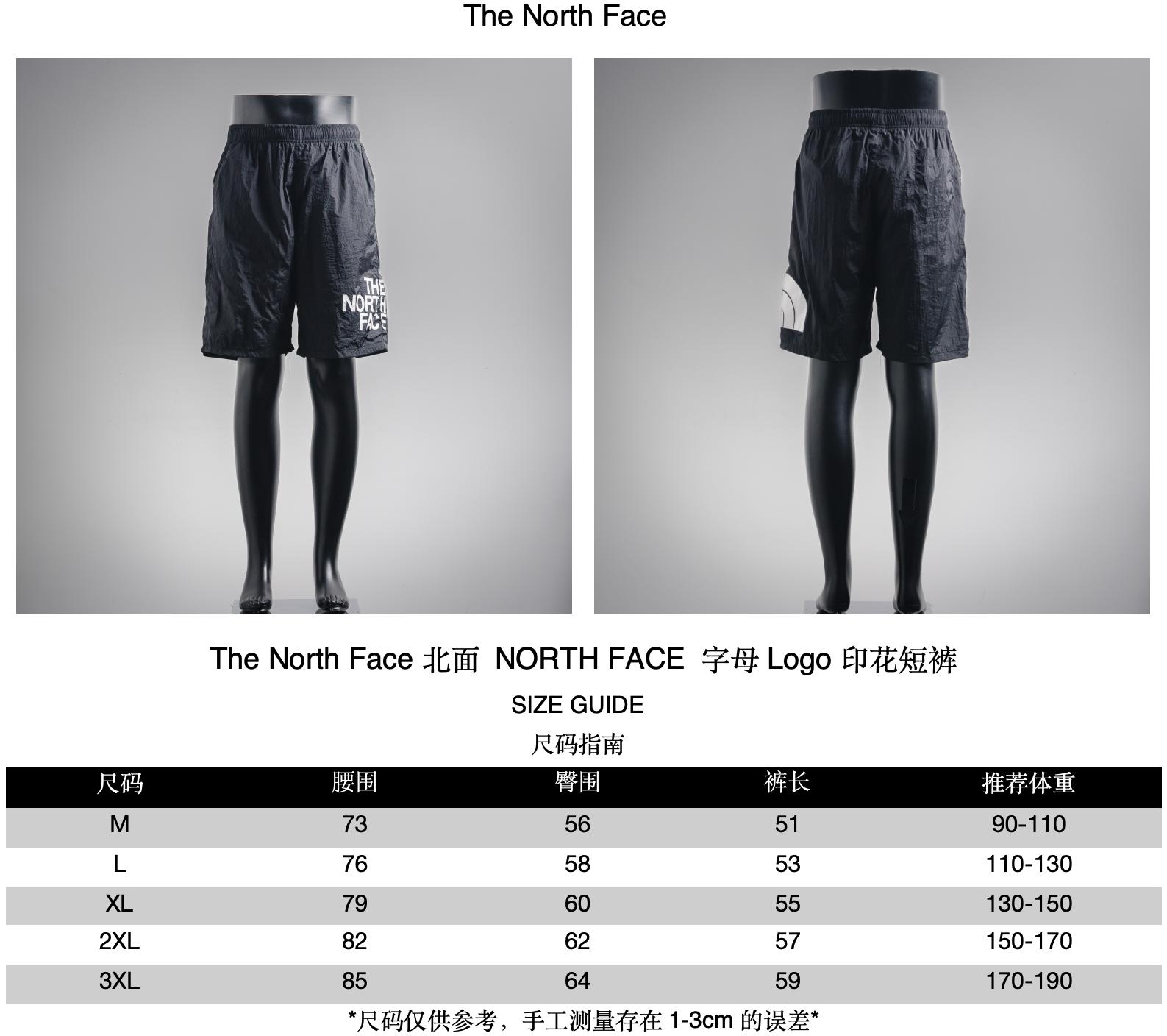 Recommended sizes of shorts with The NORTH FACE letter Logo print