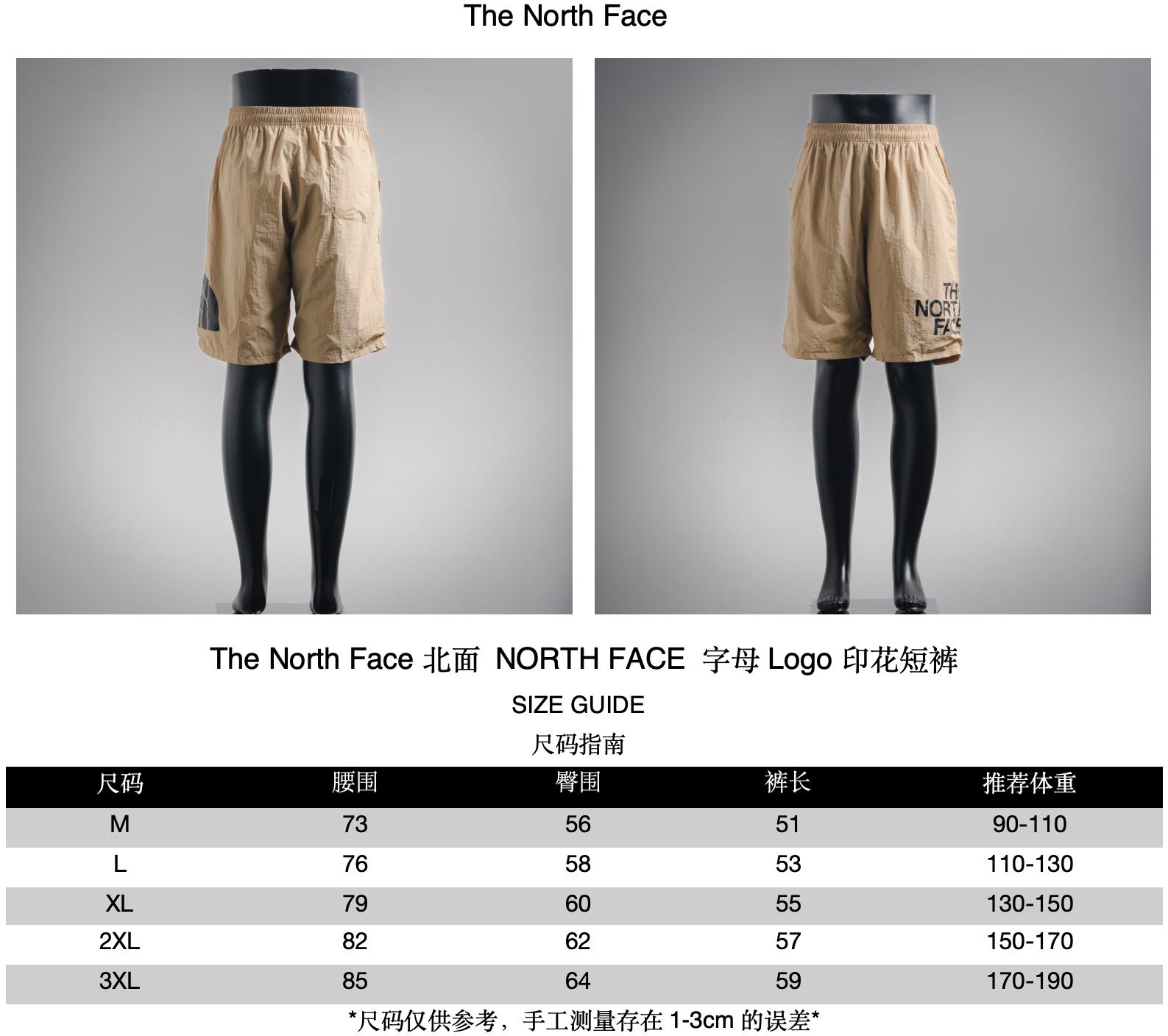 Recommended sizes of shorts with The NORTH FACE letter Logo print
