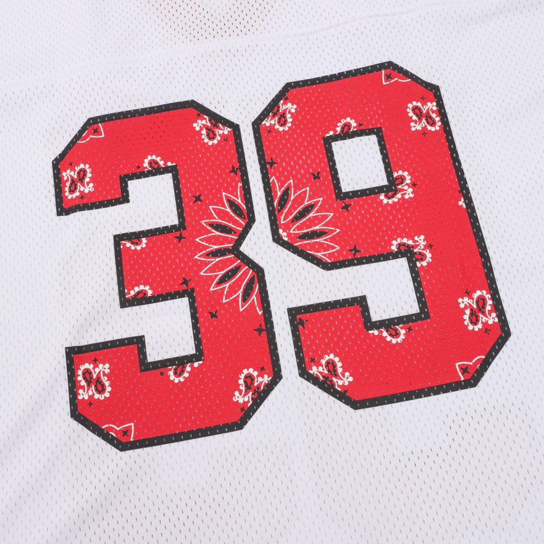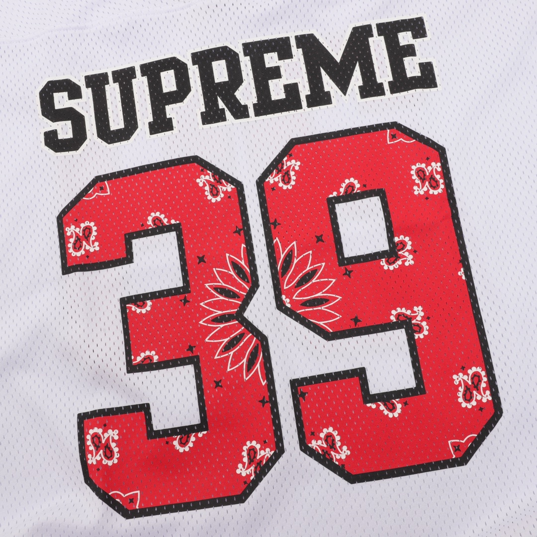Supreme SS25 WEEK14 Bandana Football Jersey logo Cashew flower element printed pattern mesh American baseball jacket short sleeve Customized 250g mesh fabric with imported glue printing. The color has been adjusted multiple times. The color is accurate and the pigment will not be printed into the mesh. The quality details reach YB consistency The accessory configuration is complete, a must-have for trendsetters Color: Black, white (175, 145, try on M) size: S-XL
