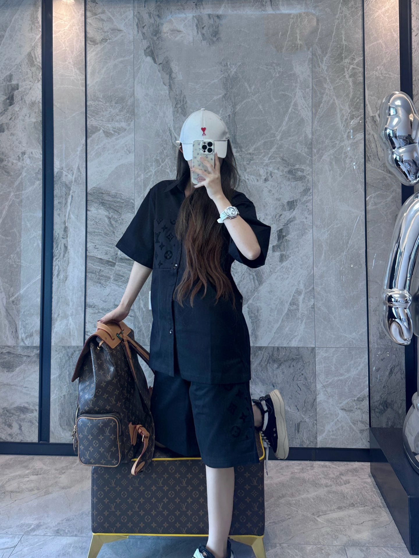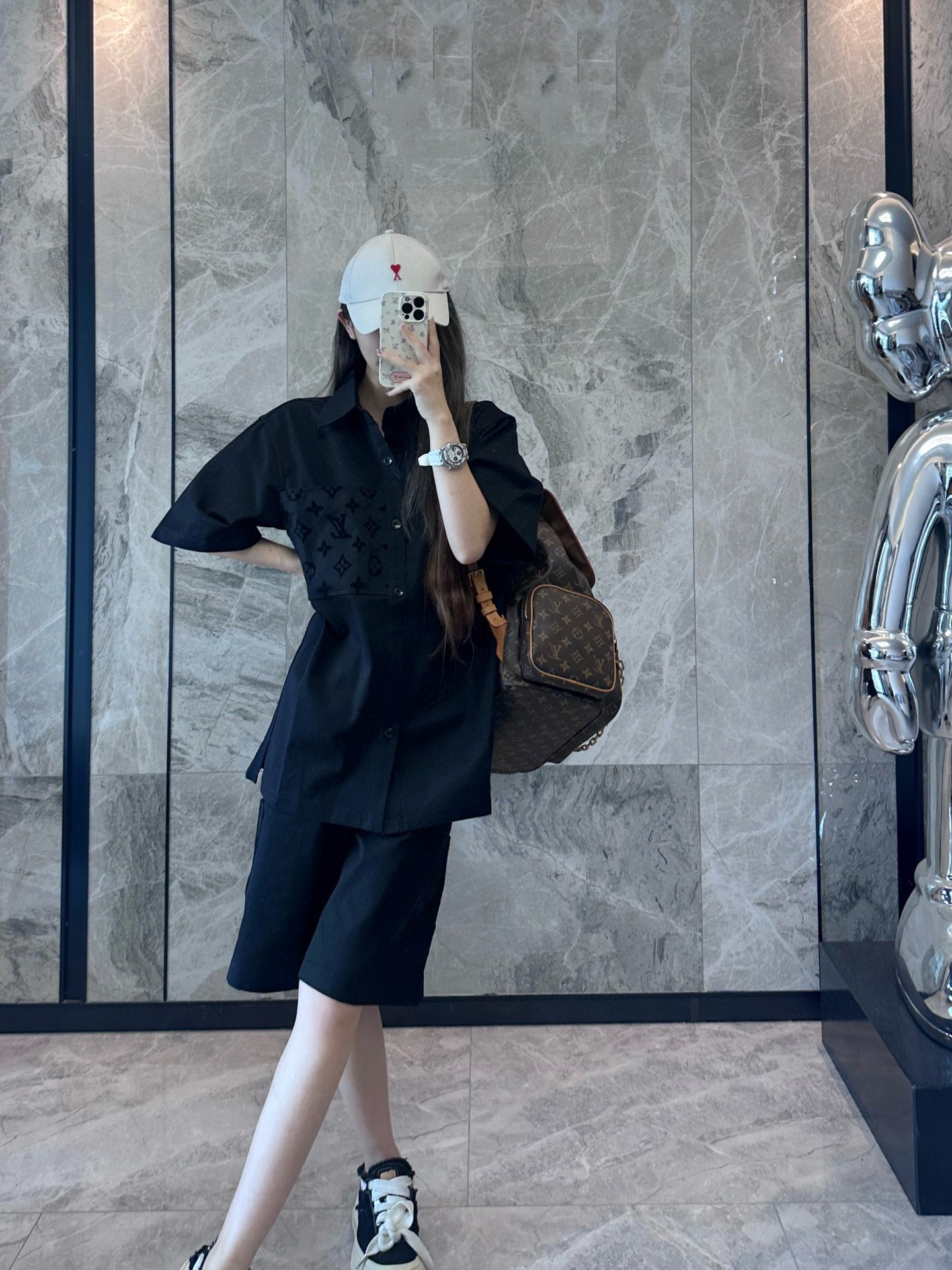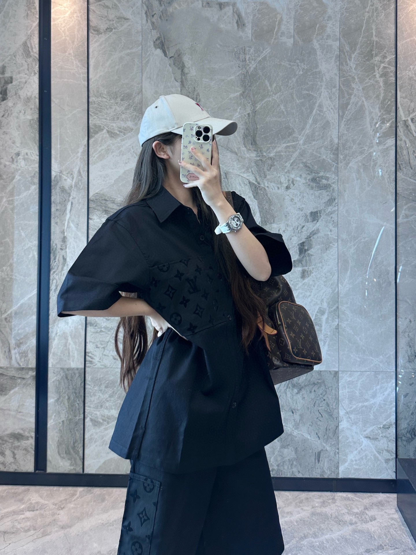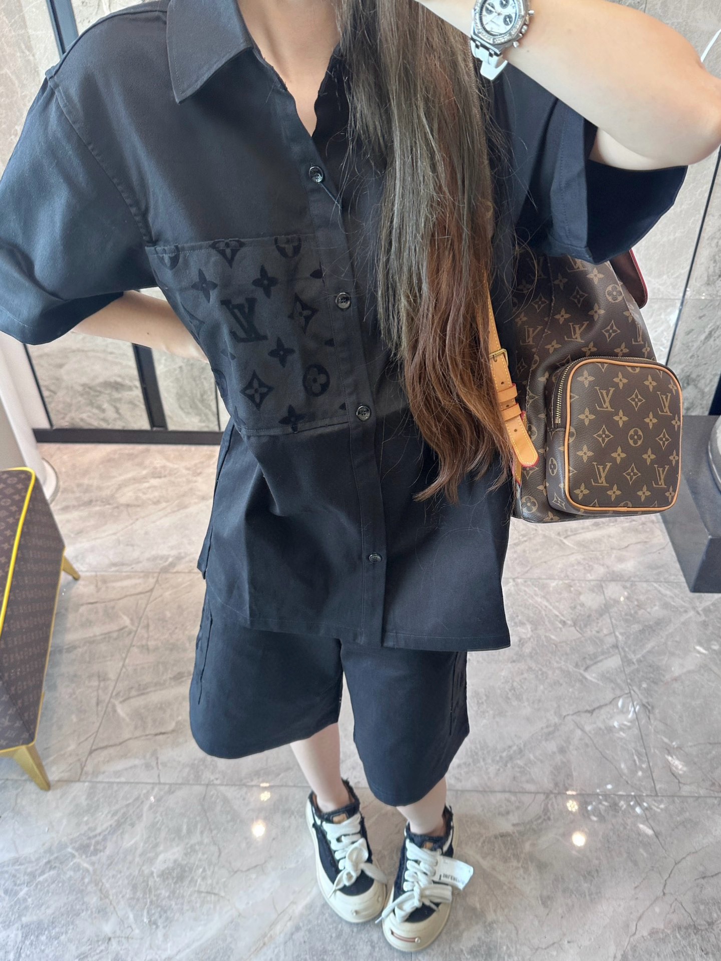 The wearing effect of the Louis Vuitton 24ss pocket flocked patchwork short-sleeved shirt