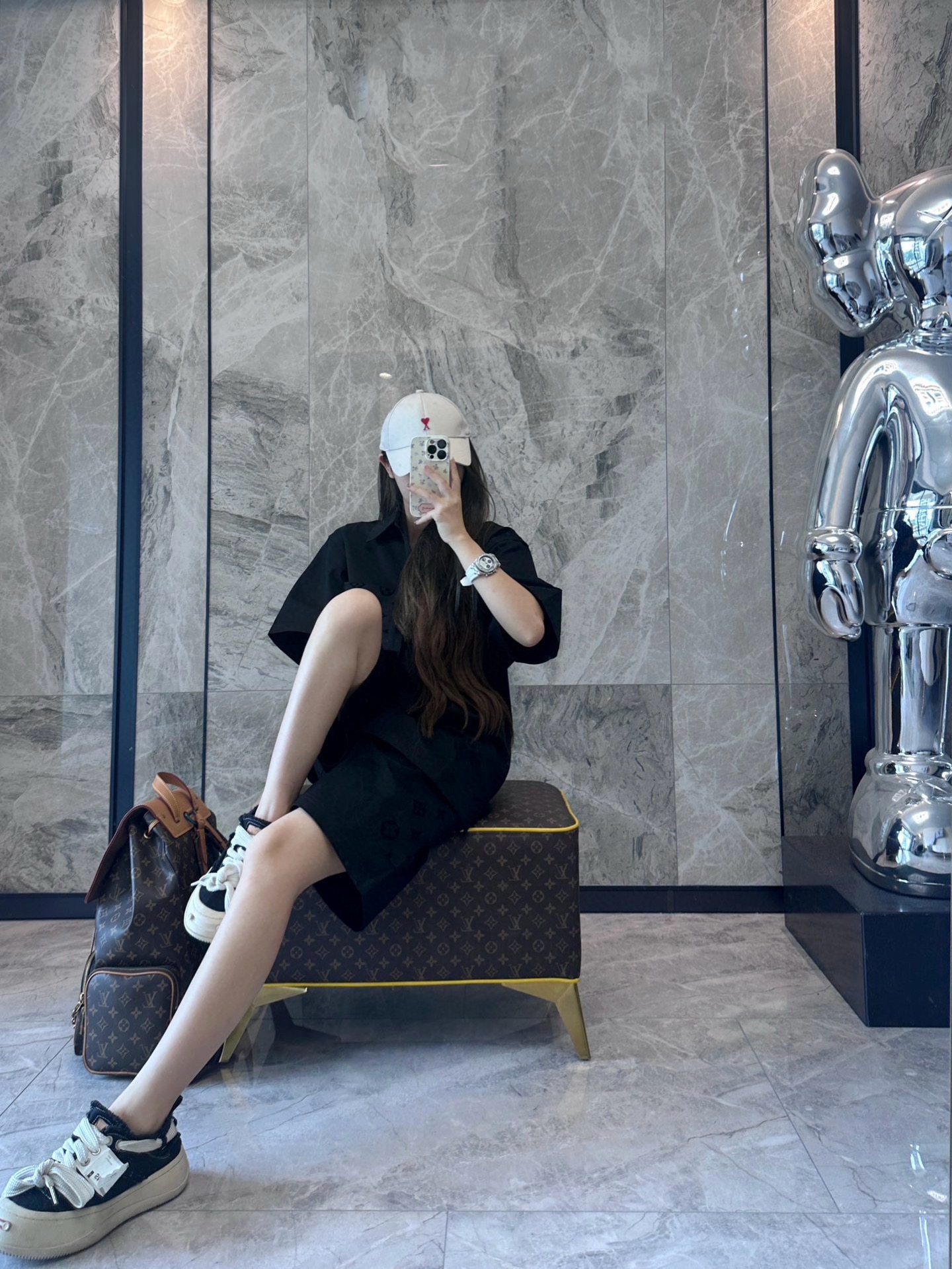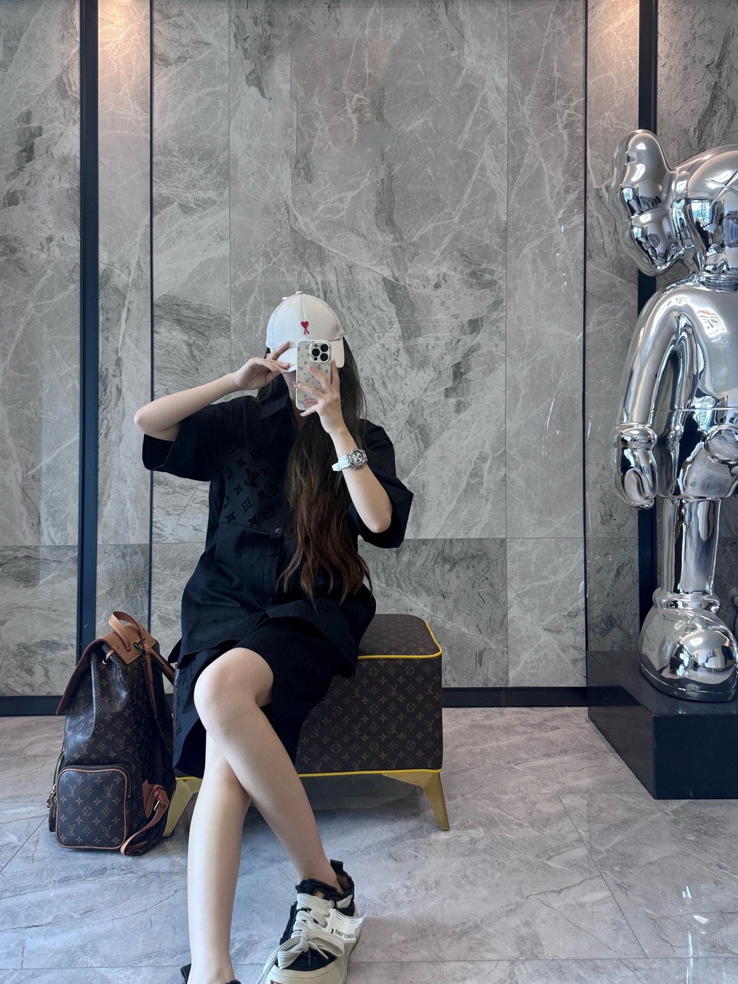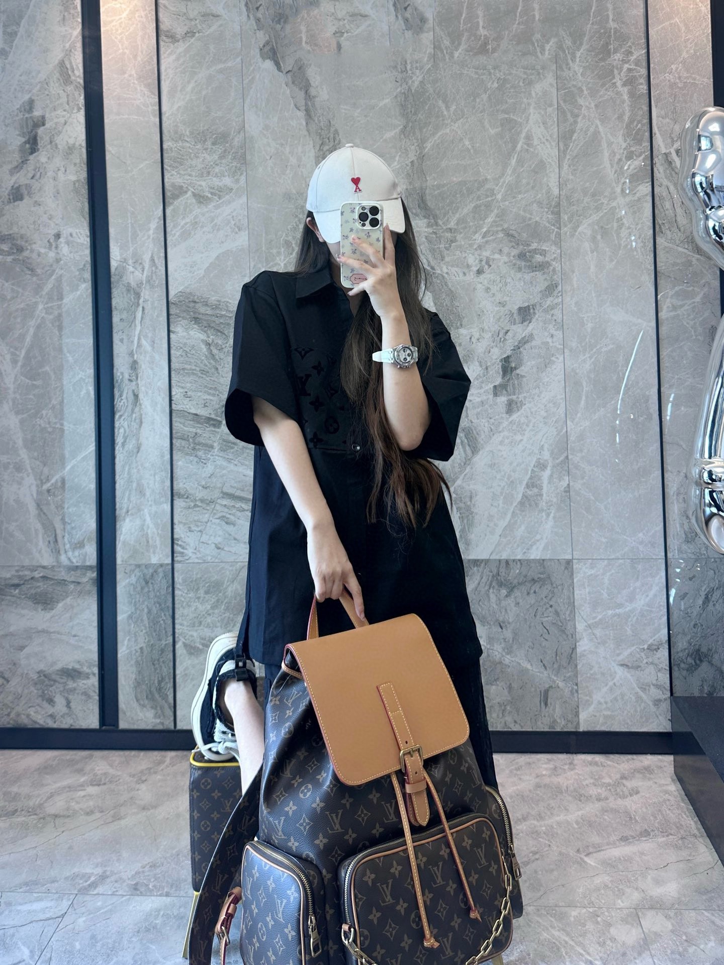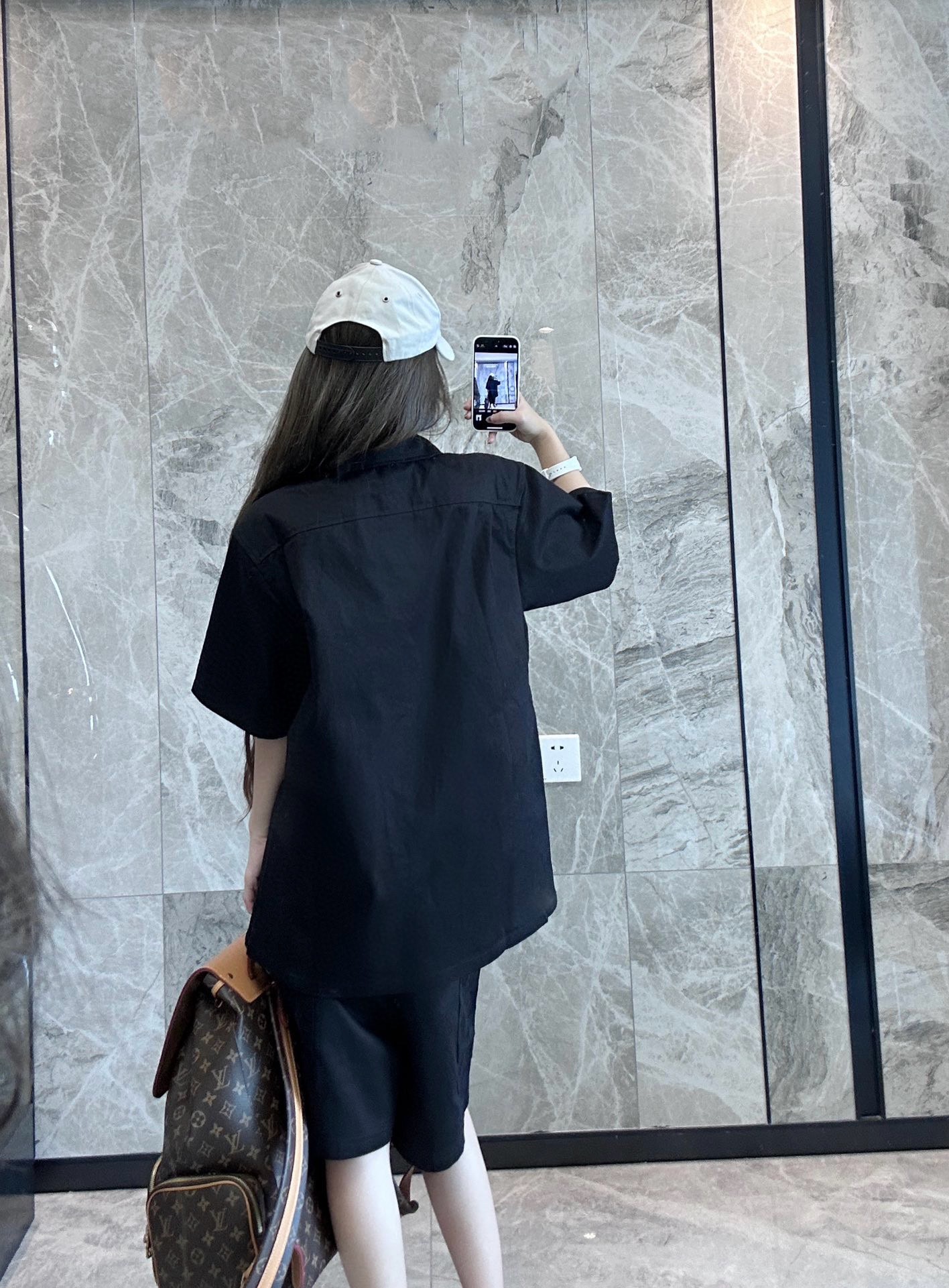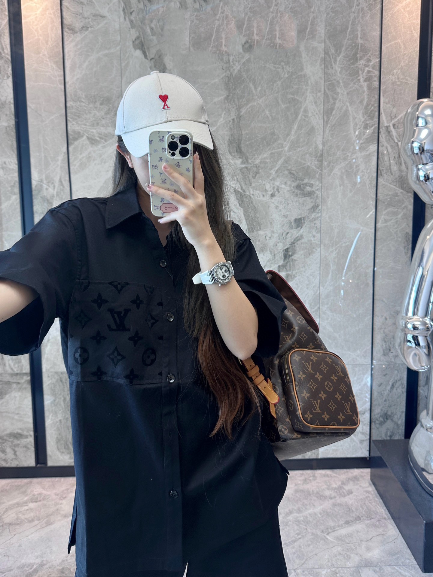 The wearing effect of the Louis Vuitton 24ss pocket flocked patchwork short-sleeved shirt