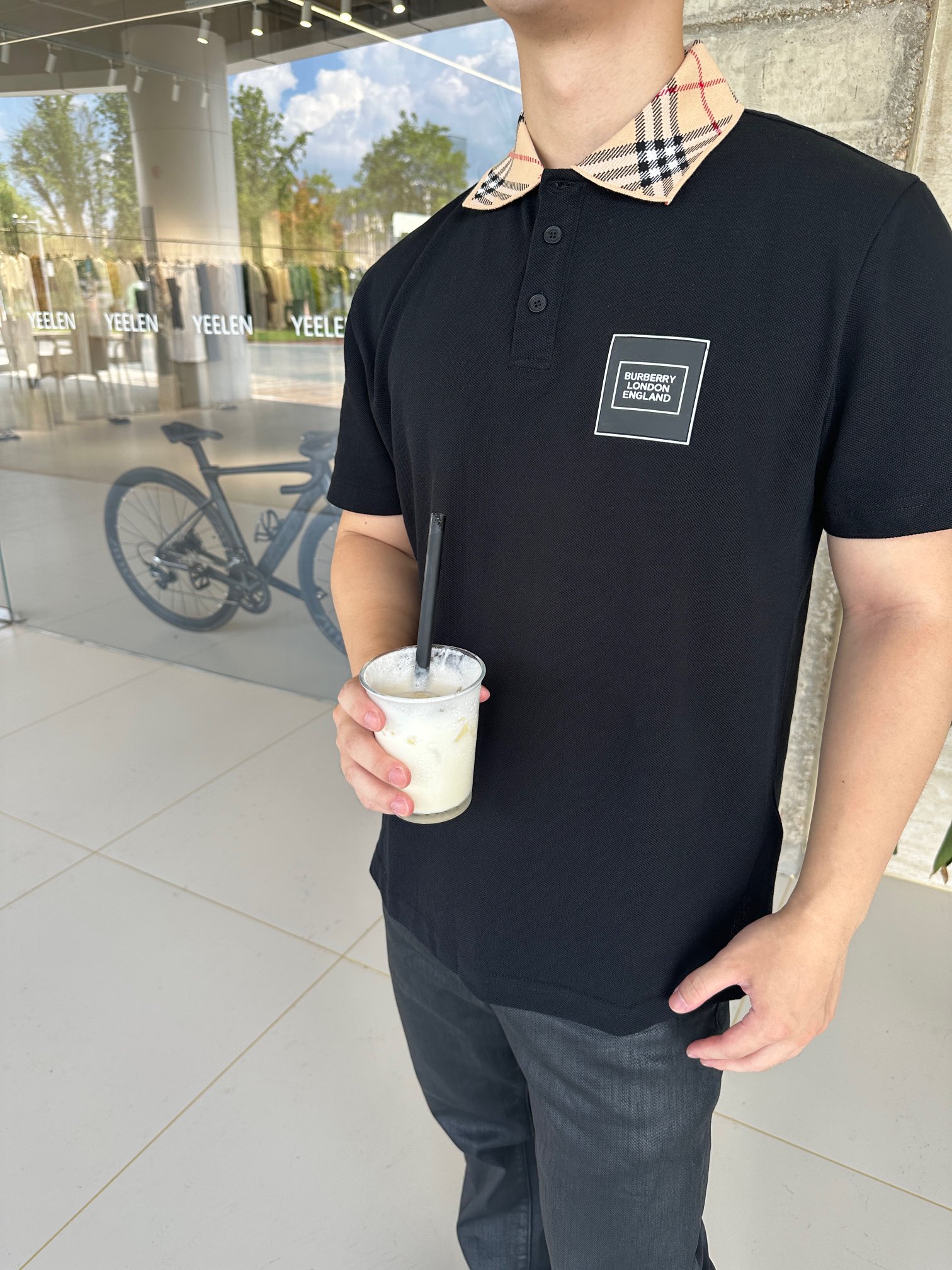 Gather on the Burberry leather logo short-sleeved POLO shirts