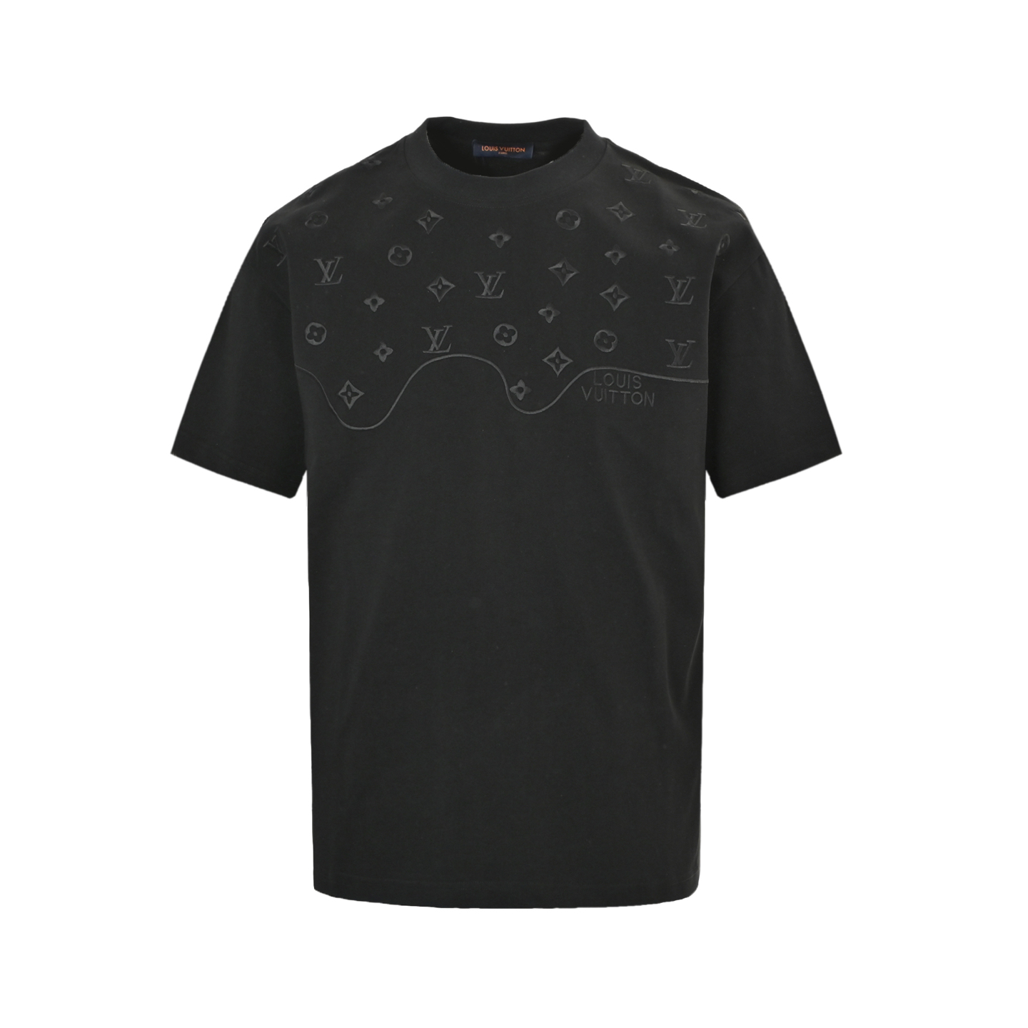 In-stock fine repair with year-round after-sales service Louis Vuitton 25ss dark-patterned monogram logo patchwork embroidery short-sleeved shirt Purchased from the original mold for production, with a full set of customized auxiliary materials, all details are perfectly restored Fixed weave and fixed dye 260g pure cotton double yarn tight cotton fabric, up to 280g after washing +2x2 matching threads The chest is embroidered with a dark pattern of the old flower logo, and the back collar is decorated with a yellow logo label. The meticulous detailing creates a micro-three-dimensional relief embroidery effect. It's amazing when worn. This unisplast style can be easily worn by people of all body types. It's a must-have masterpiece! Color: Black, white Size:S-XXL