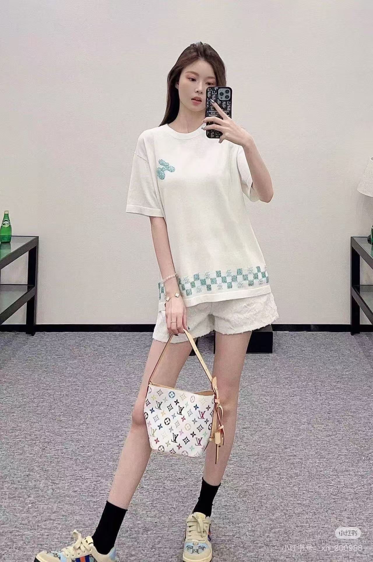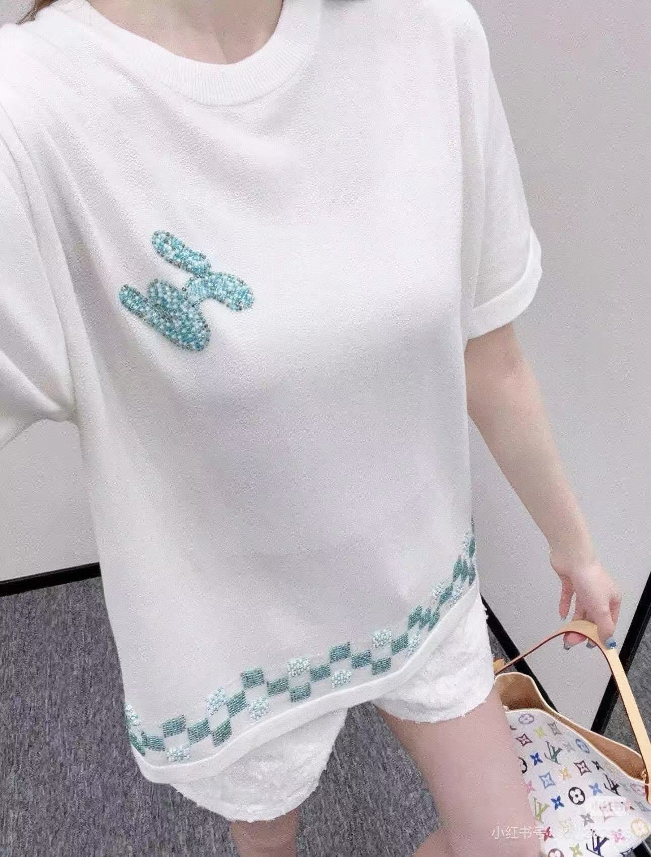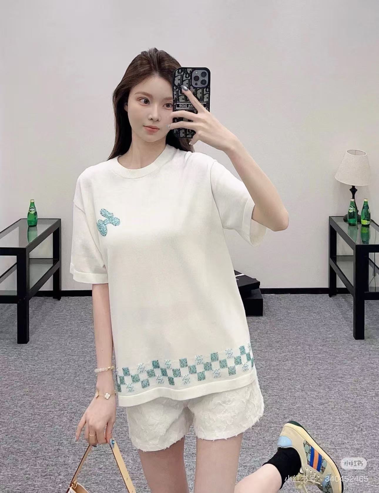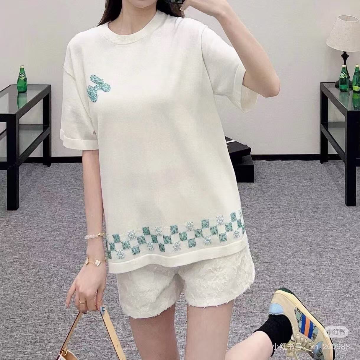 Louis Vuitton/ Louis Vuitton Damier plaid embroidered sweater short-sleeved top collection