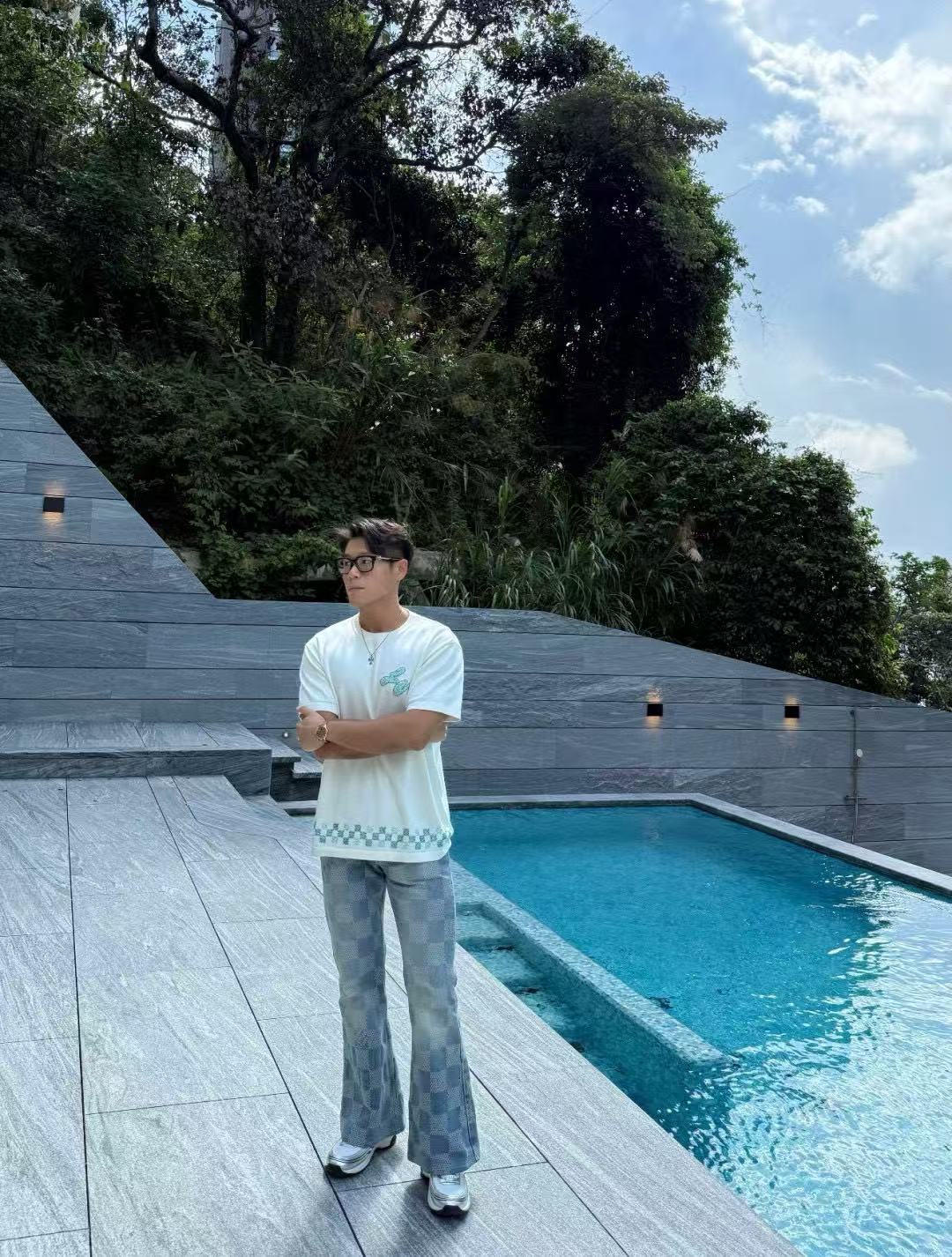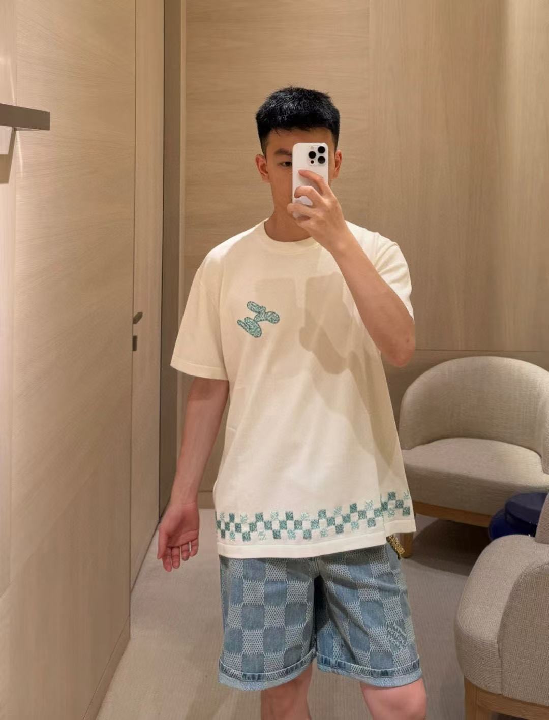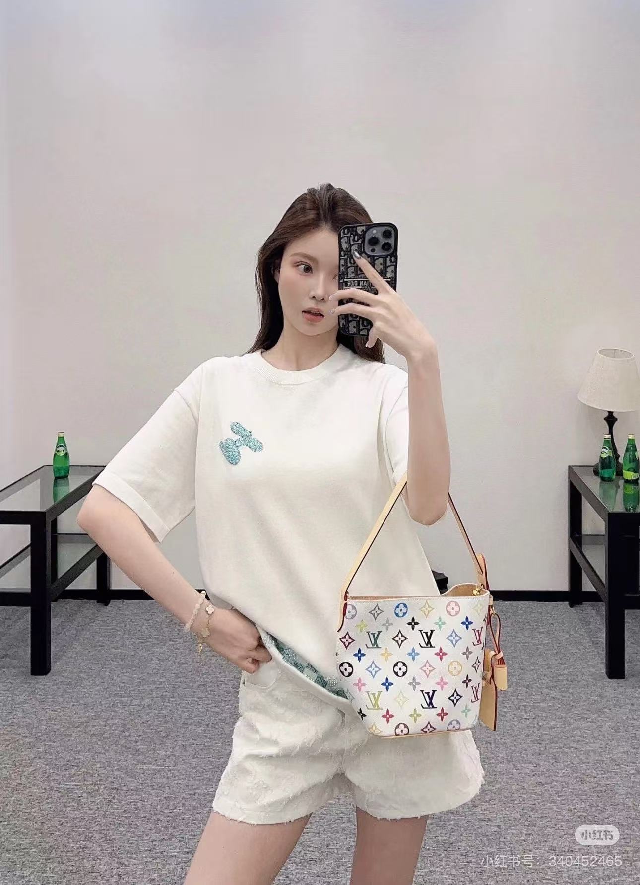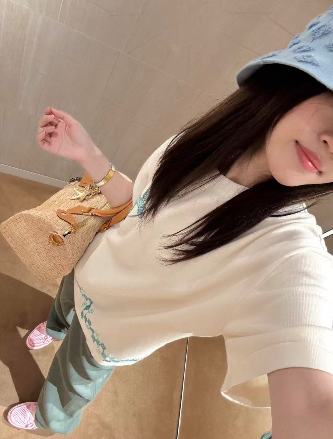 Louis Vuitton/ Louis Vuitton Damier plaid embroidered sweater short-sleeved top collection